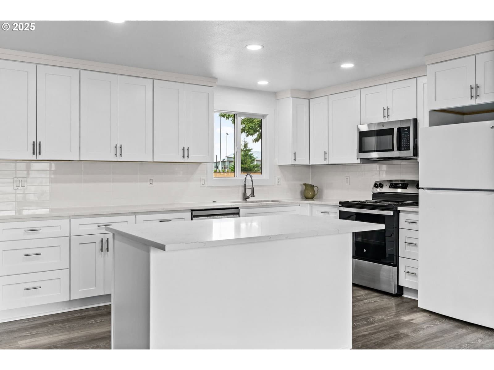 This fully remodeled 4 bedroom home is bright, white, and beautifully maintained inside and out. New roof, interior and exterior paint, baths, kitchen and more. The open living room and kitchen concept creates an inviting flow, with a stunning white-on-white kitchen at the heart of the home. The backyard is spacious, with two patio areas and full fencing, offering a private and flexible outdoor space. Sitting on a generous inside corner lot, the home enjoys extra space and a tucked-away feel. Conveniently located, this property blends modern style with comfort and livability. Seller is offering a home warranty.