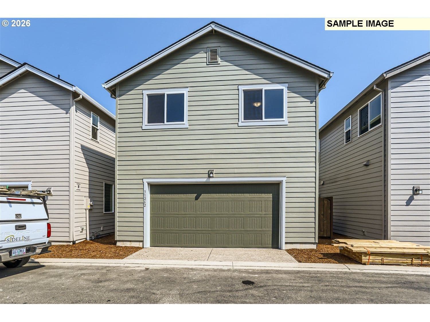 Welcome to Brynhill by Lennar and the Savoie plan in beautiful North Plains. This two-story home features a spacious open floorplan on the first level where the great room with a cozy fireplace, U-shaped kitchen with island, and dining nook create a comfortable gathering space with direct access to a covered patio for outdoor enjoyment. Upstairs are four bedrooms, including a generous primary suite with a private en-suite bath featuring a double vanity, separate shower and soaking tub, and a walk-in closet. Interior highlights include quartz countertops, Shaker-style cabinets, LVP (luxury vinyl plank) flooring in the kitchen and entryway, and LVT (luxury vinyl tile) flooring in the baths. This home also includes central air conditioning, a refrigerator, washer and dryer, and blinds—all at no extra cost! This brand-new community offers multiple onsite parks with pickleball, basketball, a putting green, a cornhole area, playgrounds, and picnic areas. Rendering is artist conception only. Photos are of a similar home, features and finishes will vary. Homesite 455.