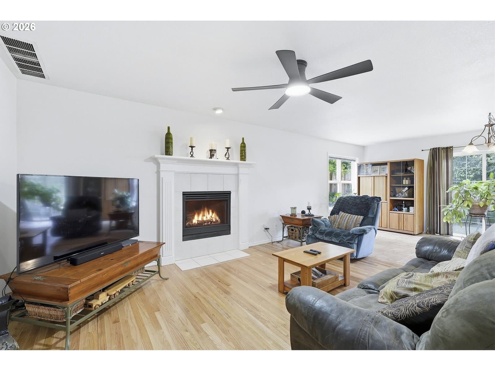 Impeccably maintained and thoughtfully updated, this home is being offered for the first time in over 30 years! Now is your chance to live in this beautiful home ideally situated at the end of the cul-de-sac. When you walk through the front door, you feel welcome and at home. Step inside to find extensive hardwood floors that bring warmth and continuity throughout the main level. The formal living room flows seamlessly into the formal dining room, creating an inviting space for gatherings. The recently remodeled kitchen features custom cabinetry, and a spacious island—perfect for entertaining. The open concept to the family room and gas fireplace make it a very cohesive space. An addition was added to the family room space making a versatile space for play, eating, reading or whatever works for your situation. The powder bath and laundry room round out the mainlevel. The hardwood continues up the stairs and down the halls. The spacious primary suite has a spa-like tile walk-in shower, granite counters, dual sinks, tile floors and a walk-in closet. There are 3 more bedrooms and the guest bath is also updated with quality finishes and a deep tub/shower combo. Outside, the fully fenced backyard is designed for enjoyment and ease. A covered deck, paver patio, planter beds, and a custom shed that matches the home create the perfect setting for outdoor living and summer entertaining. As an added bonus, you have great proximity to Graham Oaks nature park, Villebois, elementary and middle school.