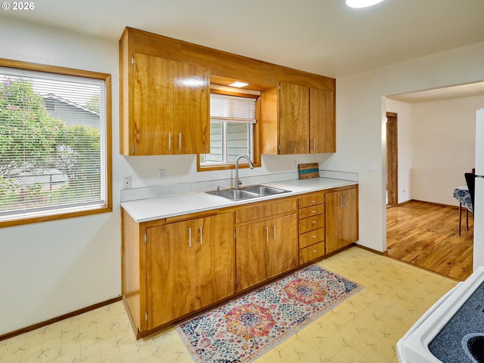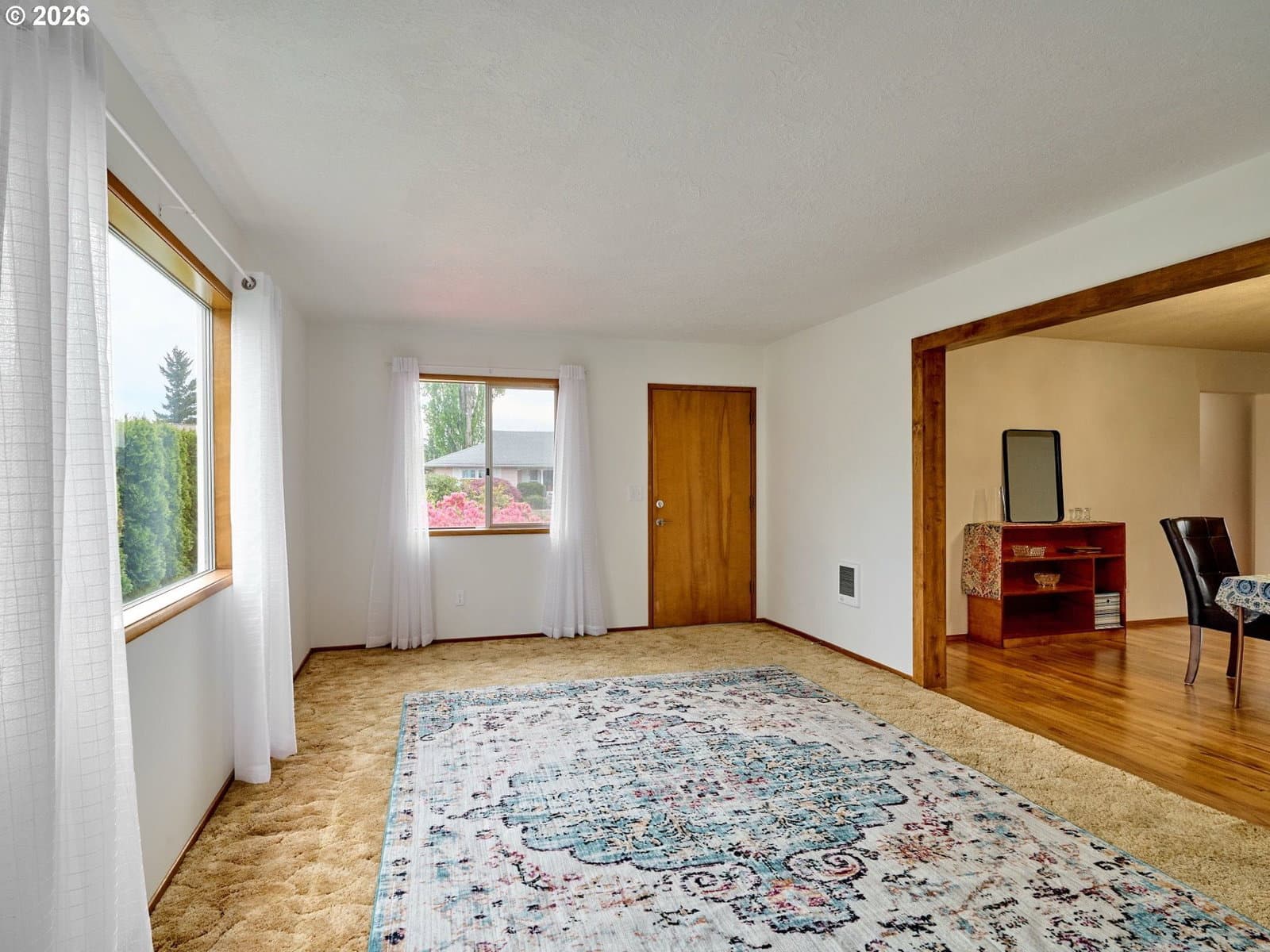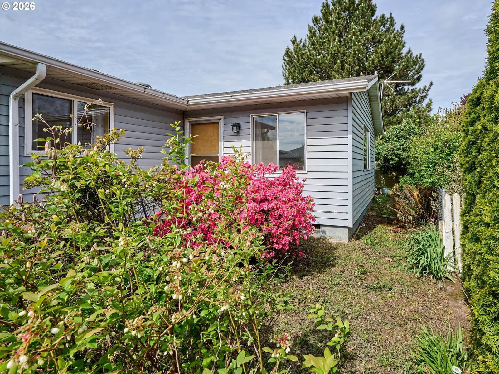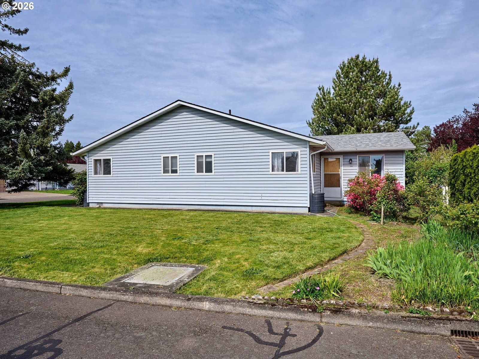 Welcome to Woodburn Senior Estates, a sought-after 55+ community offering comfort, convenience, and an active lifestyle. This well-maintained, move-in ready home sits on a spacious corner lot with room to enjoy the outdoors. Inside, you’ll find beautiful hardwood floors and an abundance of natural light from expansive panoramic windows. The layout offers both a formal dining room and a cozy kitchen nook, along with a functional kitchen ready for your personal touches. A versatile family room with a separate exterior entrance and private walkway offers flexible use as a home office, hobby space, or additional living area. The oversized laundry room includes built-in cabinetry for added storage and convenience. The large bathroom features both a shower and a relaxing jetted tub. The primary bedroom includes two closets and a private half bath. An oversized single-car garage provides ample storage space. Enjoy an annual HOA that includes golf for two, along with access to country club amenities and activities. Ideally located with easy I-5 access and close to shopping and dining. HOA Fee of $1116/yr. includes golf for 2. One time HOA fee of 1.5% of the purchase price due upon closing from the Buyer. HOA Membership Application must be approved prior to closing.