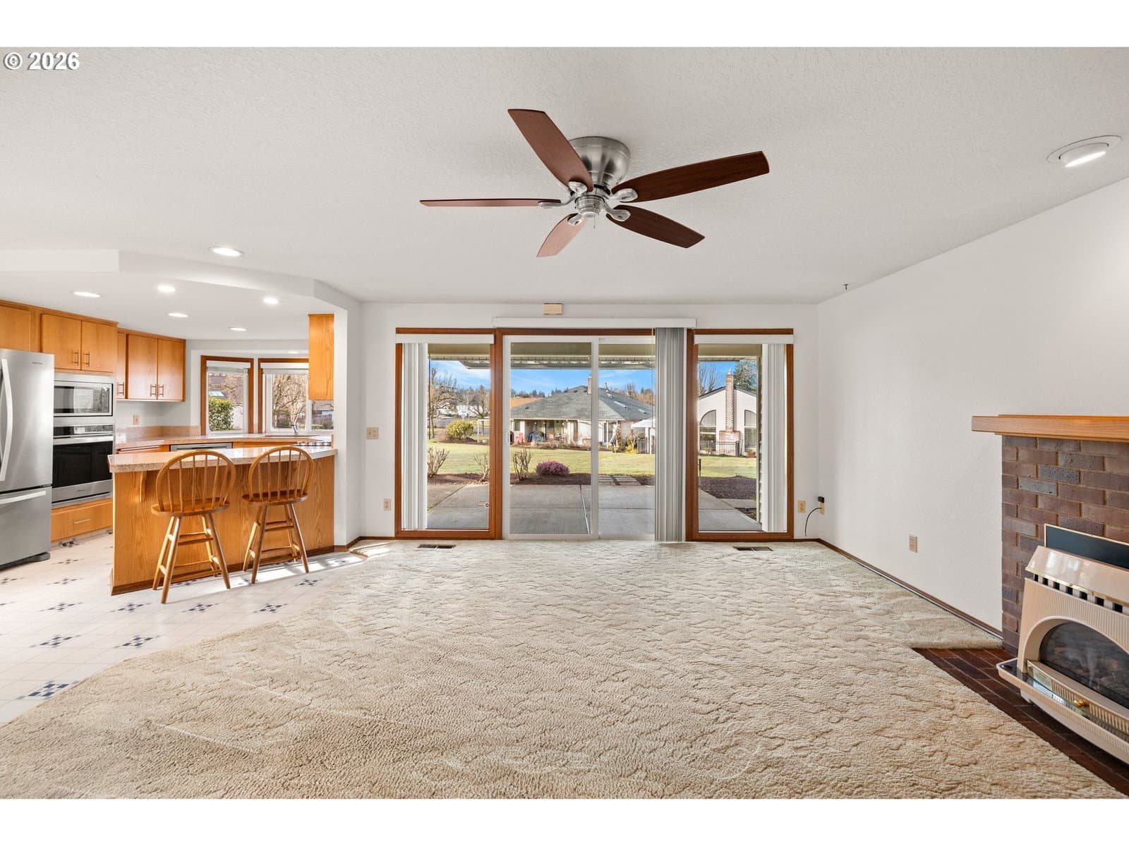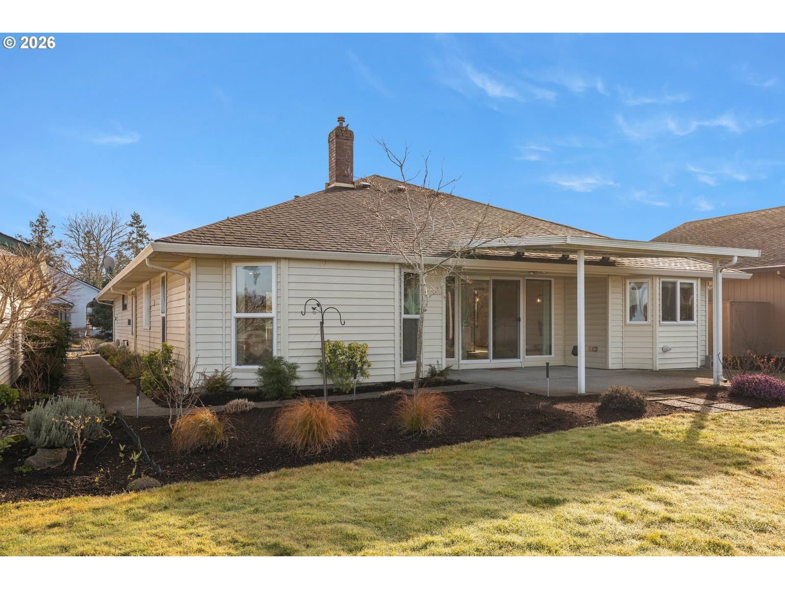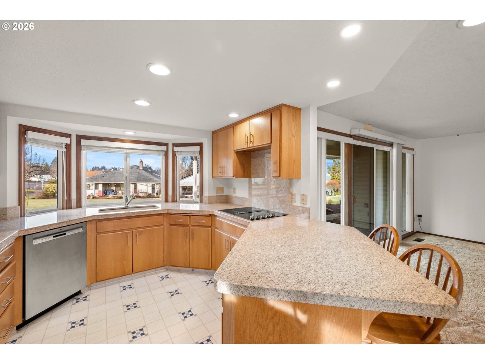 Welcome home to this highly desired 3 bedroom Englewood floor plan with over 2000 sq ft of one-level living in 55+ Summerplace. Gorgeous green space views from the upgraded kitchen, family room and primary bedroom suite. The kitchen includes stainless appliances, granite counters, barstool seating and a dedicated breakfast nook. The kitchen flows seamlessly into the spacious family room, where a walk-out slider leads to a covered patio with peaceful views that will make you smile. The primary suite includes double closets, en-suite bathroom, double sinks, soaking tub and a separate walk-in shower. The thoughtfully designed split-wing layout provides privacy, with the third bedroom easily serving as a guest room or home office. The living room provides entertaining options with a vaulted ceiling and gas fireplace, while the dining room showcases beautiful custom cabinetry. The hallway bath has been upgraded with a custom walk-in shower. Additional amenities include indoor laundry, solar tubes, newer A/C, furnace and roof. Custom built-in storage in the garage. With its convenient one-level layout, this home offers ease of mobility and accessibility, ideal for those seeking practicality and ample space. All this and you are part of the Summerplace community with the active clubhouse and activities. Don’t miss this opportunity! Call now to schedule an appointment. [Home Energy Score = 4. HES Report at https://rpt.greenbuildingregistry.com/hes/OR10107768]