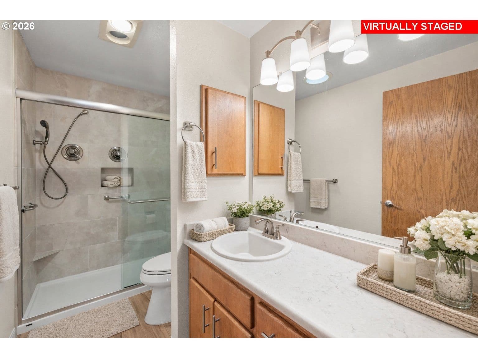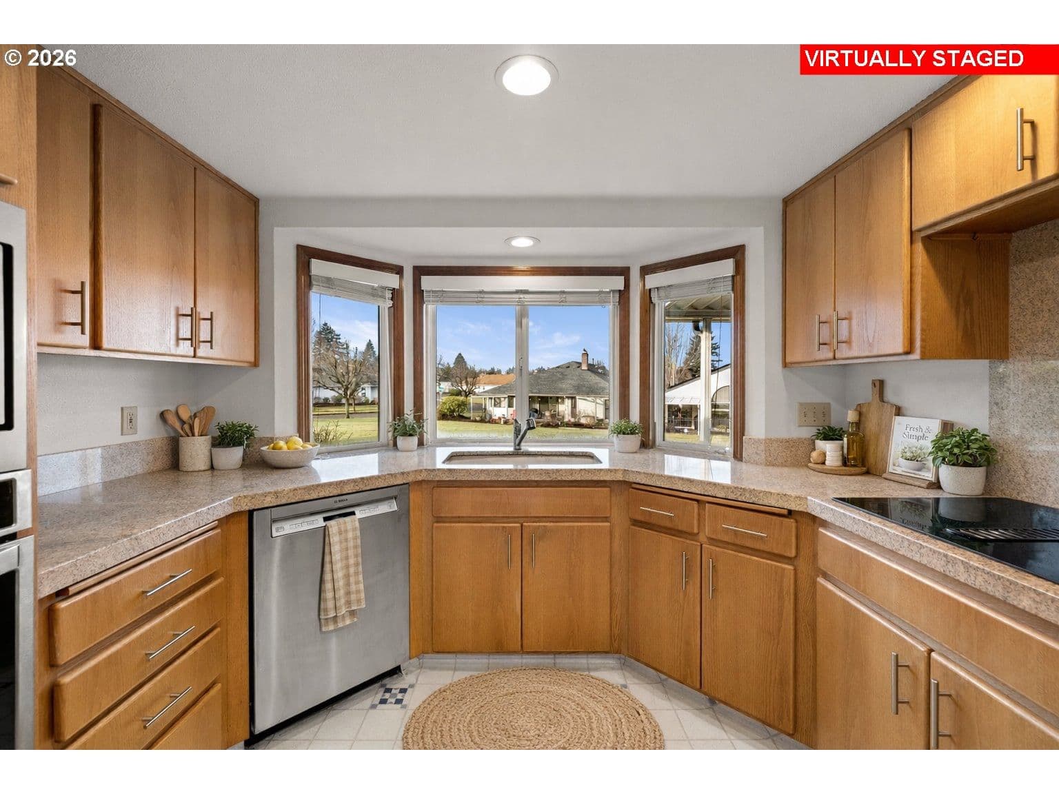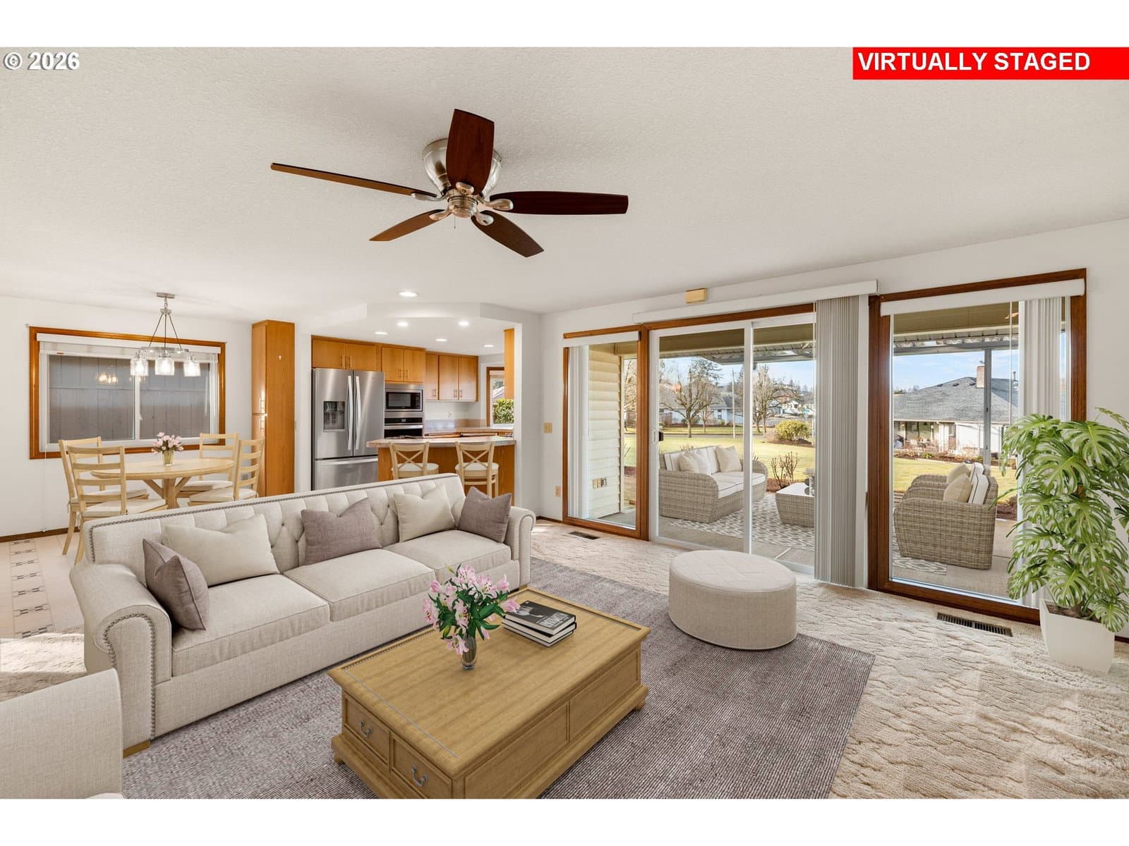 Welcome home to this highly desired 3 bedroom Englewood floor plan with over 2000 sq ft of one-level living in 55+ Summerplace. Gorgeous green space views from the upgraded kitchen, family room and primary bedroom suite. The kitchen includes stainless appliances, granite counters, barstool seating and a dedicated breakfast nook. The kitchen flows seamlessly into the spacious family room, where a walk-out slider leads to a covered patio with peaceful views that will make you smile. The primary suite includes double closets, en-suite bathroom, double sinks, soaking tub and a separate walk-in shower. The thoughtfully designed split-wing layout provides privacy, with the third bedroom easily serving as a guest room or home office. The living room provides entertaining options with a vaulted ceiling and gas fireplace, while the dining room showcases beautiful custom cabinetry. The hallway bath has been upgraded with a custom walk-in shower. Additional amenities include indoor laundry, solar tubes, newer A/C, furnace and roof. Custom built-in storage in the garage. With its convenient one-level layout, this home offers ease of mobility and accessibility, ideal for those seeking practicality and ample space. All this and you are part of the Summerplace community with the active clubhouse and activities. Don’t miss this opportunity! Call now to schedule an appointment. [Home Energy Score = 4. HES Report at https://rpt.greenbuildingregistry.com/hes/OR10107768]