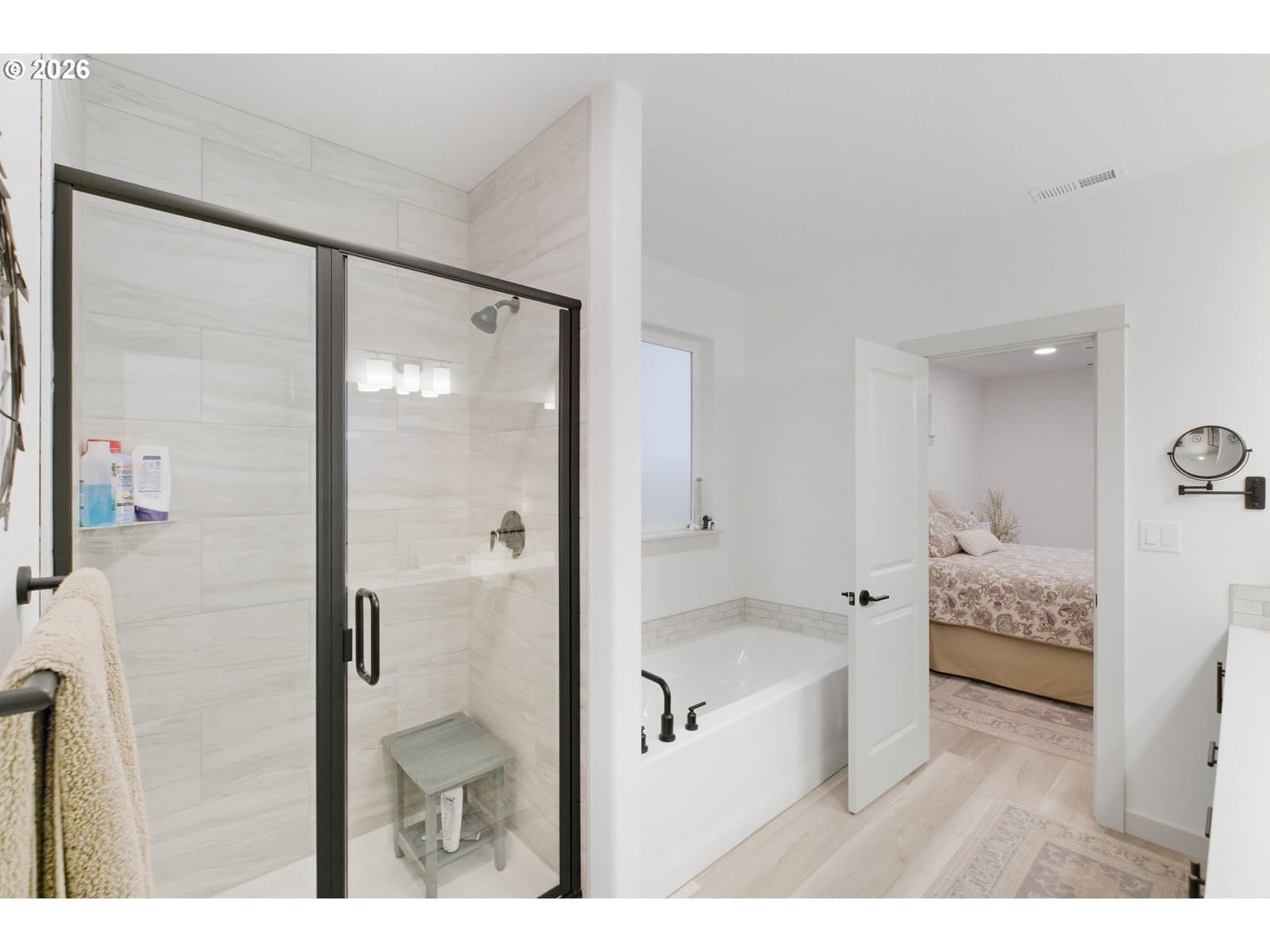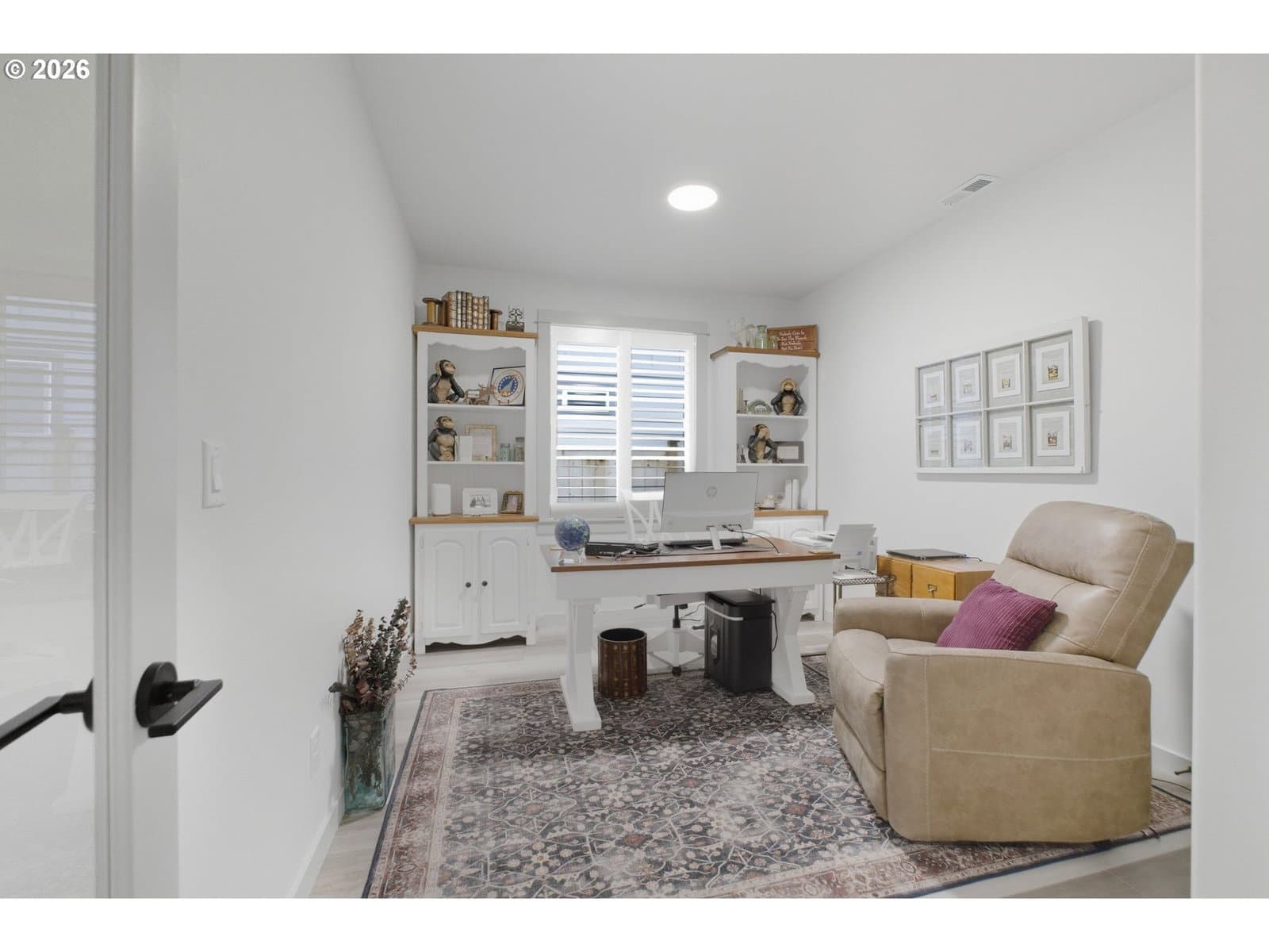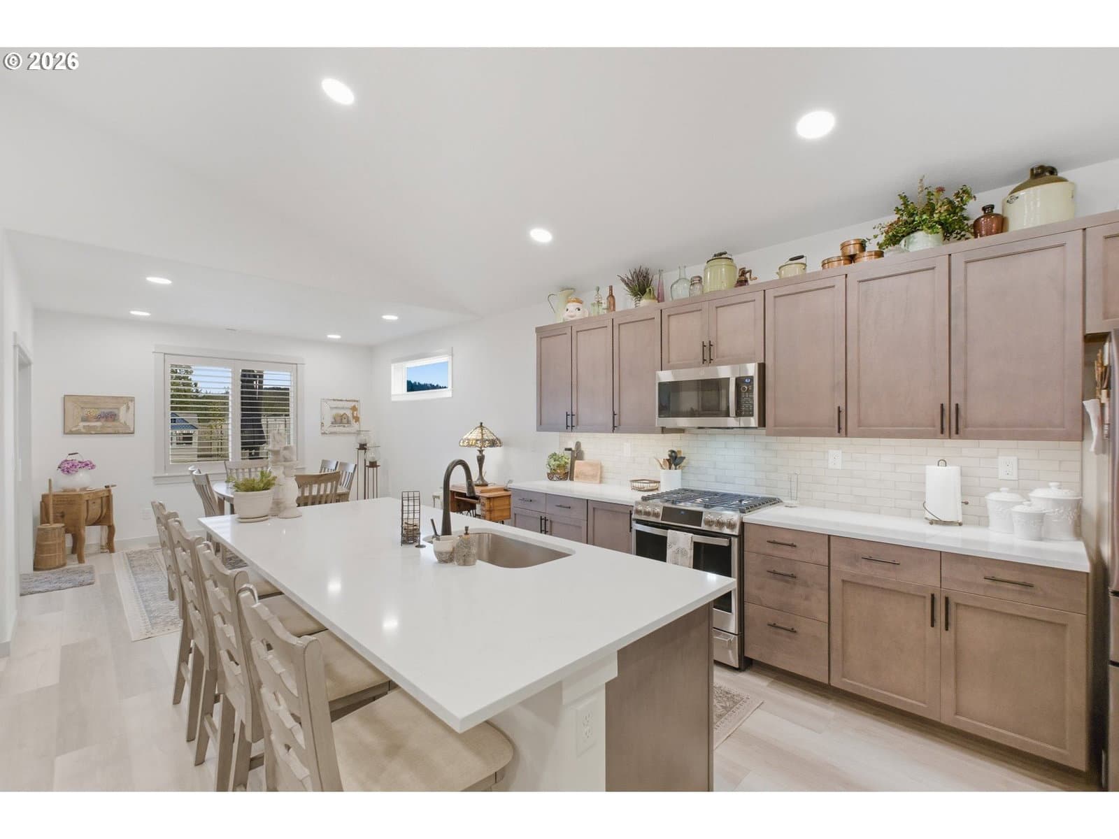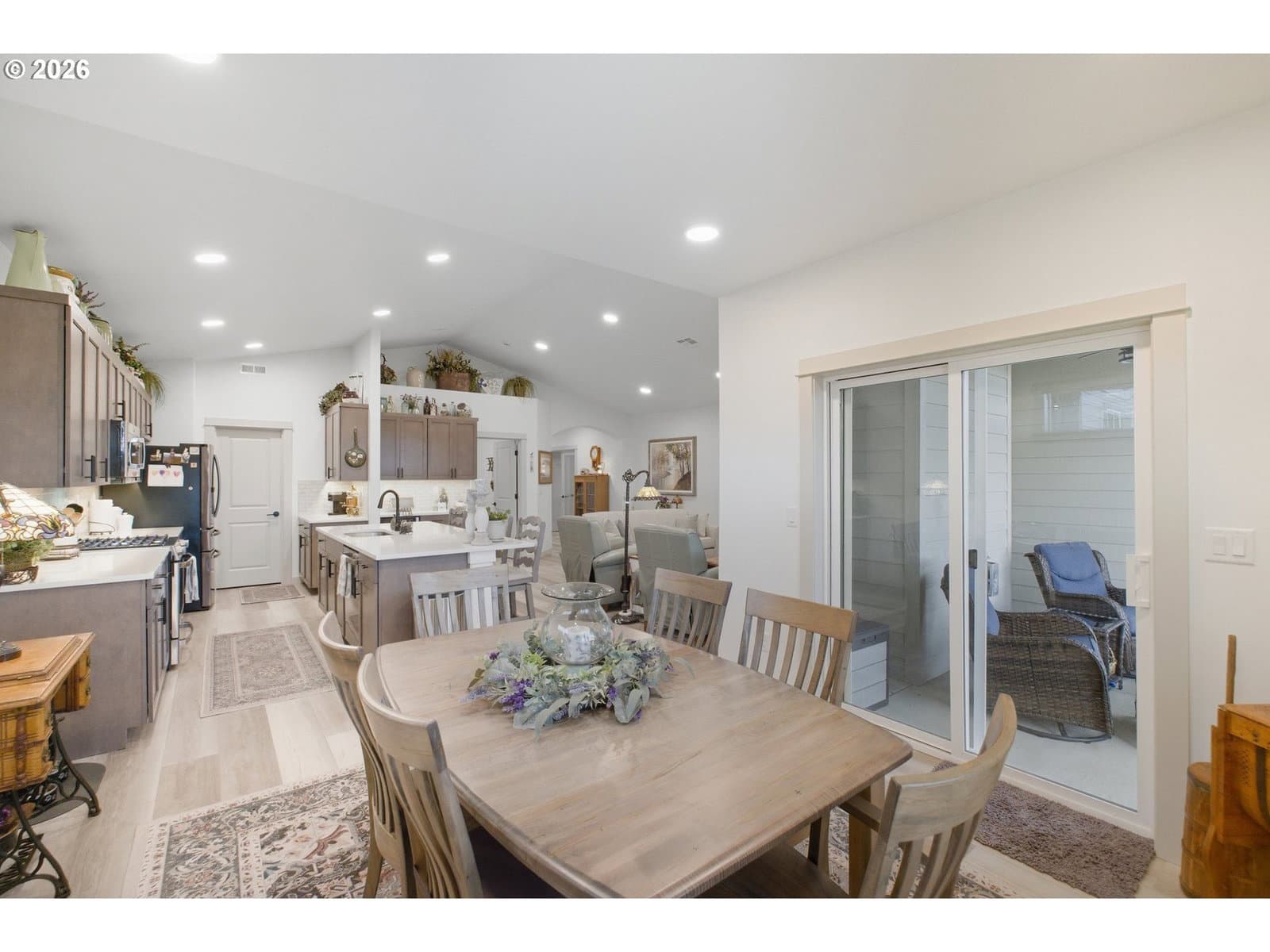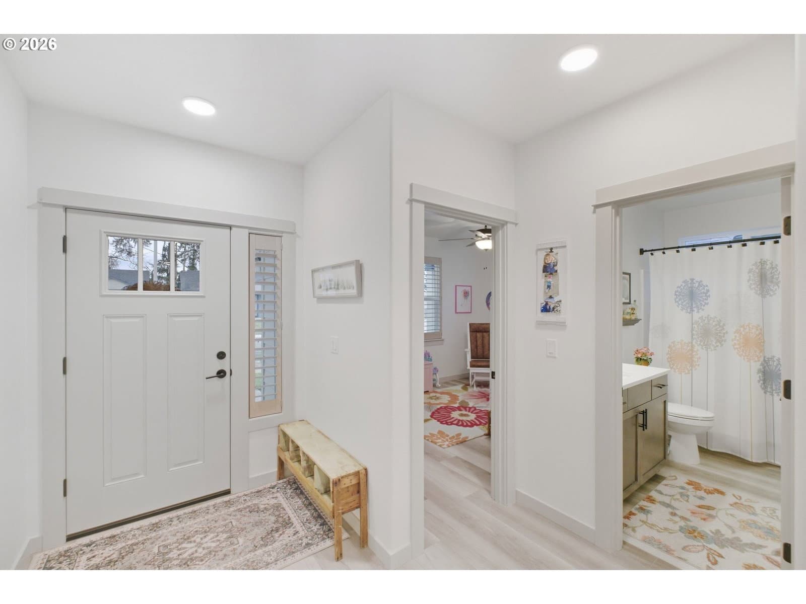 Welcome to this beautifully built 2024 single-story home offering 3 bedrooms and 2 bathrooms, perfectly designed for modern living and effortless entertaining. Enjoy the ease of open-concept living with durable and stylish LVP flooring throughout and a warm, inviting gas fireplace anchoring the main living space.The kitchen features sleek quartz countertops, ample cabinetry with pull out drawers, and a spacious pantry, making both everyday meals and hosting a breeze. Large windows frame gorgeous views and fill the home with natural light, creating a bright and welcoming atmosphere.Step outside to a covered patio overlooking a large, flat backyard—ideal for play, pets, gardening, or future outdoor projects. A charming water fountain feature adds a peaceful touch, perfect for relaxing evenings and morning coffee with a view.With modern finishes, thoughtful layout, and a nearly brand-new build, this home offers comfort, style, and space—inside and out. Truly move-in ready and waiting for you to make it your own.