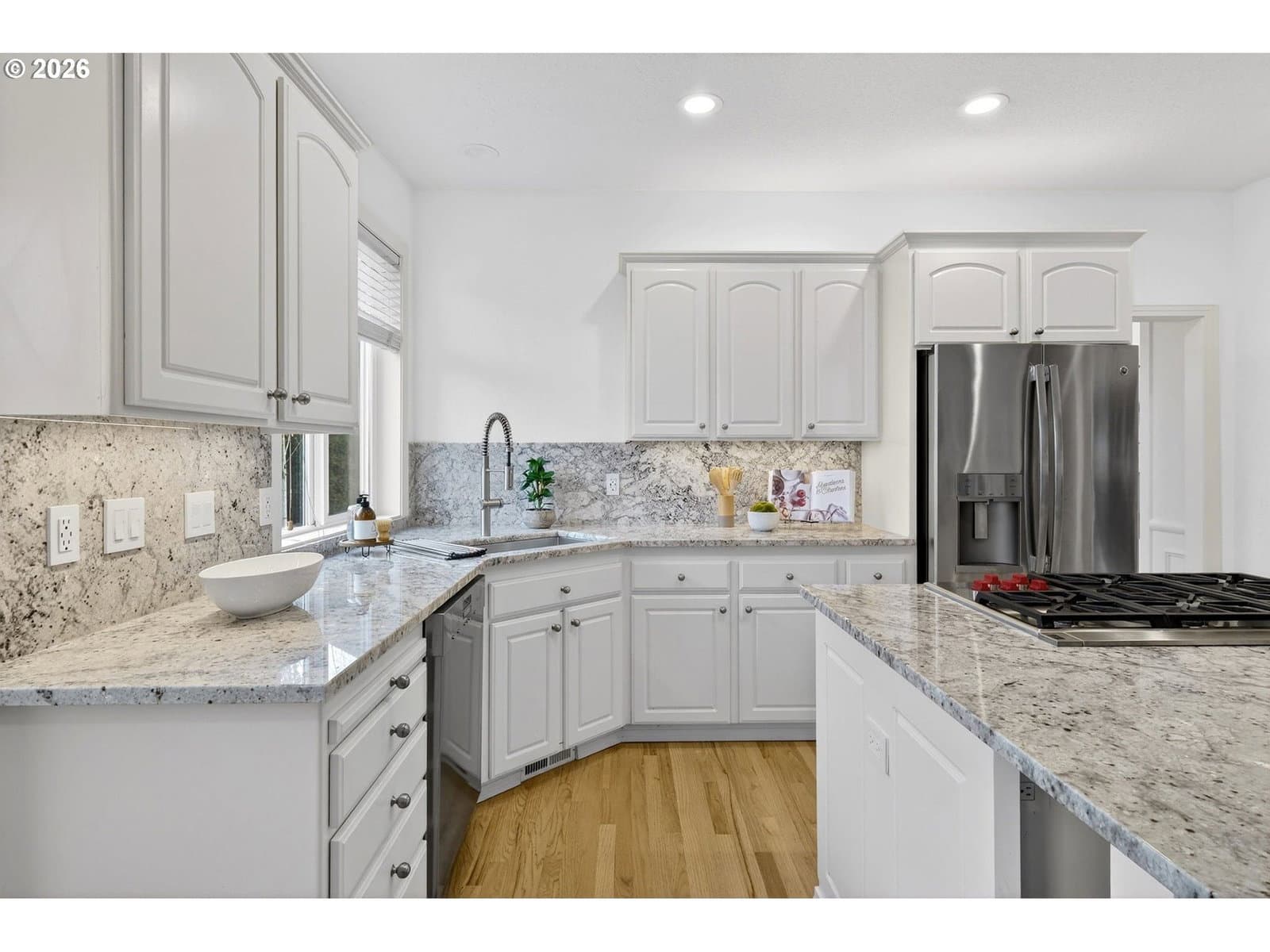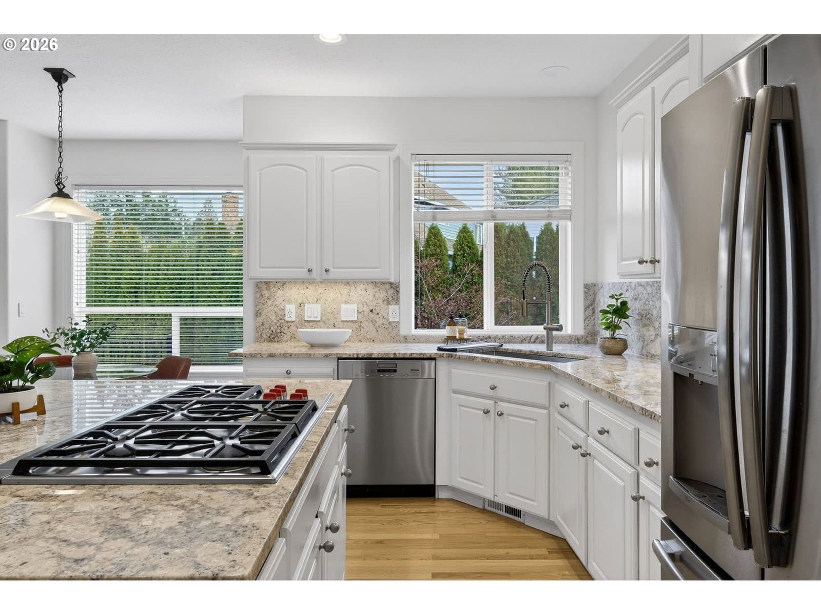 *OPEN SUN 2/22 FROM 2-4 PM* This charming Craftsman on a quiet Thompson Park cul-de-sac has been thoughtfully updated with new carpets and fresh paint throughout. Soaring ceilings and a hardwood foyer welcome you to the formal living and dining rooms with fireplace and vaulted ceilings. The chef’s kitchen shines with granite counters and full height granite backsplash, white cabinets, island with seating, Miele dishwasher, Wolf cooktop, GE Monogram oven/microwave, and a sunny eat-in nook with deck access to the spacious backyard—perfect for entertaining. Family room features built-ins, fireplace, and new deck access. Upstairs, the primary suite offers French doors, backyard views, ensuite with granite counters, soaker tub, and walk-in closet. Three additional bedrooms and updated hall bath complete the upper level. Home highlights include new roof (2018), new fence, low-E windows, encapsulated crawlspace, Carrier Infinity HVAC (2019), fast-recovery water heater (2024), and pre-list inspection. Tucked between Findley Elementary and Bonny Slope Park—move-in ready!