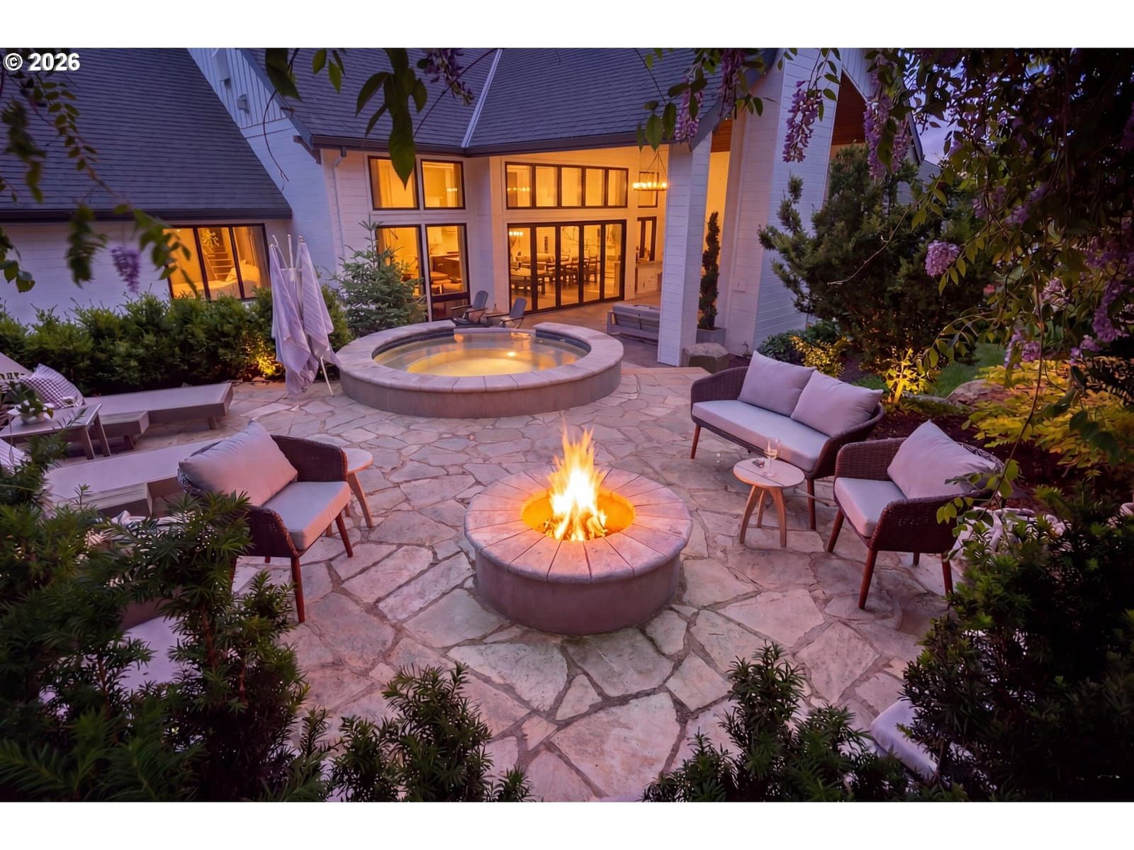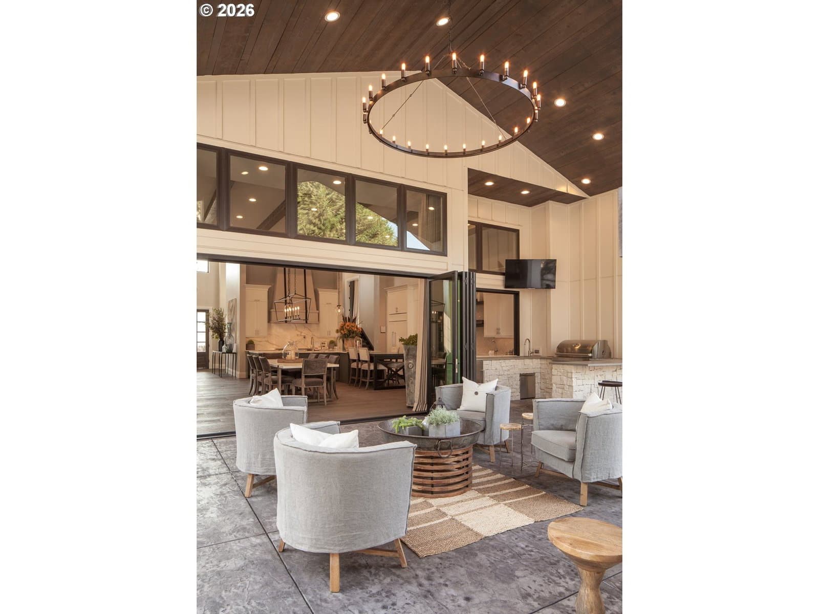 One-level living at its finest. Welcome to The Elysian — an award-winning custom home in the gated 2017 Street of Dreams neighborhood. The open-concept layout is anchored by a striking hood fireplace and seamless indoor-outdoor living through lanai bi-fold doors. The chef’s kitchen is equipped with premium Wolf and Sub-Zero appliances. The luxurious primary suite includes a spacious walk-in closet with a center island and a spa-like roll-in shower. Quartz countertops and heated tile floors extend throughout the home. The oversized bonus room houses a dedicated home theater with a 144" Stewart screen and immersive 11.2 Dolby Atmos sound. The outdoor living is equally impressive, featuring a custom in-ground spa, outdoor kitchen, covered dining area, basketball sport court, and a charming European-style greenhouse. Additional amenities include a temperature-controlled wine room, private gym, dog wash, and fenced dog run. Ideally located within walking distance to top-rated schools, scenic walking trails, and the beautiful Happy Valley Park, this home offers the perfect balance of luxury living and everyday convenience.