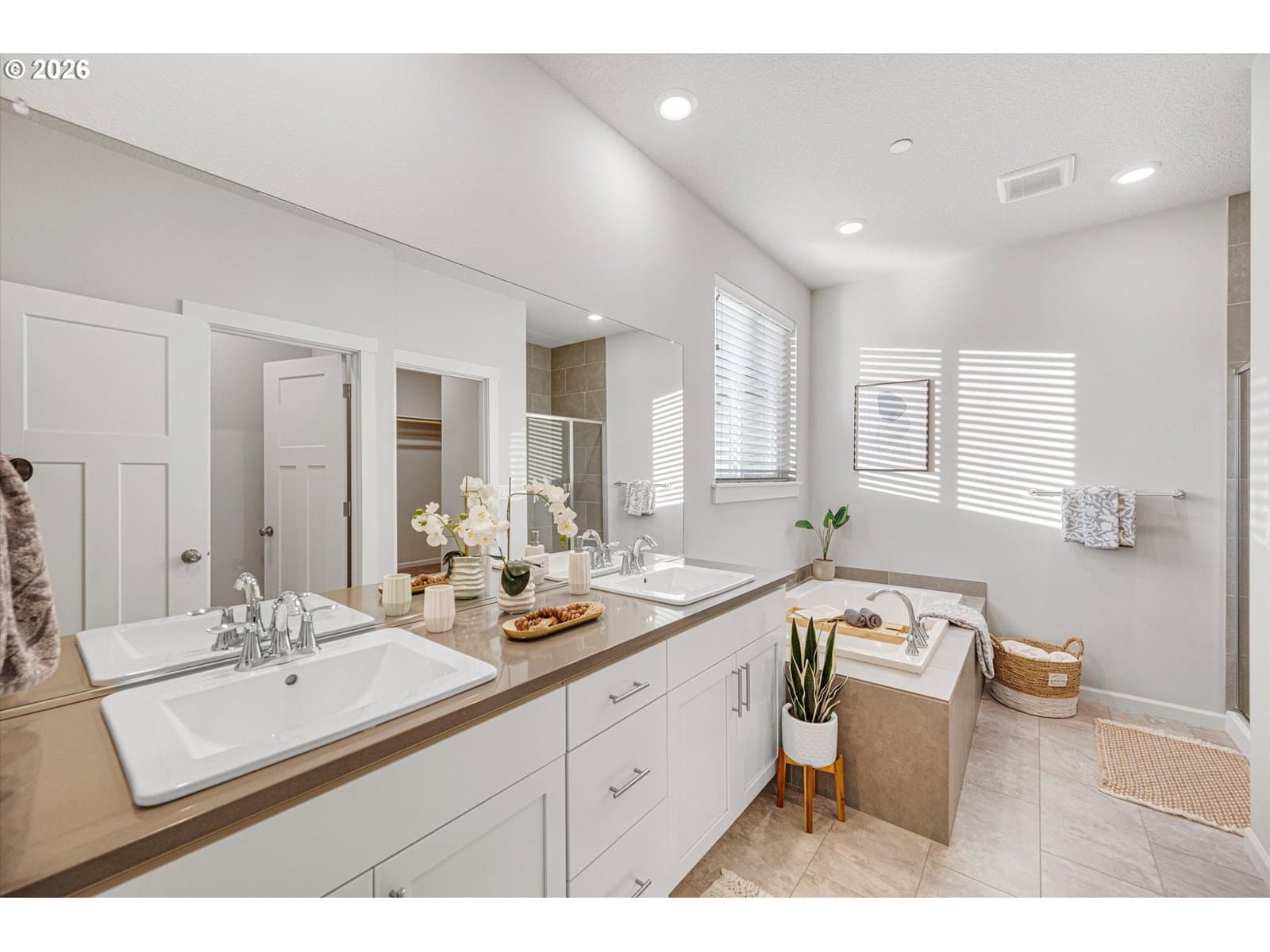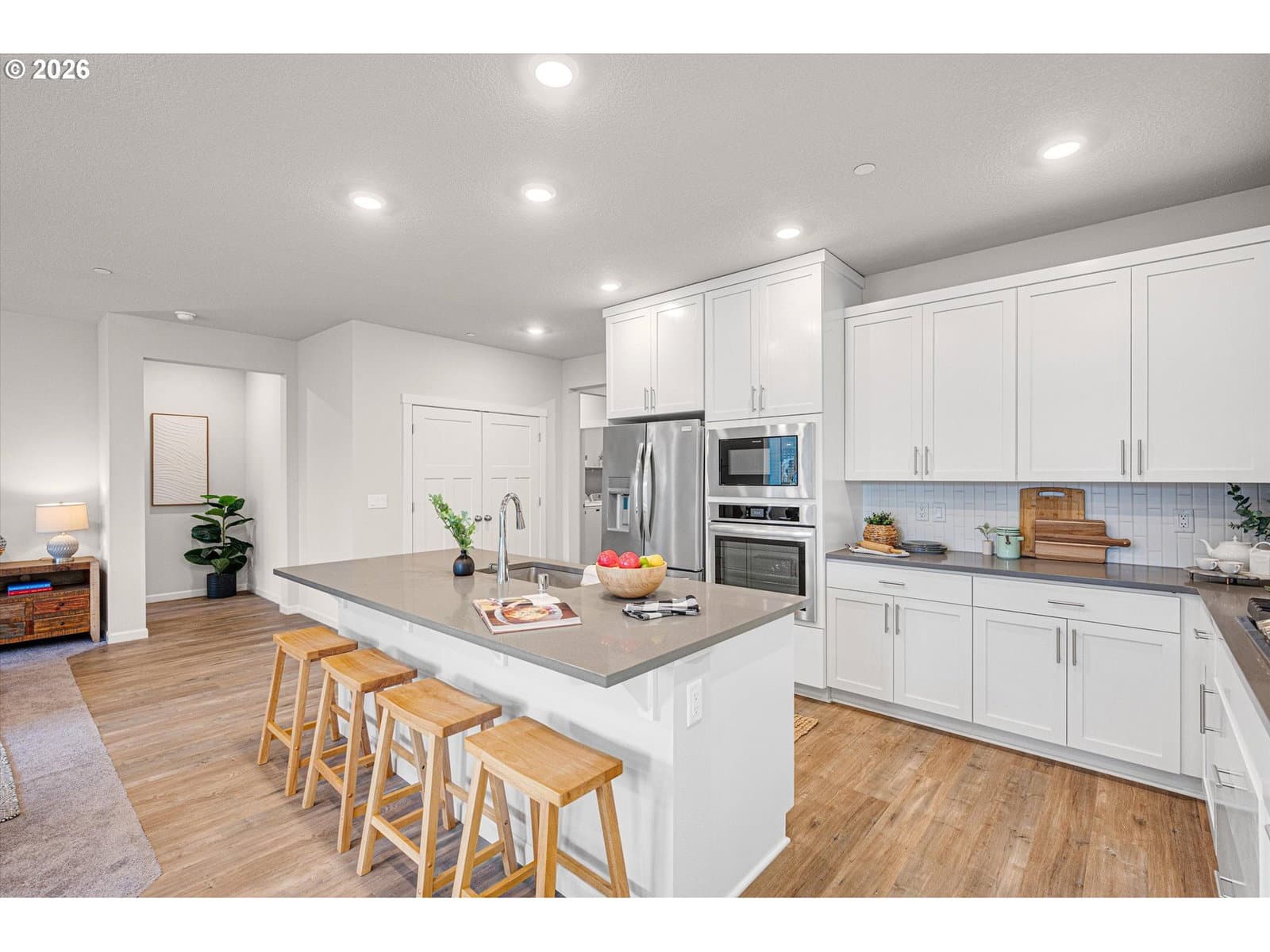 Impeccable in Ridgefield! This 4-bedroom, 2-bathroom single-story has been meticulously maintained, only lightly lived-in for 13 months, and is move-in ready. The open floor-plan includes a gorgeous kitchen with stainless steel appliances and a large island, perfect for entertaining. Wide hall and bedroom locations that offer flexibility and privacy for all. Primary bedroom has a huge ensuite bathroom complete with a soaking tub and large walk-in closet. 3-car garage, covered patio, and a fenced yard with sprinkler system and large western facing space just waiting for a garden to be planted! Premium location close to the community basketball court, across the street from the playground, steps to walking trails, and adjacent to the community green space, providing ample room for outdoor activities. Enjoy beautiful views of the wooded area from the office windows. Easy access to downtown Ridgefield, highly rated Ridgefield schools, Ridgefield Wildlife Refuge, shops, restaurants, In-N-Out! :), and I-5!