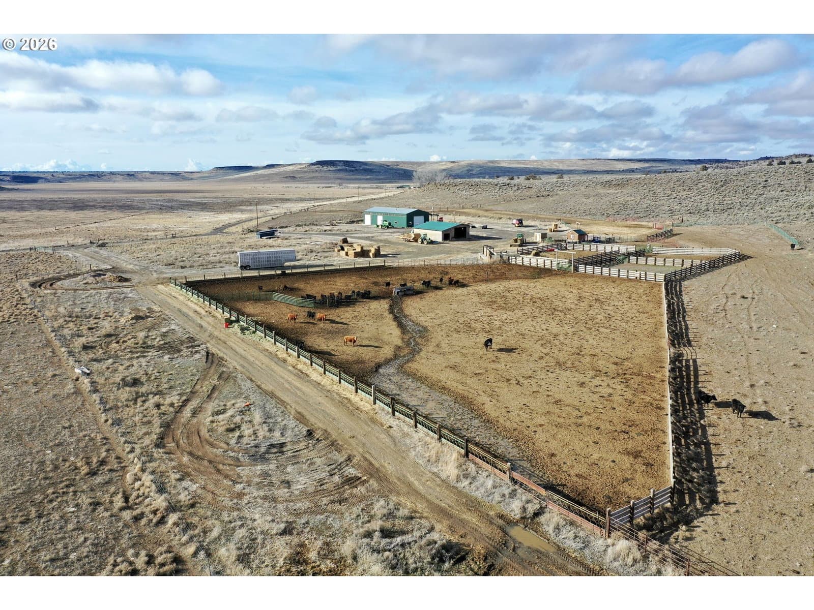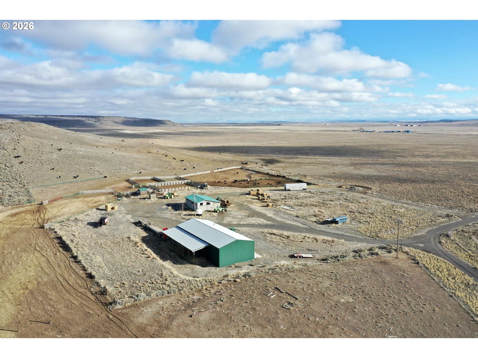 The Weaver Springs farm had historically operated as an irrigated agricultural operation producing primarily alfalfa, wheat, and mint on soils consisting primarily of a mix of Lawen fine sandy loam and Morganhills complex sandy loam. OWRD records indicate irrigation rights for approximately 826.60 acres, appropriated from onsite wells. Irrigation infrastructure includes multiple wells, onsite reservoir, series of buried mainline, and 8-Pivots. Remaining acreage includes native pasture + operational and home site areas. Ranch operations are supported by three stock water wells, working corrals, feedlot area, perimeter + cross-fenced pastures. Improvements supporting the agricultural operation include a stable barn (2,340 SF), shop with lean-to (3,382 SF + additional 1,152 SF lean-to), a GP building (1,728 SF), two large hay sheds (10,200 SF and 16,020 SF), general storage sheds, scale house, and a 20-ton scale. The property also includes gravel and dirt interior roads, and access via frontage along Weaver Springs Road.The ranch house includes a 5,009-square-foot stick-built residence with a 1,044-square-foot attached garage. The home reportedly underwent interior remodeling around 2017 and the wood-clad interior includes 4 bedrooms, 3 bathrooms, spacious kitchen, living, dining, family, recreation, office, and foyer areas. Interior finishes include wood flooring, wood walls/ceilings, and custom wood cabinetry. Approximately 40% of the exterior siding was not completed. Information package available upon request. 2,340 SF Barn; 3,382 SF + 1,728 SF GP Buildings; 16,020 SF + 10,200 SF Hay Sheds; 20-ton scale + Scale House; 8 Pivots, Native Pasture