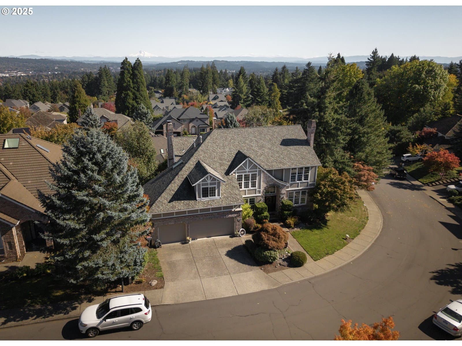 Positioned high on Bull Mountain with commanding views of Mt. Hood, Mt. Bachelor and Mt. St Helens. This 3,527 sq ft traditional classic balances elevation, privacy, and refined design. Every element reflects intention—vaulted ceilings, rich hardwoods, and seamless transitions between formal and informal living spaces.The main level pairs scale with warmth: an updated kitchen with granite counters and stainless-steel appliances opens to a family room anchored by a wood-burning fireplace. A formal dining room, French-door office, and abundant natural light create spaces that live as beautifully as they photograph.Upstairs, four spacious bedrooms and a versatile bonus room continue the home’s rhythm and livability. The primary suite features a gas fireplace, soaking tub, double vanity, and unobstructed Mt. Hood views. Waking up to the mountain every morning is an experience that never fades.Below the main-level deck, a full workshop and storage area expand the home’s function without altering its clean design. Outdoors, a dog-friendly fenced backyard with two serene ponds provides an uncommon mix of tranquility and privacy. Recent updates include a 50-year roof (2019) and dual 50-gallon water heaters (2024). A three-car garage and mature landscaping complete the property’s confident presence.Located in one of Tigard’s most established enclaves, Bull Mountain rarely gives up a property with this kind of placement. 14362 SW 134th Dr represents the rare mix of architectural integrity, placement, and care that defines Bull Mountain living.