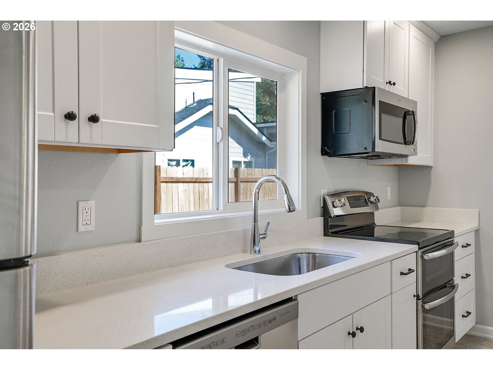 So much new in this adorable home! Very little has been left untouched! in 2024: New cabinets, counters, appliances, underfloor insulation, attic insulation, framing of kitchen ceiling, light fixtures and vapor barrier! The majority of pluming and electrical have been updated as well. In addition to that new windows, siding and roof were completed within the last few years. Tons of off street gated parking. Room for RV or boat or both! Small storage shed could be converted to a garage.