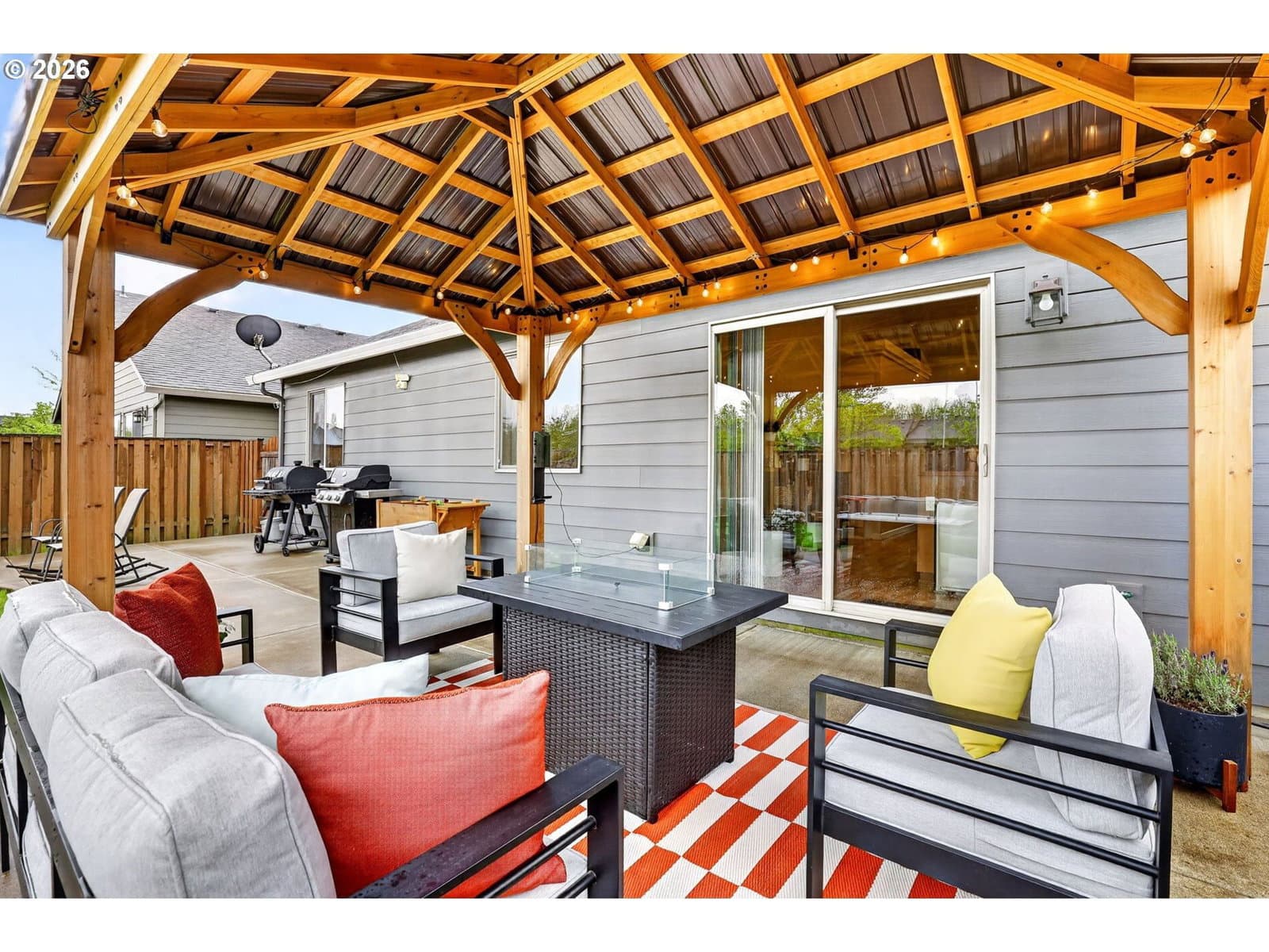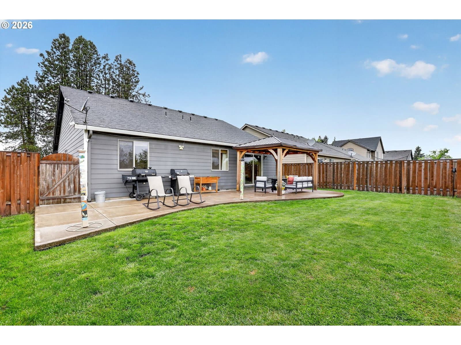 Incredible quality meets affordability in this home! Soaring vaulted ceilings and an open design make it feel much larger inside. Features include stainless steel appliances, custom cabinetry, front-yard landscaping with an underground sprinkler system, and a delightful backyard gazebo.You'll love the architectural décor ledges, a spacious kitchen with an island and a raised breakfast bar, and a generous pantry—perfect for entertaining. The primary suite offers an oversized closet and roomy ensuite bath. Fully fenced backyard with patio, easy-care landscaping, super clean, gently lived in, and move-in ready!