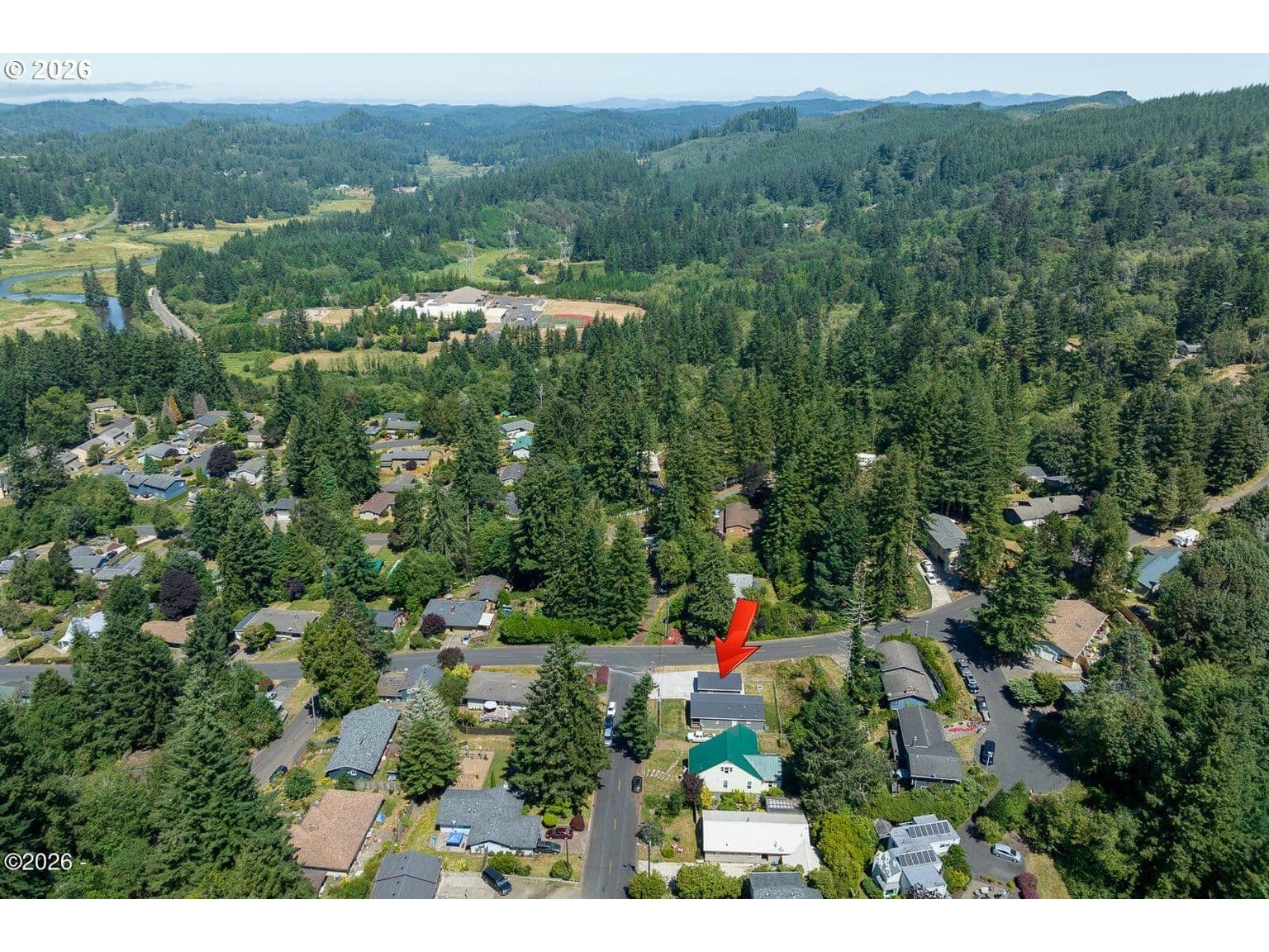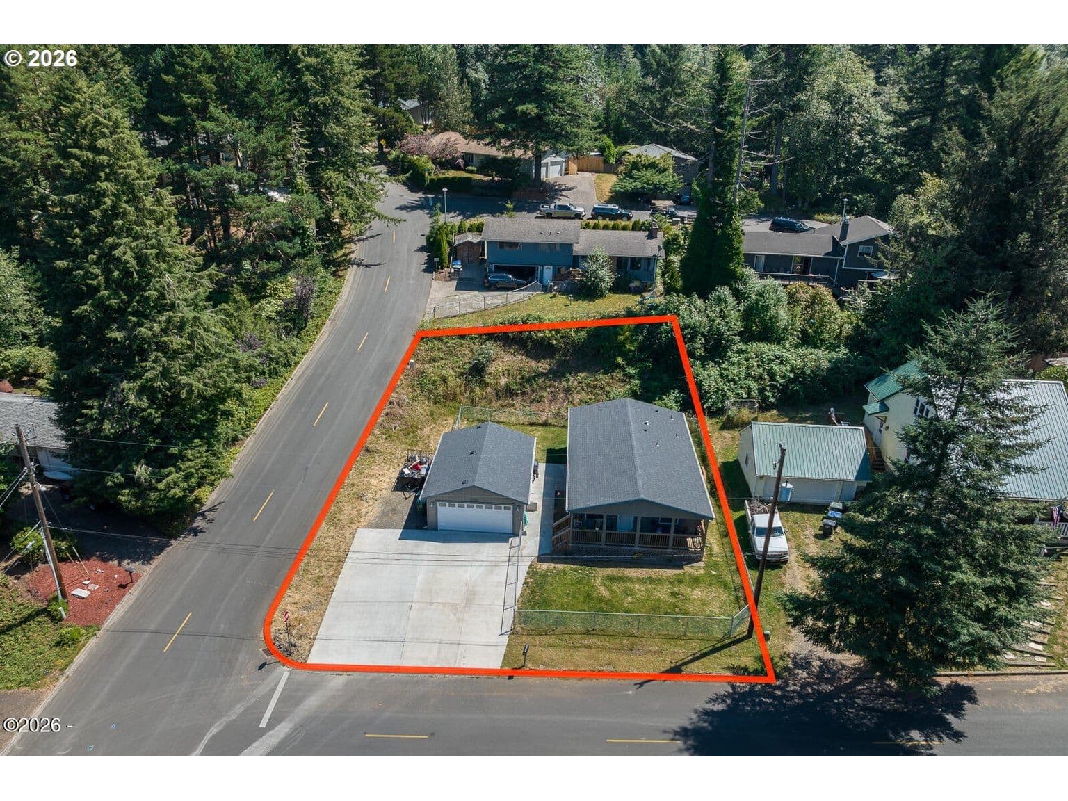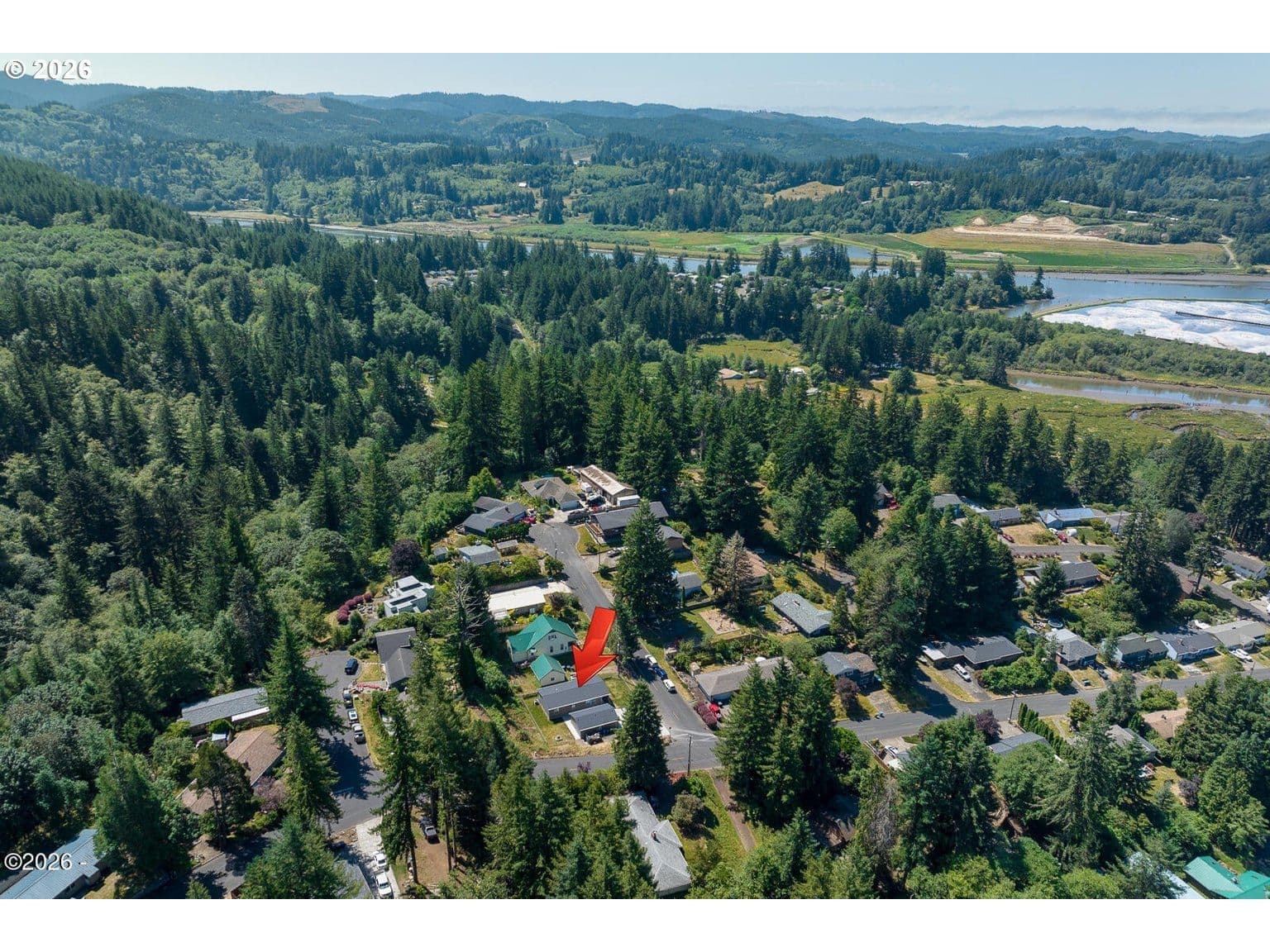 Picturesque mountain views frame this newer home in the heart of Toledo. Offering 2 bedrooms, 2 bathrooms, and over 1,200 square feet of comfortable living space, this property sits on a spacious corner lot and is filled with natural light throughout. Thoughtfully designed, the home features a versatile den/office, central A/C, an open-concept kitchen, and a paved driveway. Enjoy the inviting covered porch—perfect for relaxing or entertaining in any season. The oversized detached garage provides ample room for hobbies, projects, or additional storage, making it ideal for craftsmen and enthusiasts alike. Ideally located just a short drive from the Pacific Ocean and tucked into the foothills of a stunning mountain range, you'll have easy access to outdoor recreation including fishing, hiking, hunting, and more. Toledo is a charming, historic community known for its welcoming atmosphere and unique microclimate that offers a balance of sunshine and mild coastal weather. From sandy beaches to scenic mountain trails, adventure is always within reach. The current photos are from 2022, when the sellers purchased the home; updated photos will be uploaded soon.