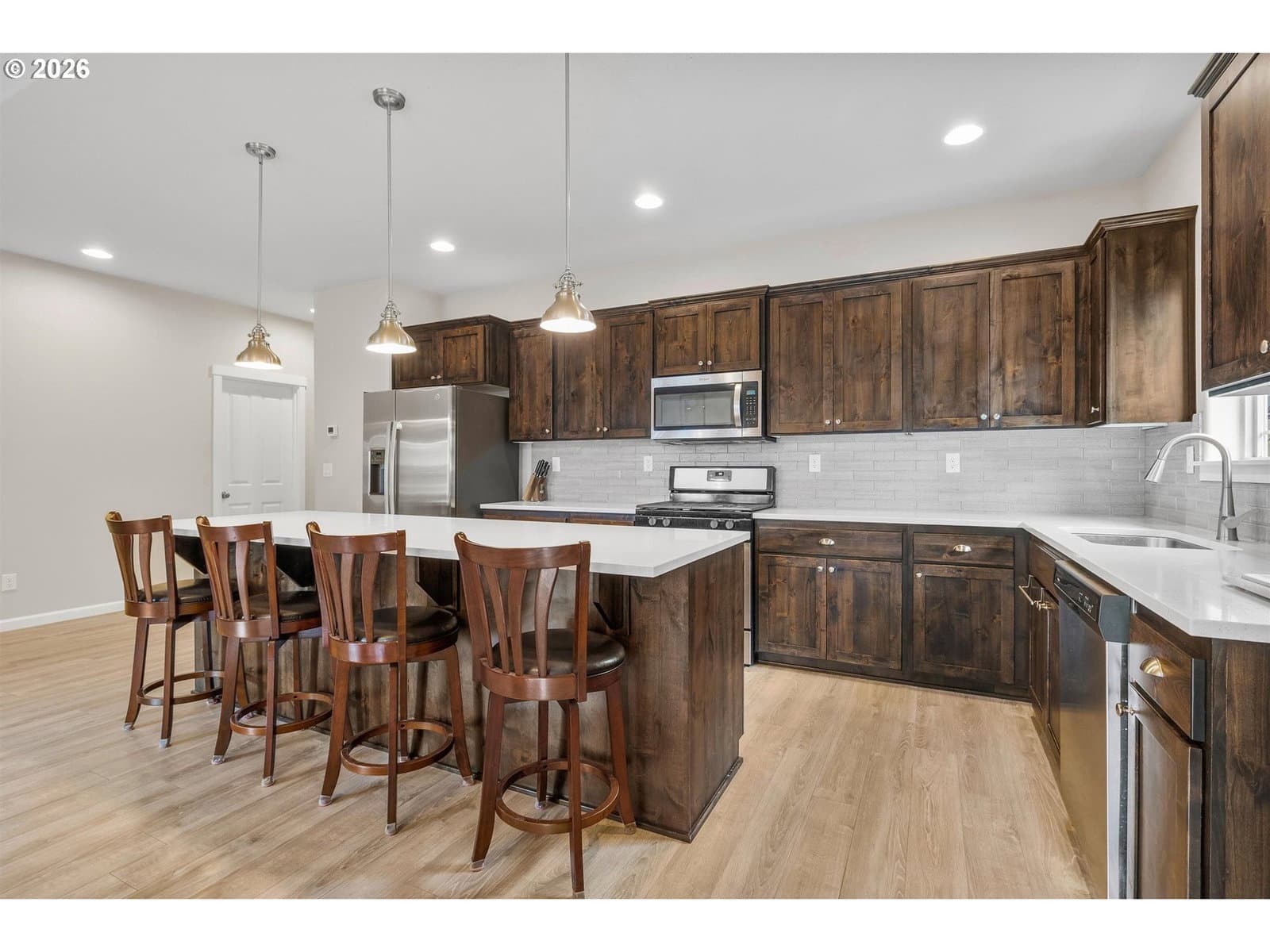 Impeccably maintained and truly move-in- ready, this single-level home in the sought-after Crystal Springs Subdivision offers the perfect blend of comfort, style, and functionality. Built in 2018, this 1,778 sq ft, 3-bedroom, 2-bath residence showcases thoughtful upgrades throughout. Step into an inviting open-concept living space featuring quartz countertops, warm Knotty Alder cabinetry with convenient roll-out shelves, and quality finishes that create both elegance and ease of living. The home extends seamlessly outdoors to a covered paver patio complete with ceiling fans--ideal for relaxing or entertaining year-round. You'll love the spacious 26-foot-deep, 2-car garage, storage shed w/ elec, and a fully landscaped, fully fenced yard with an in-ground sprinkler system. A standout feature is the generous, gated RV parking area with full hook-up and dump--perfect for RVs, trailers, or additional storage. As an added bonus, this home comes with a Choice Home Warranty until 7-17-2027.