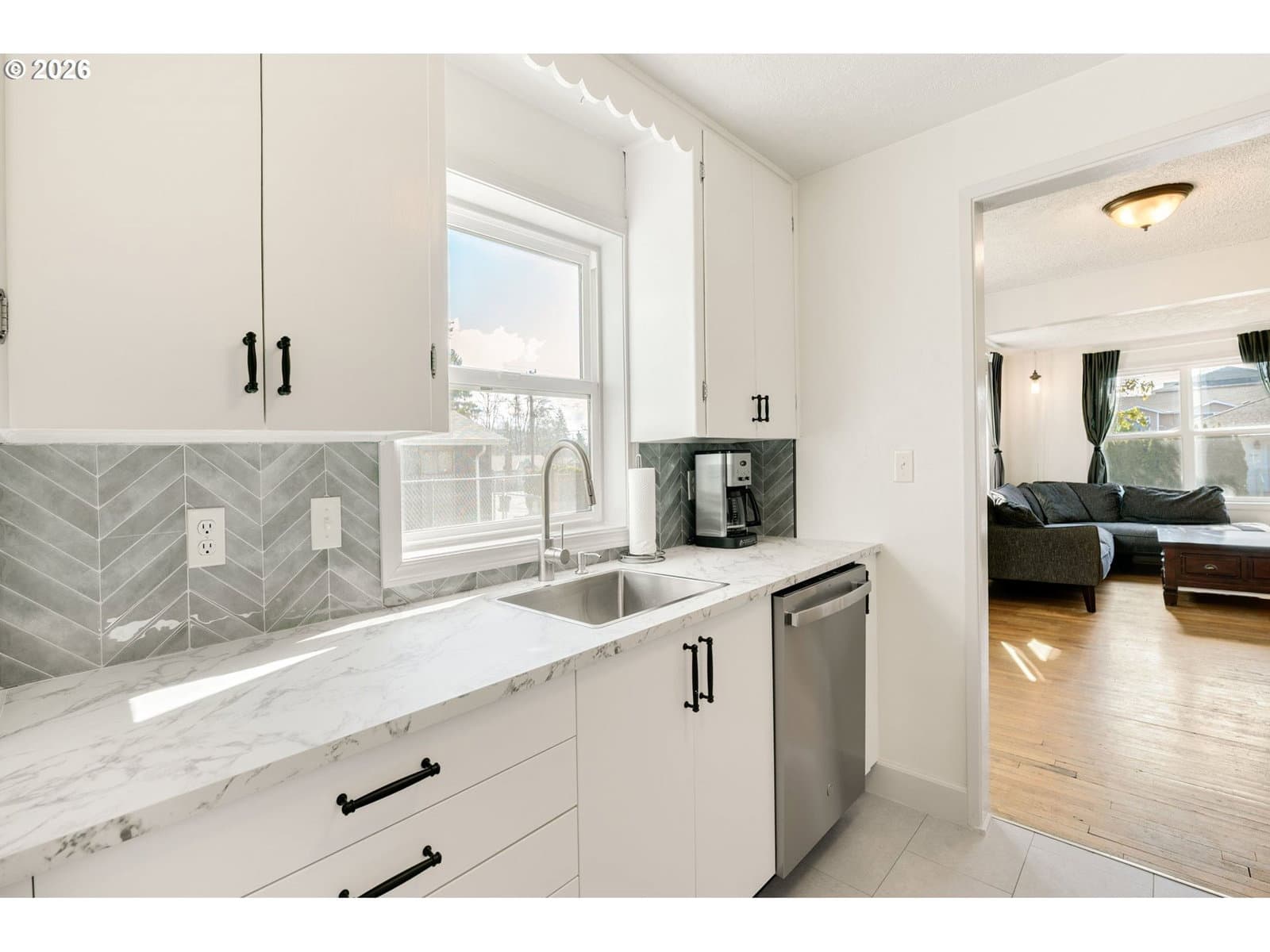 Quietly set on a private cul-de-sac loop, this beautifully crafted, daylight bungalow is the perfect blend of timeless character and thoughtful updates. From the moment you arrive, the tastefully landscaped, nearly quarter-acre fully fenced, buildable lot sets the tone—peaceful, private, and ideal for everyday living or entertaining. In spring, the yard awakens as rhododendrons bloom in rich, vibrant color and the Japanese maple unfurls its leaves, creating a serene and storybook setting. Inside, you’ll find all the craftsmanship and charm you’d expect in a classic bungalow: original hardwood floors, built-ins, and graceful curved archways that give the home its undeniable personality. The newly remodeled kitchen is more spacious than photos suggest and flows seamlessly into the dining area before opening into the inviting living space. A functional mudroom/laundry area connects the kitchen to the backyard, making hosting gatherings or managing daily life a breeze. Down the hall are two well-sized bedrooms and an elevated, remodeled bathroom featuring abundant built-in storage and closet space. Upstairs, the expansive, finished, loft-style sitting area offers flexible use—ideal for a workout space, playroom, additional sleeping area, or creative retreat. Outside, the fully fenced yard is ready for summer nights and gatherings at the picnic table under a red cedar, complete with a horseshoe pit, outdoor firepit area, tool shed, and exterior access. An attached garage offers easy, direct access into the home, making coming and going effortless. Additional updates show pride of ownership, including all windows being reframed, new interior and exterior paint, new fencing and landscaping, new drywall in garage, and brand new stainless-steel appliances. Homes with this level of character, warmth, and personality are truly rare. Come experience her charm up close—you’ll fall in love the moment you walk through the door. [Home Energy Score = 2. HES Report at https://rpt.greenbuildingregistry.com/hes/OR10128539]
