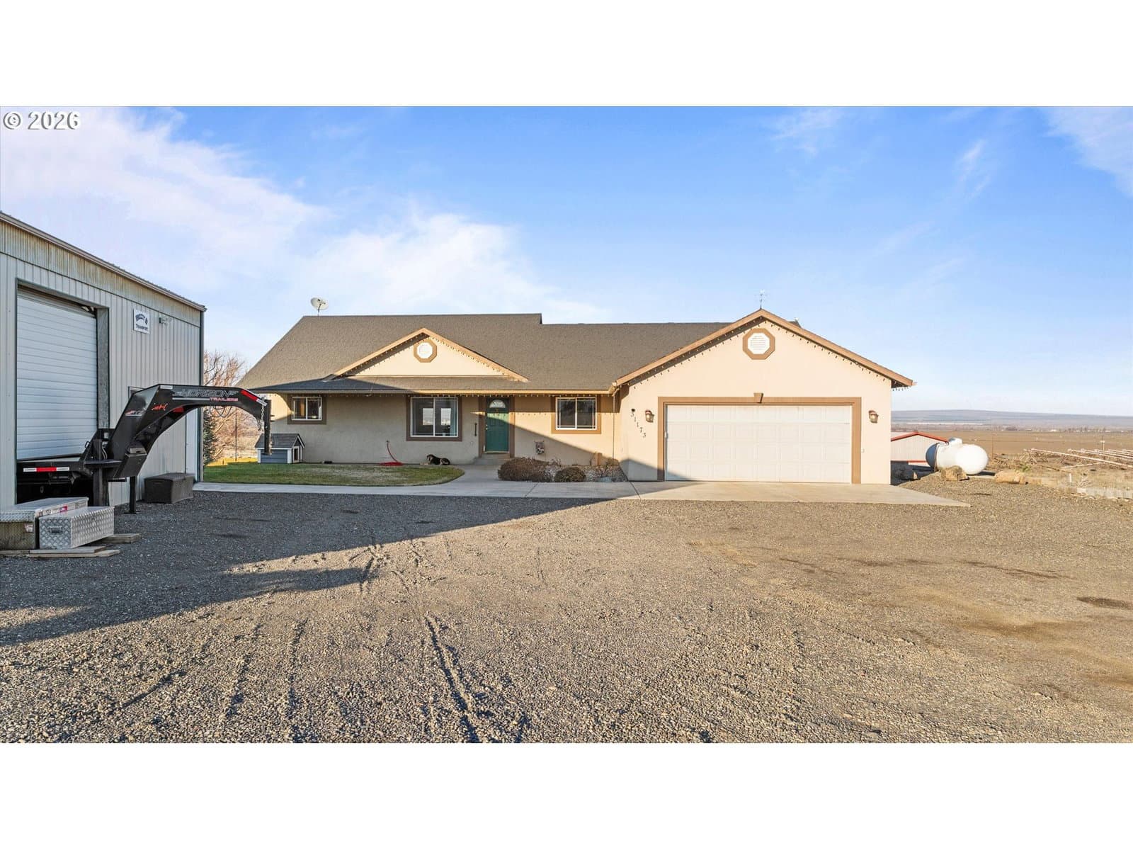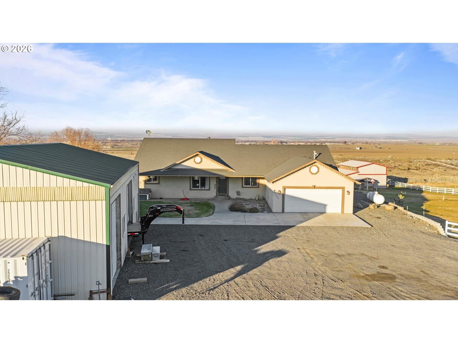 Welcome to your very own homestead dream on 2 acres perfectly set up for animals, hobbies, and wide-open living. This 3,000+ sq ft home offers main level living, including the laundry room, with an open-concept layout connecting the living room, kitchen, and dining area. Enjoy the charming built-in kitchen nook with bench seating and abundant storage throughout the home and property.Downstairs, the daylight basement provides a massive open space ideal for a recreation room, additional living area, home gym, media room, or multi-generational setup. The utility/water system and hot water tank are located in a spacious dedicated room. Step outside to the walk-out concrete patio and a beautiful yard with a great above-ground pool setup.Outside is where this property truly shines bring your animals and your vision! You’ll love the barn with multiple stalls, chicken coop, and a designated hay storage area. The impressive 48’x36’ shop with double overhead doors provides endless space for parking, storage, and projects. Pasture water lines have been updated, making the property even more functional for livestock and outdoor use.The garden area is ready for spring and the future planting season, and you’ll also enjoy a small orchard perfect for anyone wanting space to grow and live more self sustainably. Unwind on the main level deck in the summertime ideal for entertaining, BBQs, and enjoying those beautiful sunsets.This property is truly set up for your own homestead lifestyle with room inside and out to grow—come see it today!