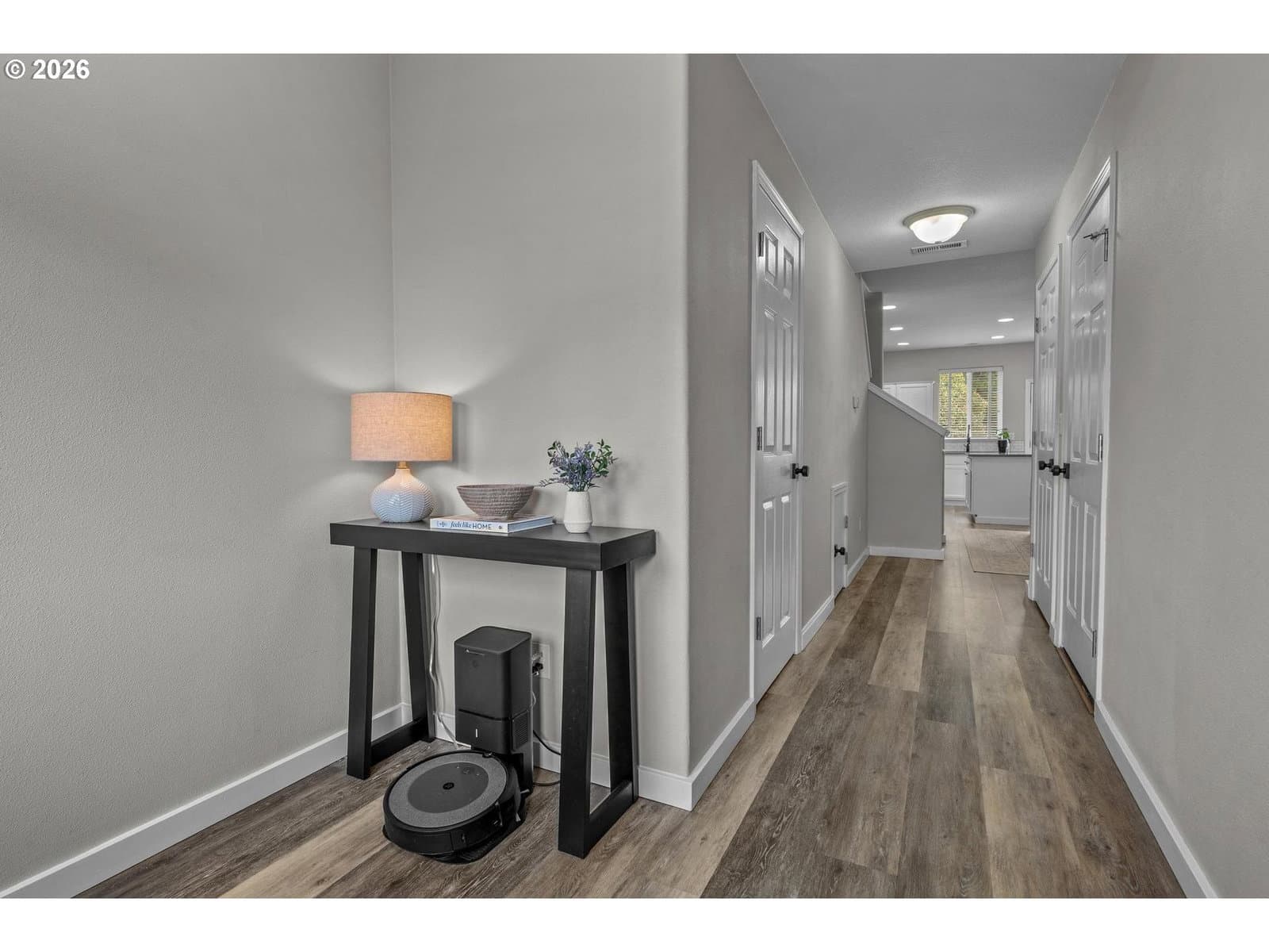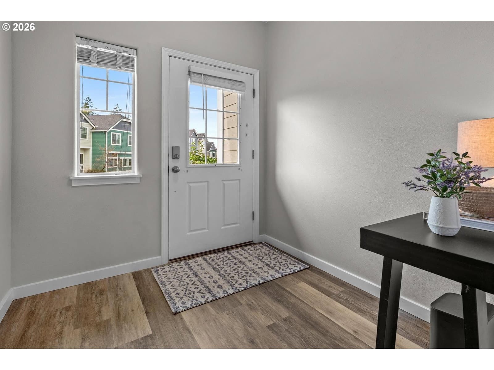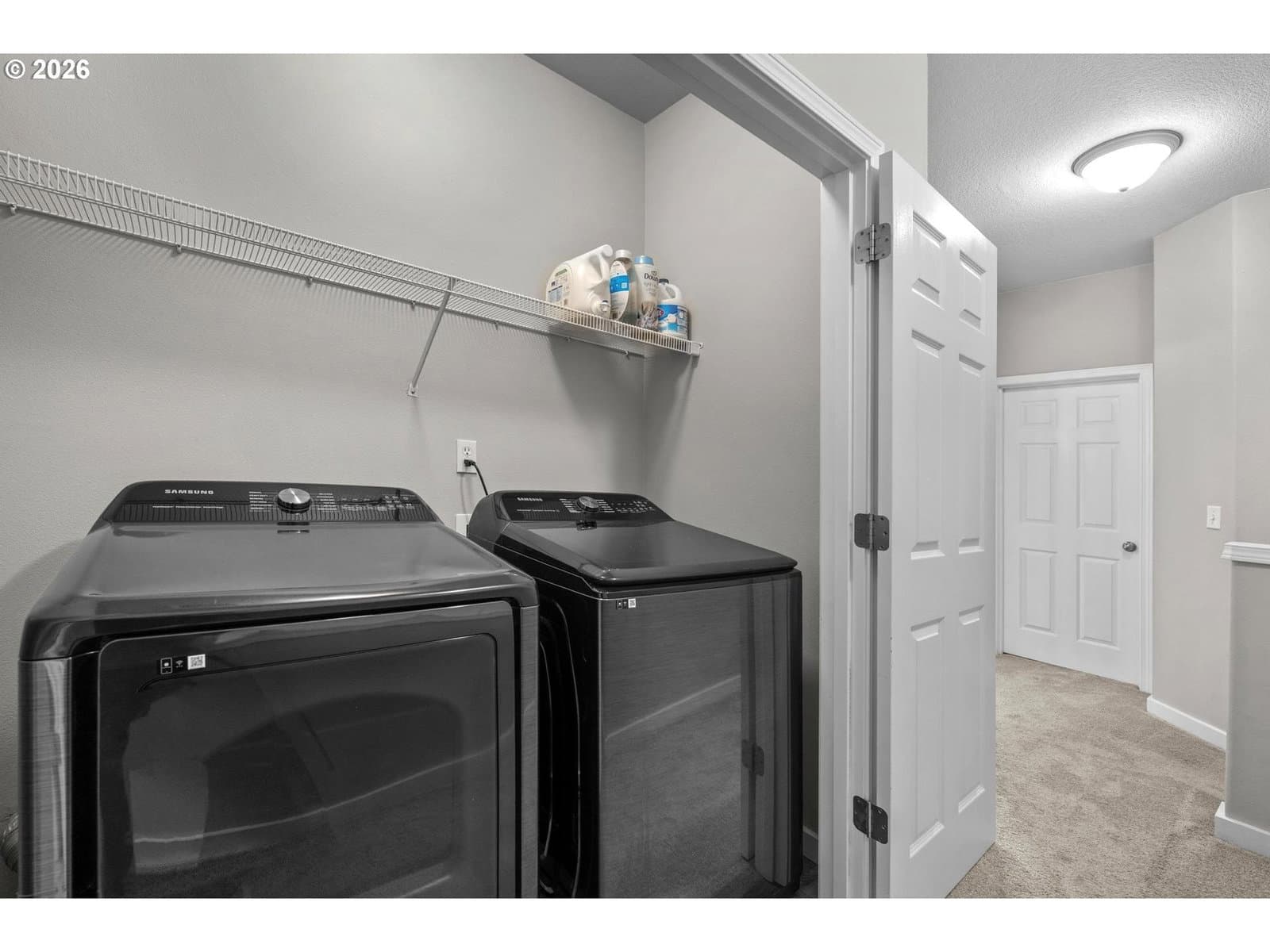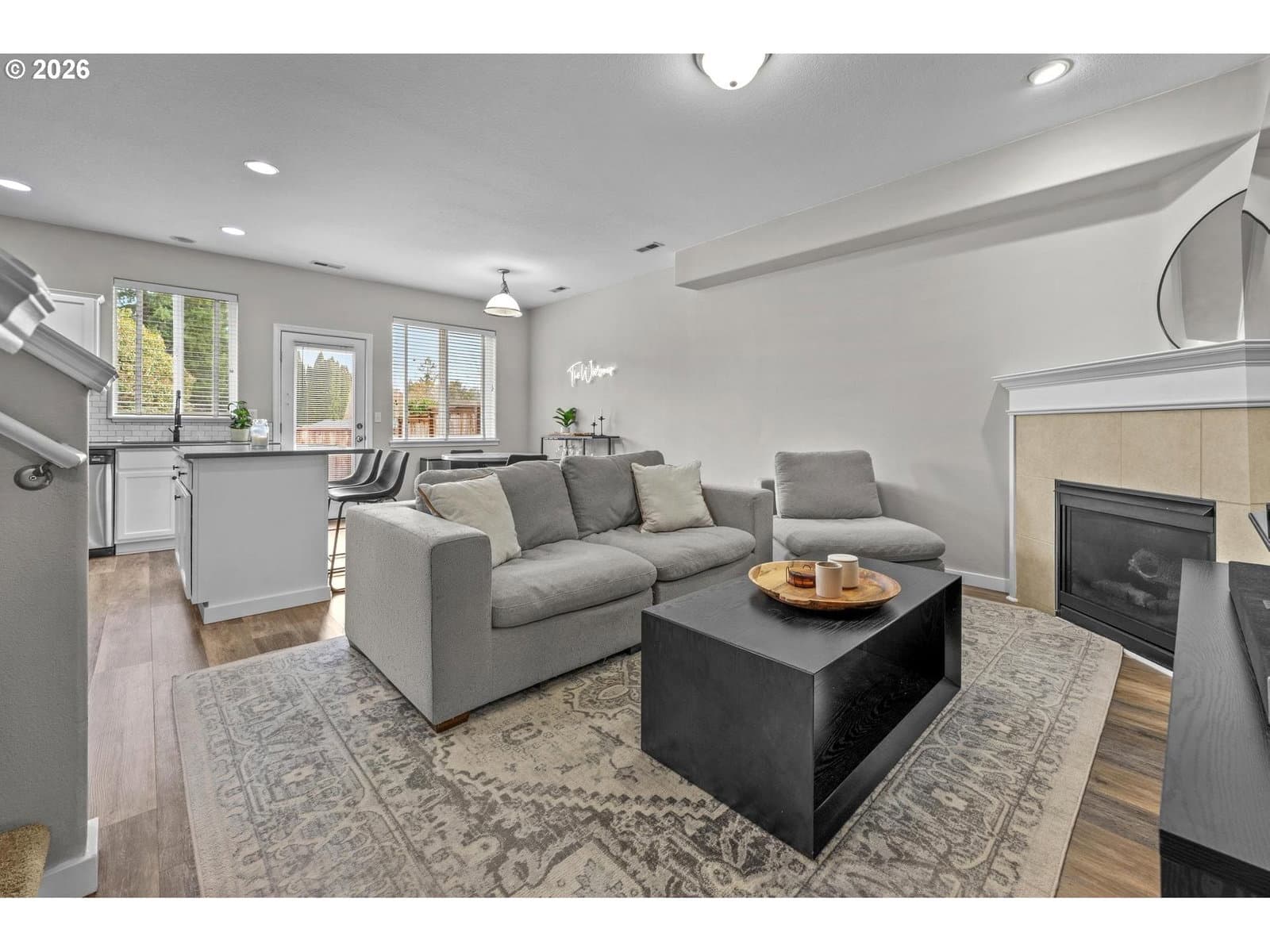 Great location for this well cared for townhome. Light filled rooms greet you the moment you walk in. Large open kitchen with quartz counters, island, gas range, SS appliances, pantry. Great room with cozy fireplace & eating area. Large primary suite with walk in closet, built-ins, bath w/ quartz counters. Two additional bedrooms- both good sized. Upstairs laundry with washer/dryer included. Fabulous back yard with new turf for easy care, patio and fenced for privacy- overlooking greenspace. Super quiet neighborhood, close to downtown Sherwood, parks, & Hwy 99. New interior paint, newer roof, newer HVAC system, newer hot water heater.