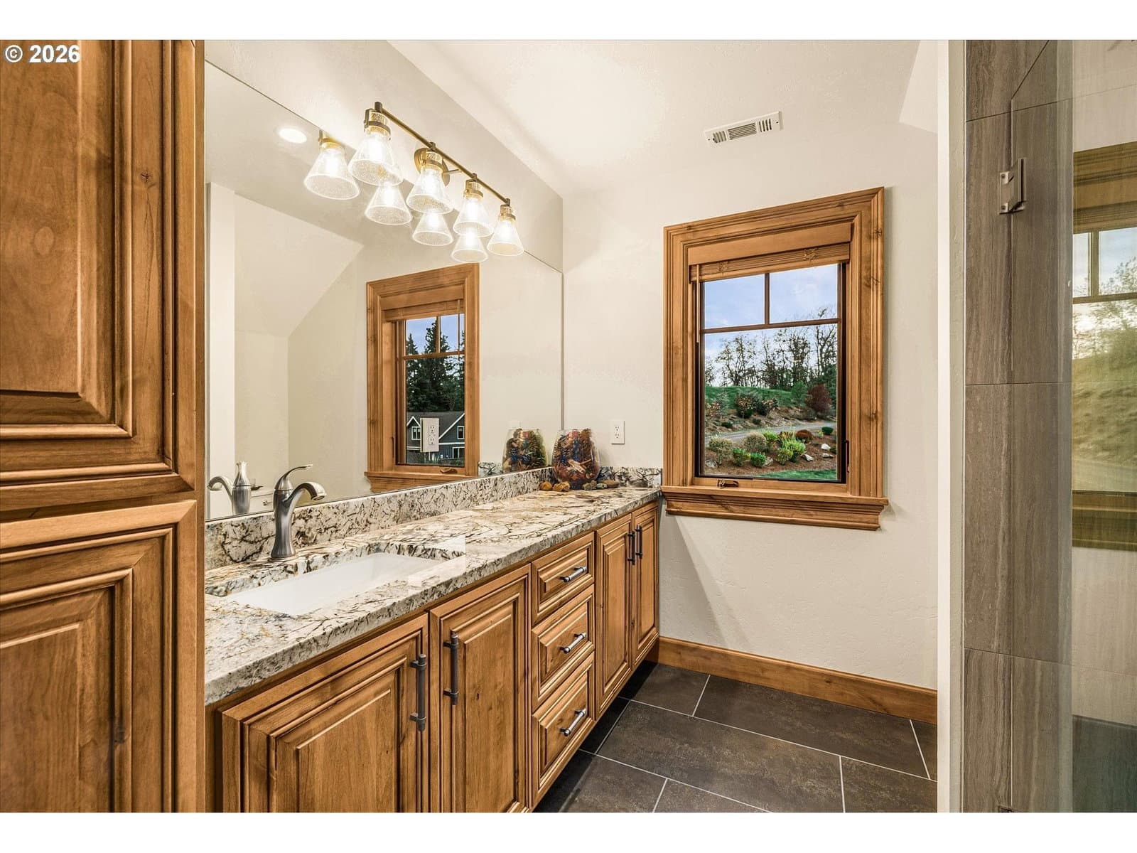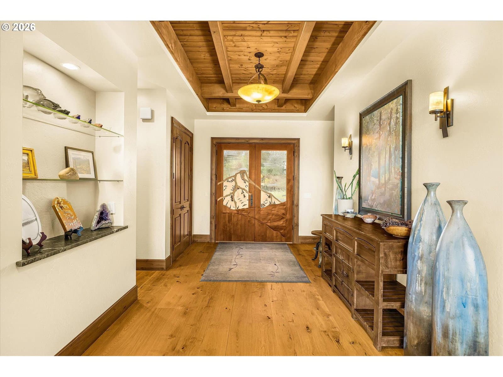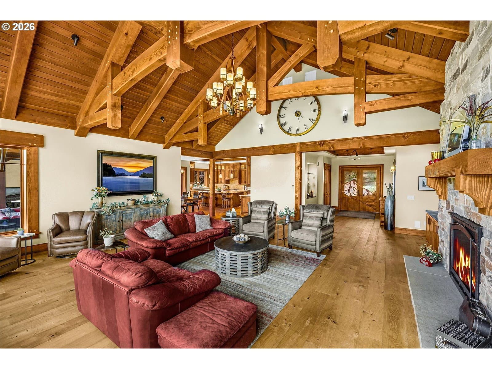 Luxury greenside living along the Indian Creek Golf course this beautiful 4 bedroom 4.5 bath custom built Craftsman home in the desirable Fairway Estates and the heart of the gorgeous Hood River Valley! Designed for easy, grand main -level living, this home features all primary living spaces and the primary suite on the main floor. Showcasing the highest quality and craftmanship and built to the nines! Features include a gourmet kitchen, Granite, Wolf gas range, Sub-Zero built-in Refrigerator, large island, recessed timber frame inset ceiling's, Knotty Alder cabinets, 12" window casings & trim, solid 8ft doors, and built-ins throughout. Solid fir Mortise and Tenon timber frame Vaulted living room w/ 12" Fir window casings & trim, Grand stone gas fireplace, wire brushed European white oak hardwoods, sound system throughout, heated tile floors in primary & secondary bathrooms, custom Artisan Mahogany Mt. Hood entry door, full security system w/camera's. Trifold slider to the large 32x32 covered patio w/sound system & outdoor kitchen, 50 year Hi-Def Presidential roof, cedar siding w/cedar T&G soffits, sprinkler system, 25x44 oversized 3 car garage, ICF foundation(Insulated Concrete Form) for exceptional heating & cooling efficiency, conditioned crawlspace, 18x26 storage/golf cart parking below. 3+ mile walking trail. Come enjoy the peaceful beauty of the Columbia River Gorge, Mt. Hood, and the Hood River Valley— where outdoor adventure awaits year round including hiking, biking, golfing, skiing, snowboarding, windsurfing, and more!!