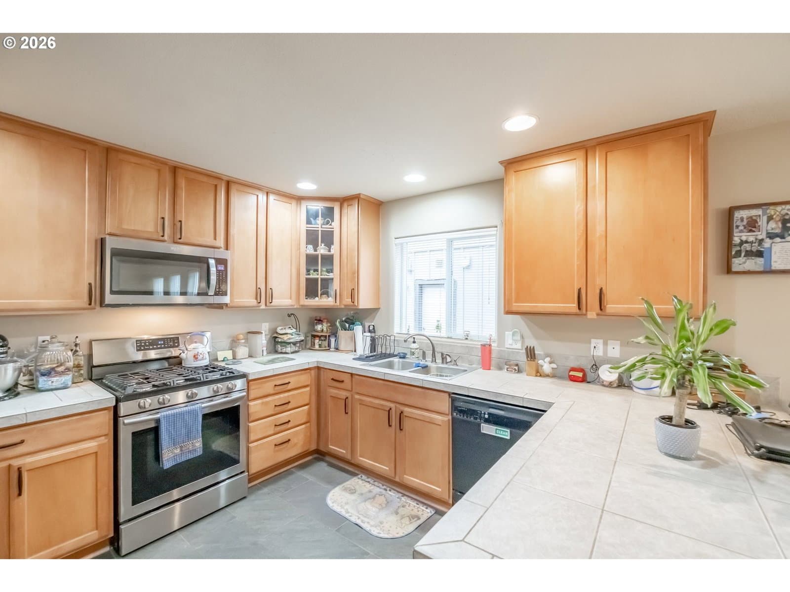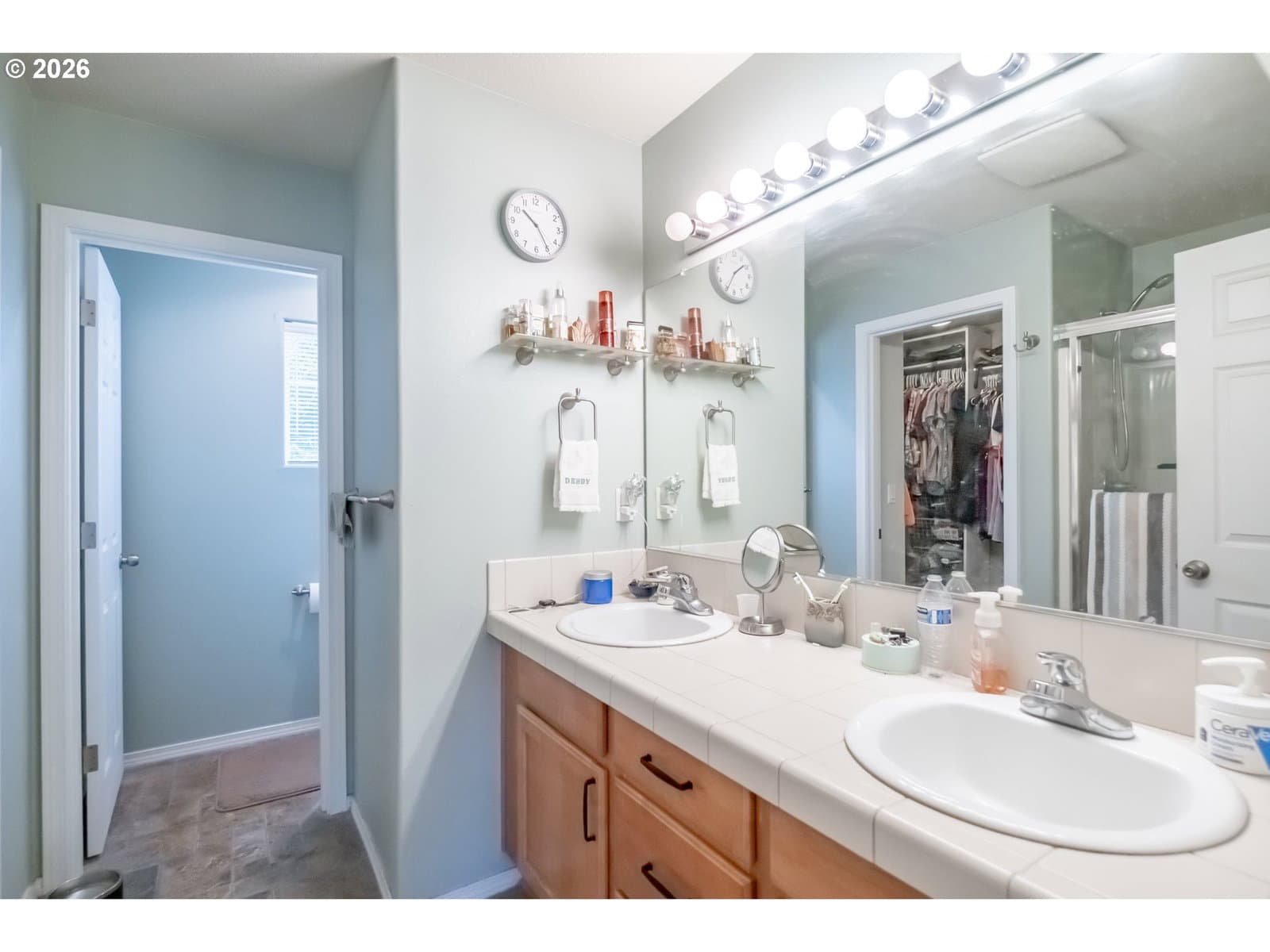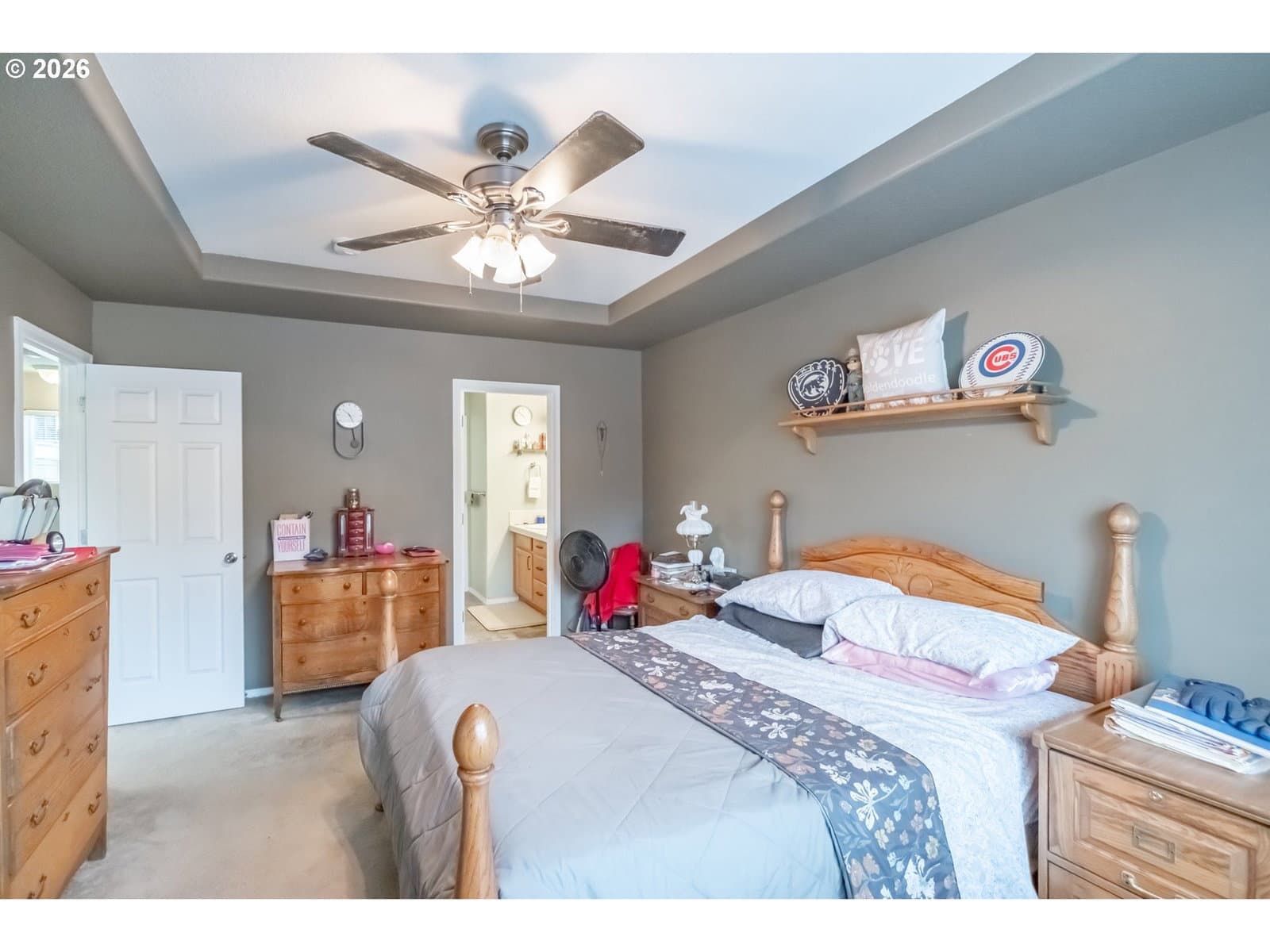 Set on a corner lot across from the neighborhood park, this charming home features a bright, open layout designed for easy living. The kitchen offers a convenient breakfast bar and flows into the inviting living room with a cozy gas fireplace. A slider from the dining area leads to the fully fenced backyard with a covered patio, perfect for year-round outdoor enjoyment. The primary suite includes a trayed ceiling, ceiling fan, dual vanities, and a spacious walk-in closet. Two additional bedrooms share a Jack-and-Jill bathroom for added convenience. With quick access to I-5 and a prime location within the Bridle Springs community, this home offers comfort, convenience, and great neighborhood appeal.