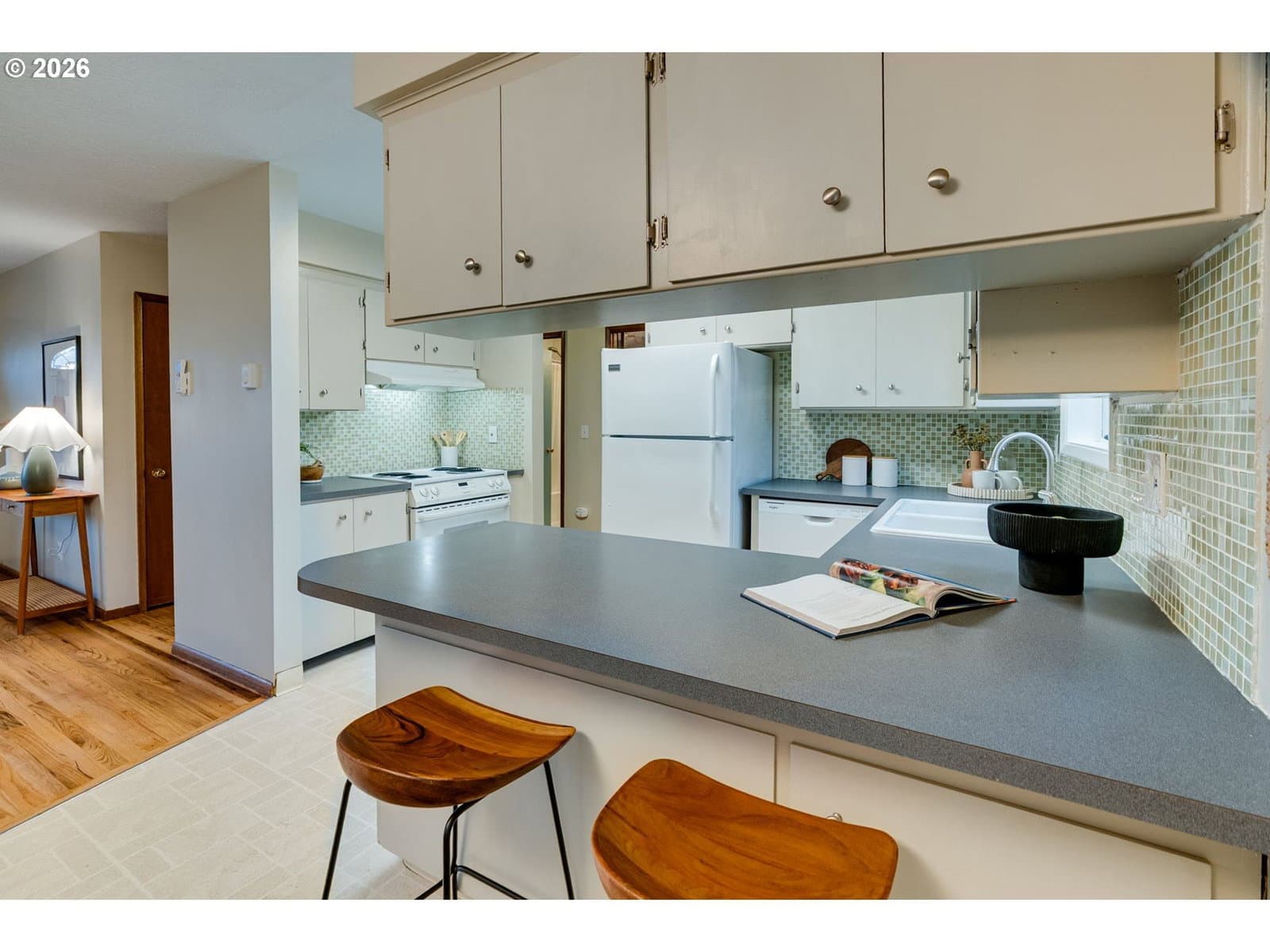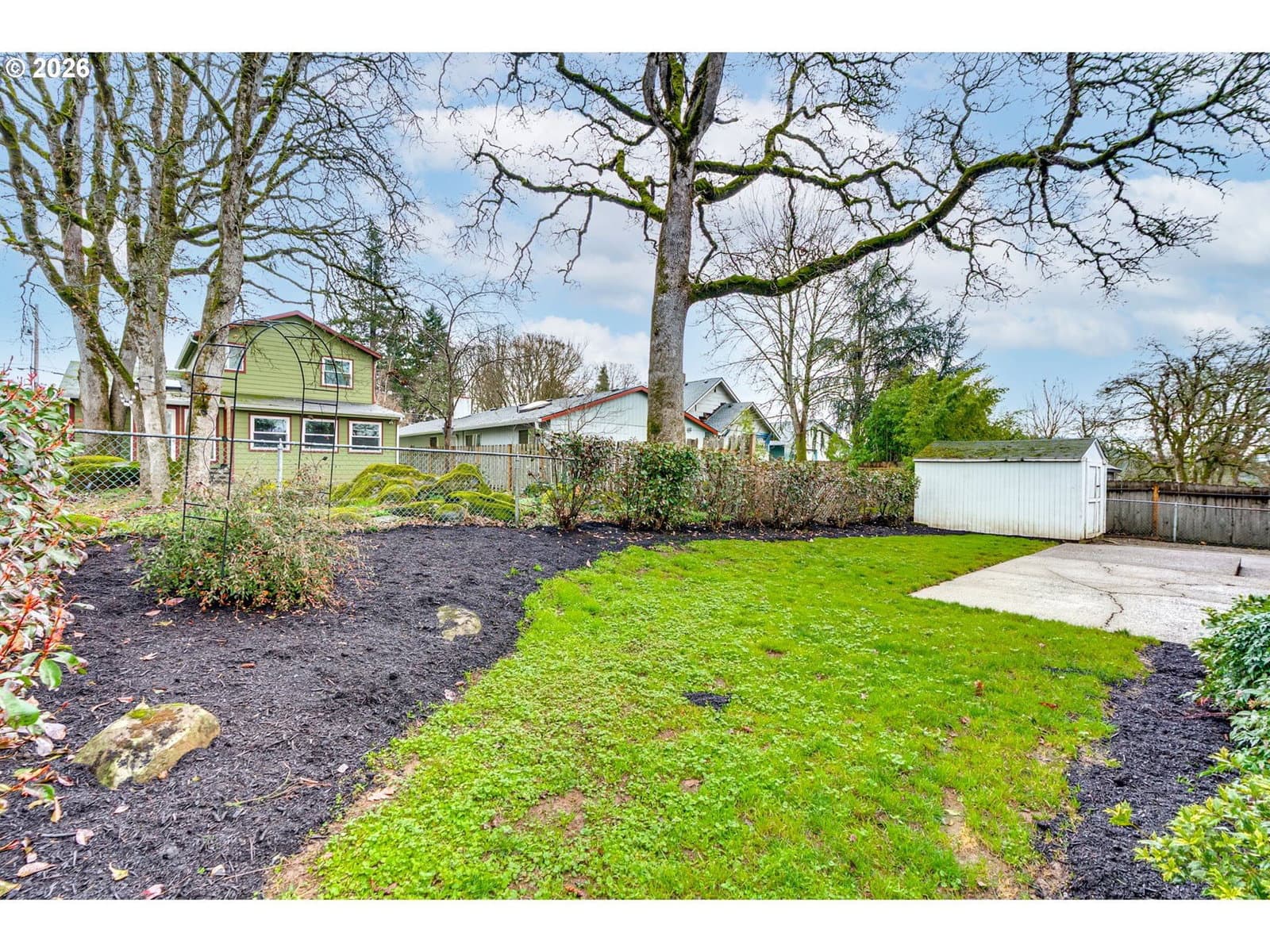 This darling one-level midcentury ranch in Gladstone is easy to love and even easier to live in. Set on a peaceful, tree-lined street, the three-bedroom, one and a half bath layout offers just the right amount of room to live comfortably. A wood-burning fireplace grounds the living room, opening to the dining area and kitchen for a layout that feels intuitive, cozy and practical. Large windows drench the main living space with natural light and three bedrooms are tucked away, including a full bathroom with double sinks and plenty of counter space. The layout makes the most of every square foot, ideal for a first home or anyone craving simplicity without sacrifice. Right off the dining area is a tidy and extra long one-car garage that offers more than just parking; it’s a great candidate for an art studio, workshop or seasonal bonus space, including a pull-down attic staircase with abundant storage overhead. Out back, the fully fenced yard is ready for summer evenings on the patio, gardening and letting pets roam. There’s also a parking pad with a carport, perfectly suited for a small adventure vehicle, a second patio or extra parking. Thoughtful systems updates include a newer roof, fresh exterior paint, updated electrical panel, PEX plumbing throughout and a mini-split for efficiency and ease. With quick access to I-205 and Hwy 99E, plus nearby riverfront trails, parks and green spaces, this home offers peaceful living with easy connection to Oregon City, Milwaukie and Portland proper.