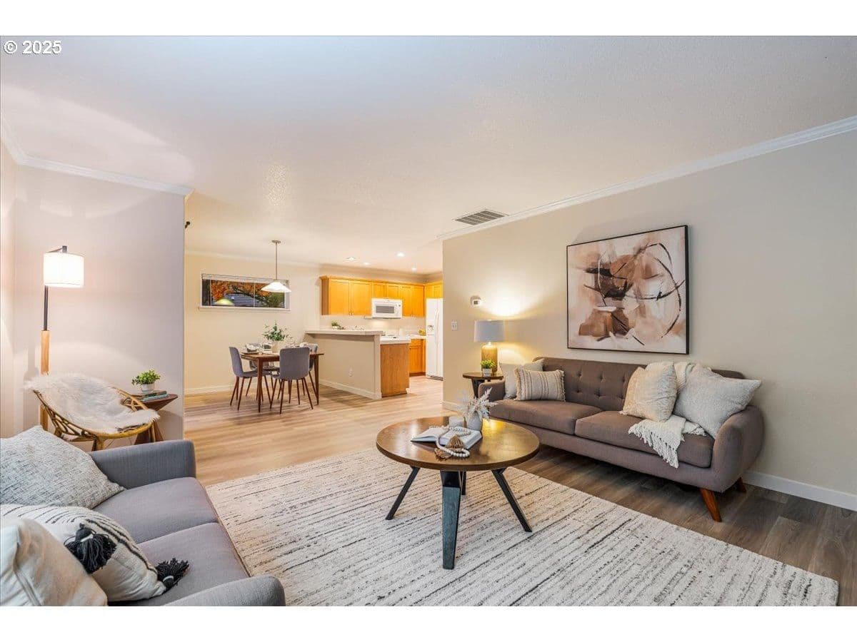 Move-in ready and full of updates, this beautiful 3 bedroom, 2.5 bathroom home sits proudly on a sunny corner lot in the highly desired Arbor Ridge neighborhood. Brand new roof, furnace, and AC unit plus new garbage disposal, new vapor barrier, and newer water heater (2023). New low maintenance luxury vinyl plank flooring, new bathroom vanities and toilets, and fresh interior paint give the home a clean and modern feel. The open-concept main level flows easily to a easy to manage fenced backyard with a patio, perfect for relaxing or entertaining. Upstairs you find the primary suite with great natural light along with a walk-in closet and private bathroom. Additional features include air conditioning, gas fireplace, and an HOA that maintains the front yard landscaping and neighborhood common areas. Enjoy a prime location with great schools that's close to Bethany Village, George W. Otten Park, trails, West Union Village, and Claremont Golf Course, with quick access to HWY 26, Intel, Nike, and Tanasbourne. A wonderful blend of comfort, convenience, and community.