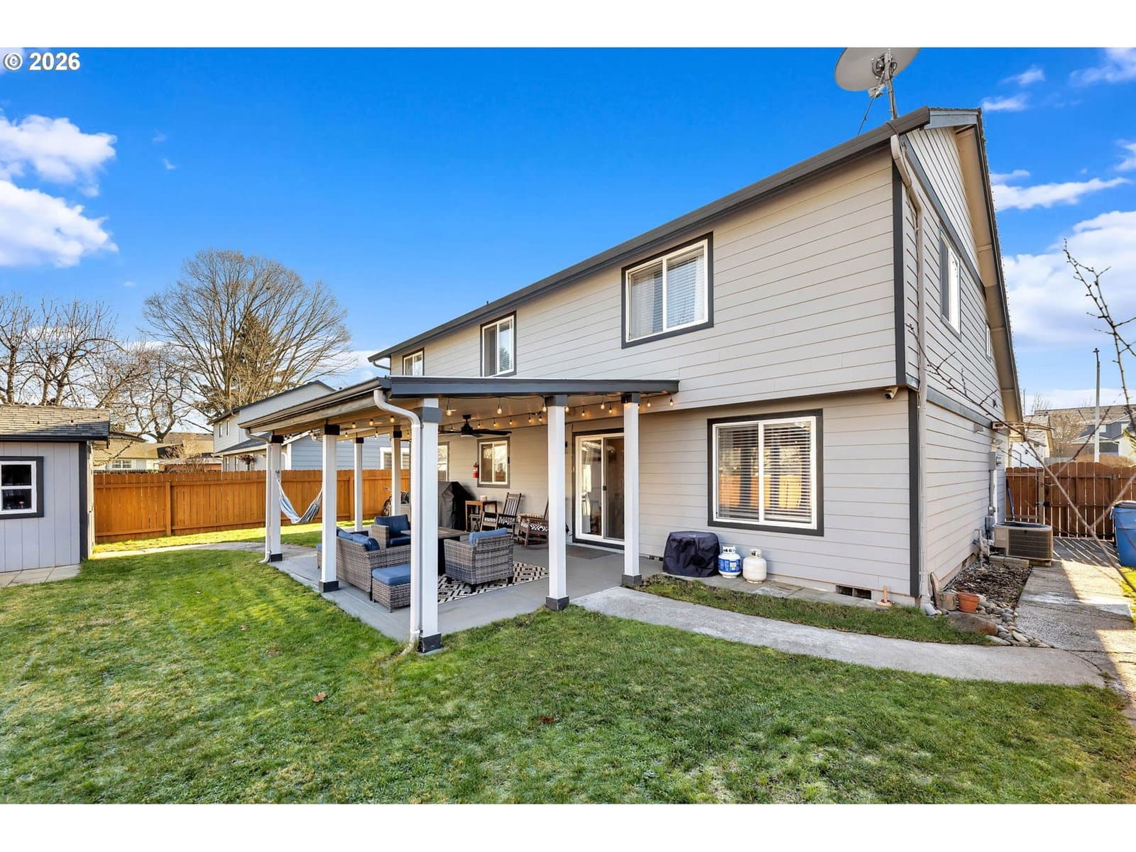 Welcome home to this beautifully remodeled home offering space, comfort, and standout outdoor living. With 4 bedrooms plus a dedicated office, this home provides flexible living for today’s lifestyle. Enjoy both a formal living room and a separate family room—perfect for entertaining or relaxing. The bright white kitchen features ample cabinetry, generous counter space, and an inviting layout that opens to the main living areas. The primary bedroom features a separate shower with a door and walk-in closet. Step outside to a truly exceptional backyard with an oversized covered patio—ideal for year-round entertaining—plus a fully fenced yard for privacy, play, and pets. Major updates include newer siding, providing peace of mind for years to come. A hard-wired security system adds an extra layer of comfort and safety. The two-car garage offers plenty of room for parking and storage. This move-in-ready home blends thoughtful updates with functional living spaces and an outstanding outdoor retreat! Located close to 28th and 18th St, you have easy access to I-205, the Portland Airport, shopping, entertainment and more! You do not want to miss out!
