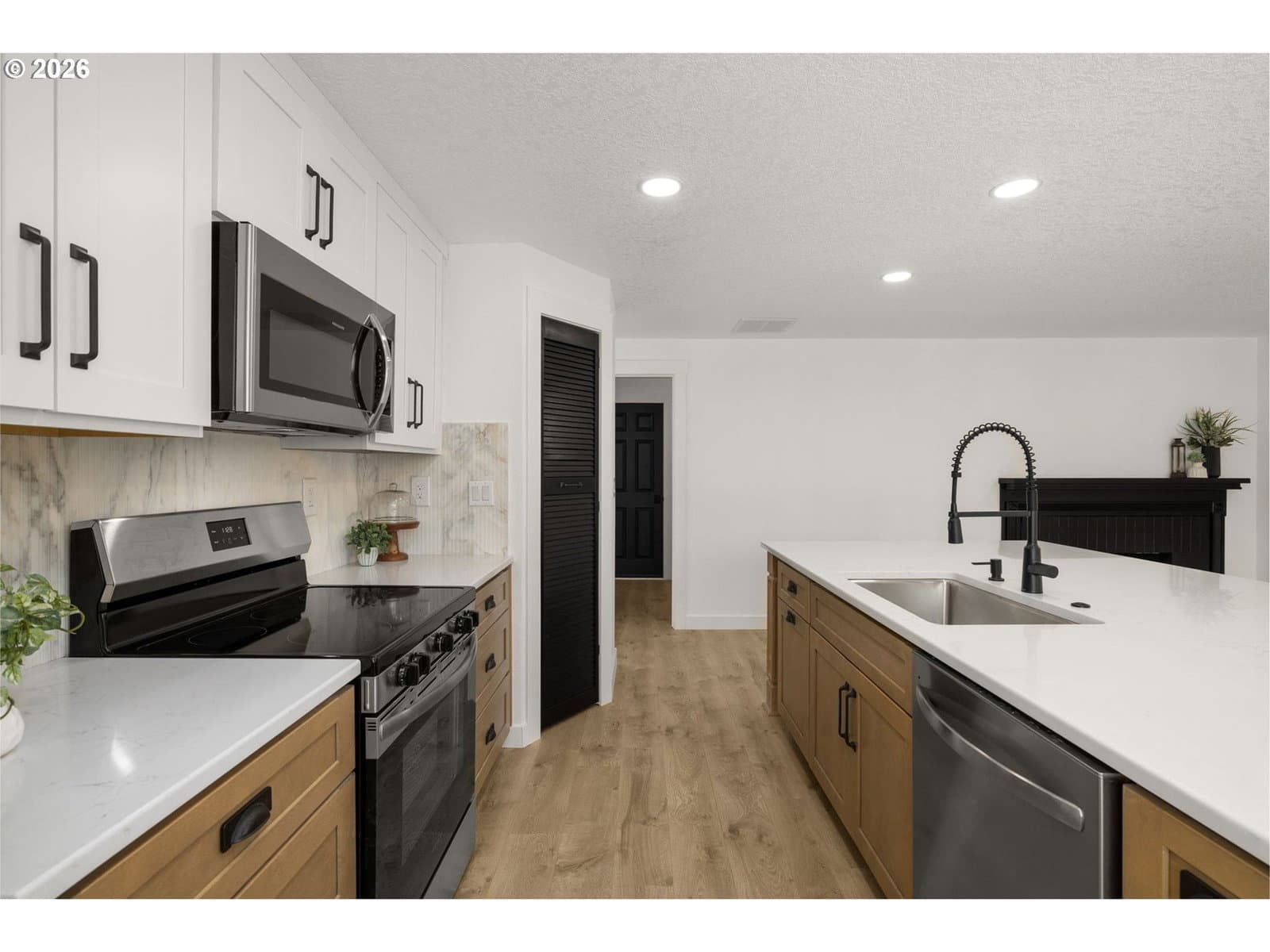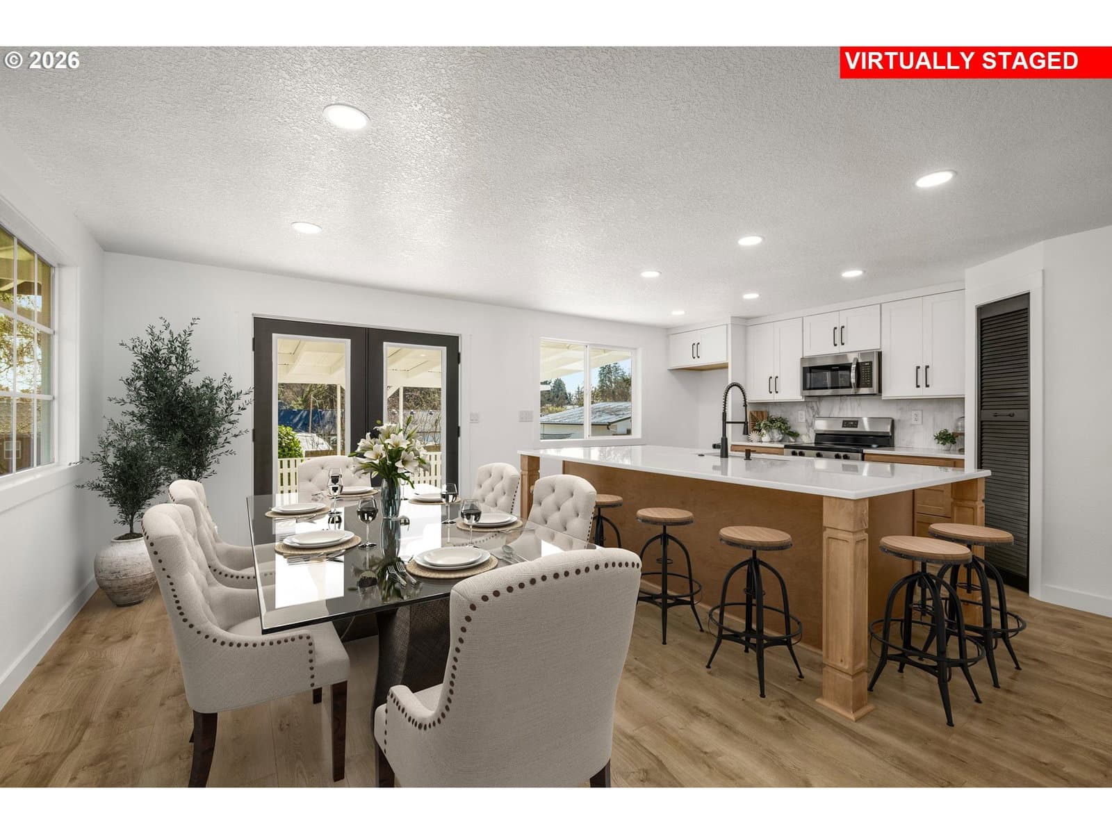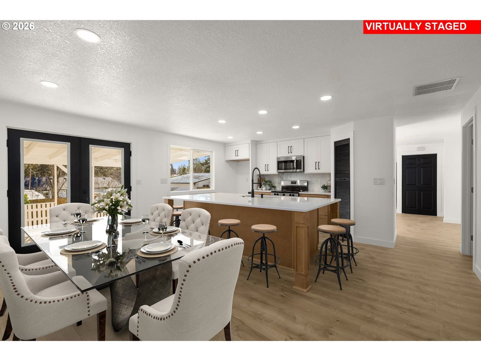 Step into luxury with this beautifully remodeled home, featuring high-end finishes throughout designed for modern living. NEW in 2025/2026: Roof, Furnace, AC, some vinyl windows, French doors, interior doors, Interior/Exterior Paint, Sewer, Backyard landscaping, flooring, Trim, Lighting and so much more. In addition... All new kitchen with new cabinets, quartz countertops, custom Marble backsplash, cabinet hardware, sink and faucet. All 3 bathrooms complete with new cabinetry, tile, backsplashes, mirrors, toilets, shelving, lighting and more. Every turn is an amazing surprise. Plush carpet flooring in all 4 bedrooms. Everywhere else has high quality hybrid flooring with a 20MIL wear layered and waterproof feature. Enjoy the spacious, open floor plan that creates a bright and airy atmosphere. This home combines comfort, style, and peace of mind with all the major updates already done. Whether you're hosting friends or enjoying a quiet night in, this home checks all the boxes. Just a few blocks from Somerset West Swim Center/Tennis courts/ playground park + local shopping and transit. Schedule your private tour today and make this dream home yours! Seller is a licensed Realtor in the state of Oregon.
