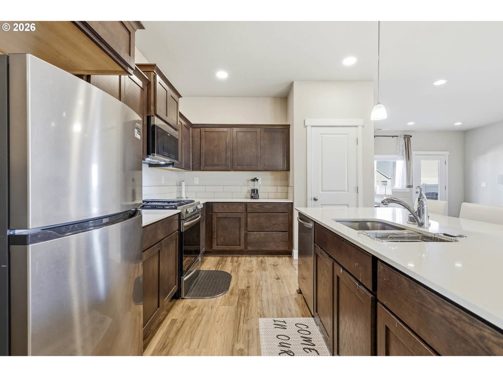 Welcome home! This move-in ready 1,468 sq. ft. single-level gem in the desirable Theater Park neighborhood is perfect for comfortable everyday living. With 3 bedrooms and 2 baths, the open-concept layout offers a spacious great room with a cozy gas fireplace, lots of natural light, and even a spot for a home office. The chef’s kitchen is sure to impress with quartz countertops, stainless steel appliances, pantry, island, and a 5-burner gas range, ideal for family meals or entertaining friends. The primary suite is a true retreat with dual vanities, a walk-in shower, and a roomy walk-in closet. Outside, enjoy a covered patio, fully fenced backyard, RV parking, and a 2-car garage. With modern finishes, quality construction, and a welcoming feel, this home has it all. Don’t miss your chance to make it yours! N/A