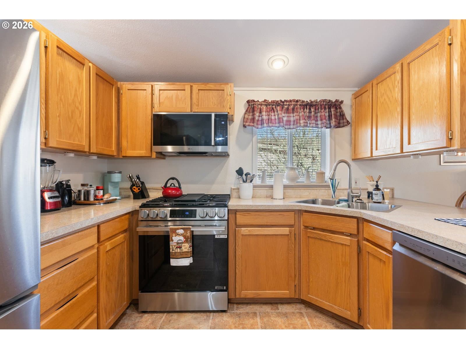 Dishwasher, Free-Standing Gas Range, Free-Standing Refrigerator, Microwave