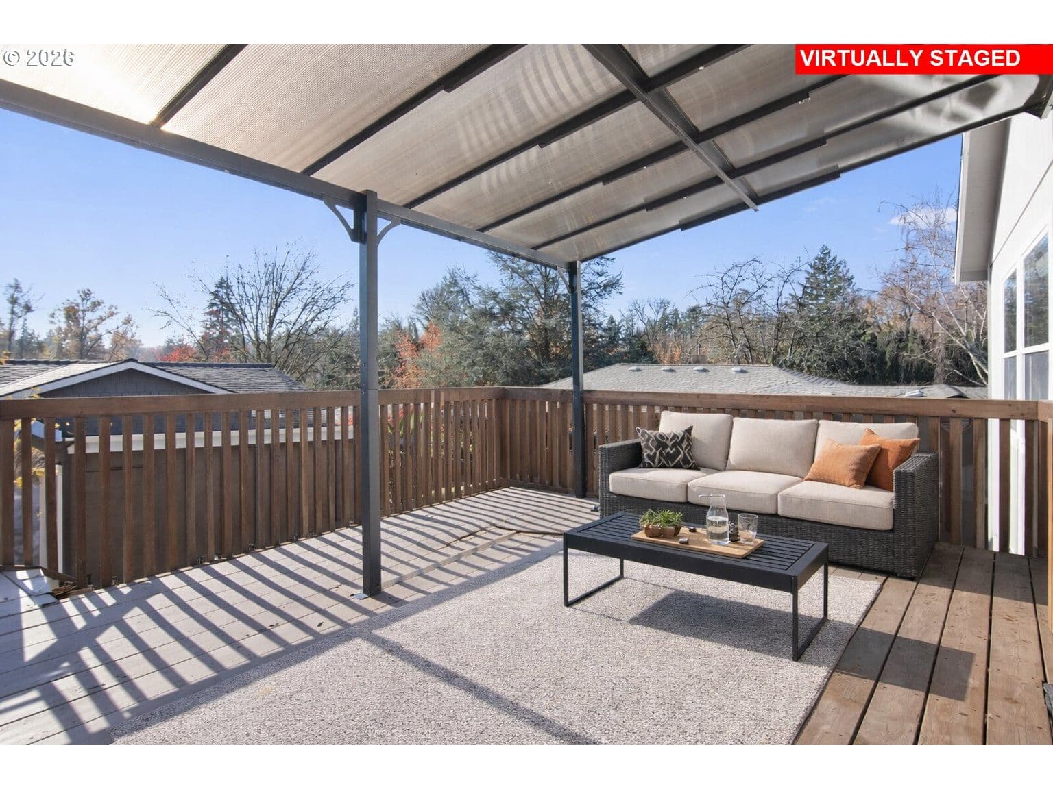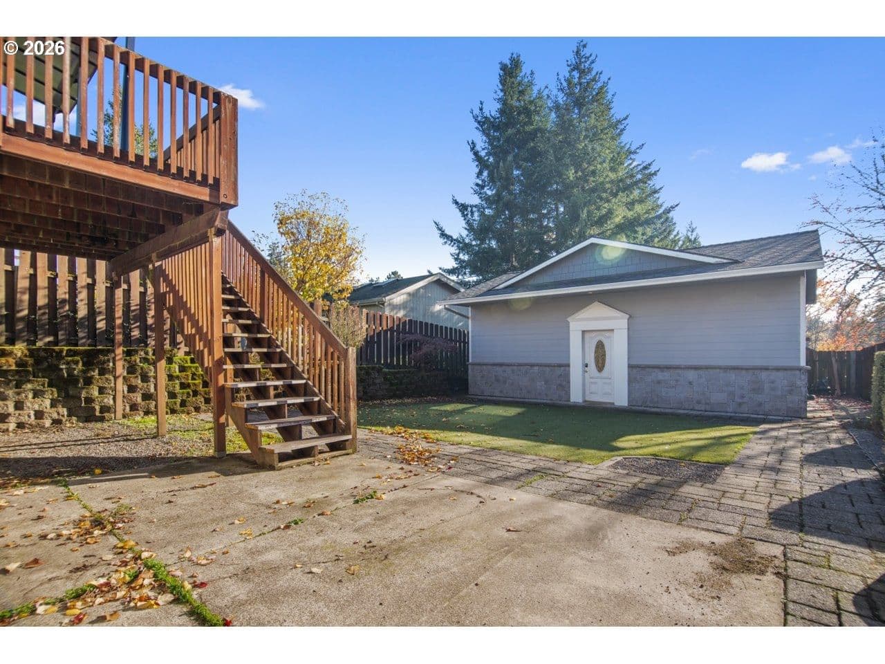 Home with ADU potential! Charming 3-bedroom, 1.5-bath home with a daylight basement and a new furnace and air conditioner installed in 2022. The main level offers an open-concept living, dining, and kitchen area that flows seamlessly to a covered deck overlooking the backyard—perfect for entertaining or quiet evenings at home. Downstairs features additional flexible space with direct yard access. The 638-square-foot detached shop includes water, sewer, and electricity, plus a covered parking area and a separate driveway for convenient access. The shop offers excellent potential for future use; buyers to perform their own due diligence regarding possible conversion to living space or ADU. Enjoy a prime Gresham location just one block from the Springwater Trail, with easy access to nature parks, schools, and amenities.