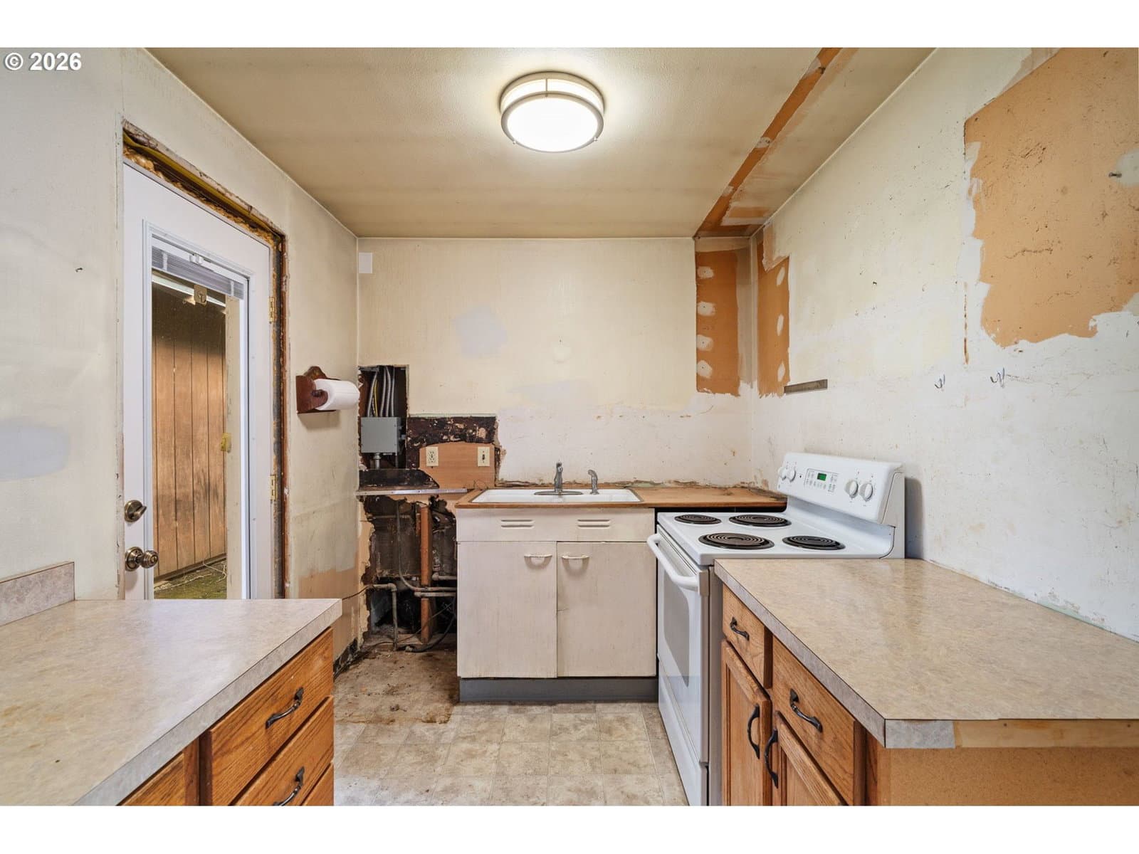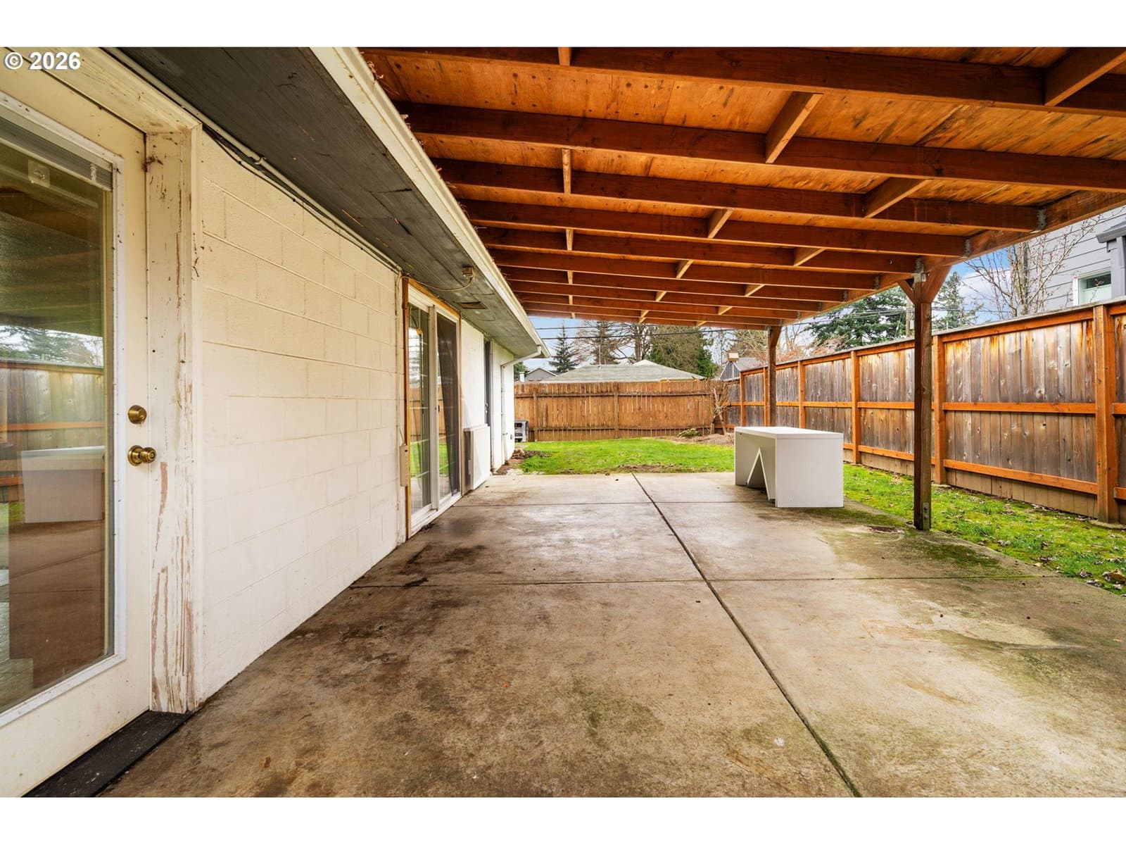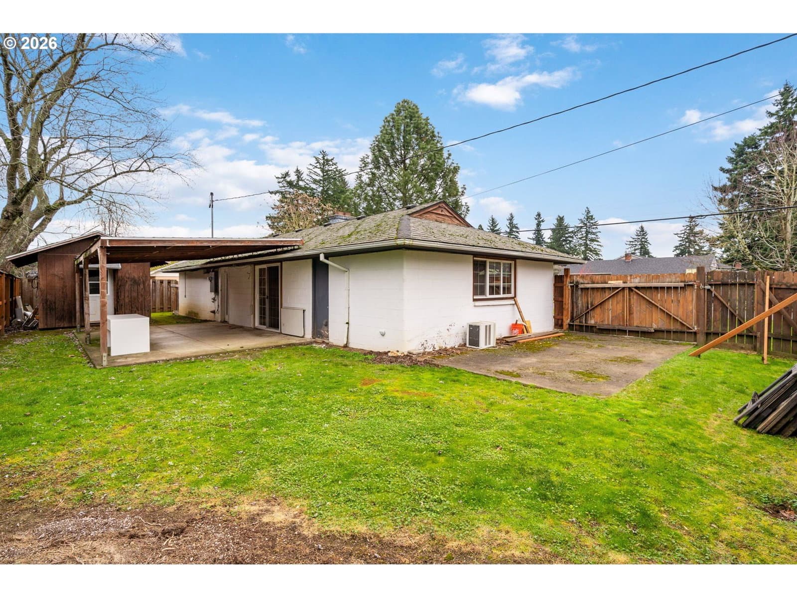 Reimagine your own 1950s ranch near Rocky Butte! This single-level sweetheart sits on a generous corner lot just a block from charming Hancock Park. Open living area and dining room with slider out to the covered patio and fully fenced backyard. Kitchen is demoed and ready for your vision. Updated electrical. Two bedrooms, plus a versatile den. Shed in the backyard for all your hobbies and storage. Convenient location with access to I-84, I-205, and Rose City Golf Course. With a little creativity this place will sparkle! [Home Energy Score = 3. HES Report at https://rpt.greenbuildingregistry.com/hes/OR10243975]