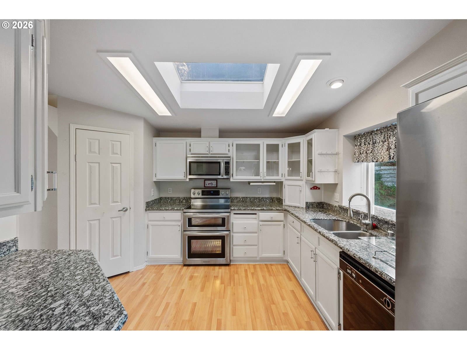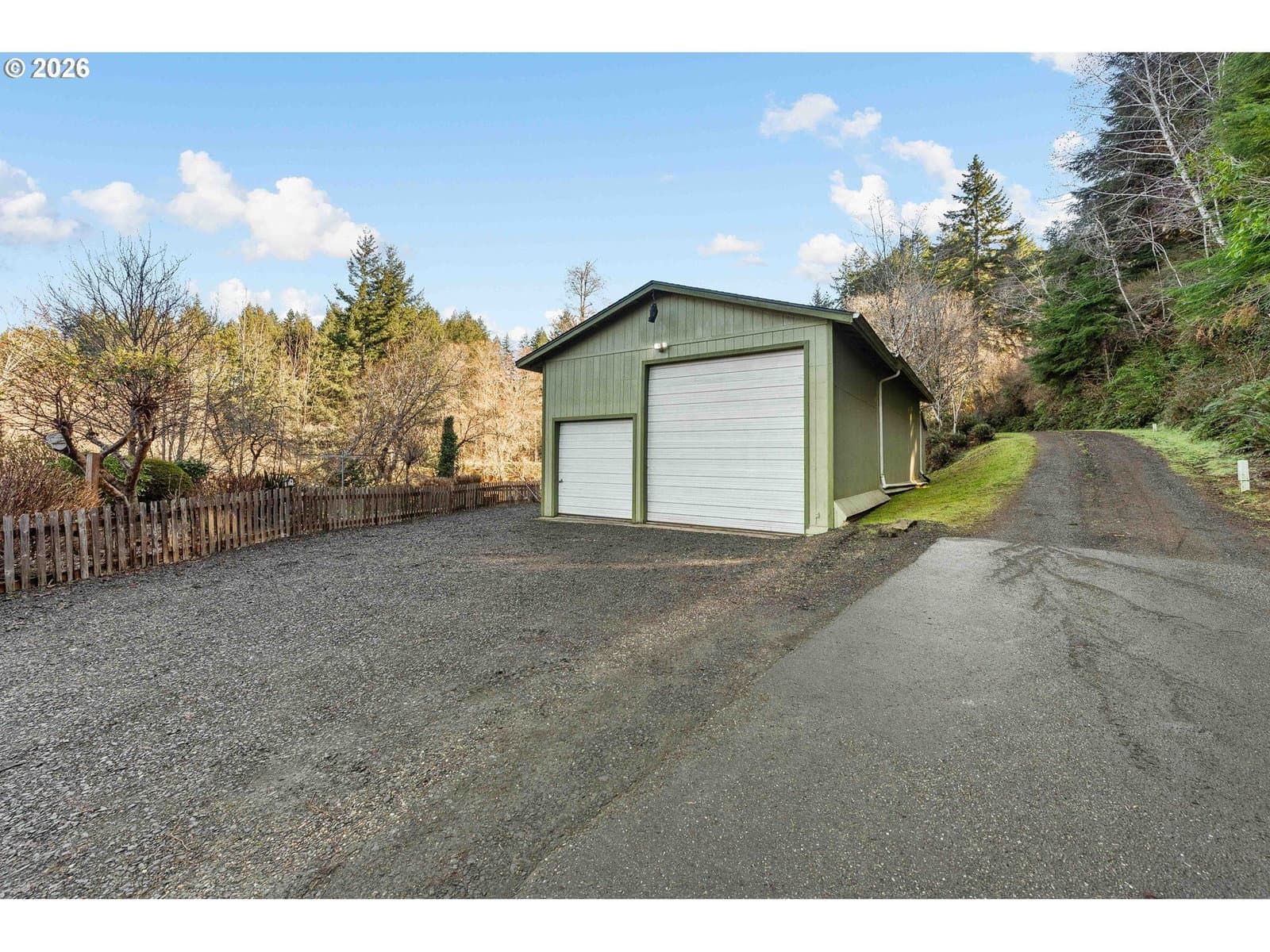 Priced to sell and DEFINITELY A MUST SEE BEAUTIFUL HOME with BREATHTAKING VIEWS! This beautifully maintained 1,512 sq. ft. double-wide manufactured home offers two bedrooms with an easy conversion to a third bedroom or den (currently used as an office). Pergo, tile, and laminate flooring are featured throughout the home, complemented by high ceilings, skylights and a welcoming covered entryway. The spacious primary suite includes a walk-in closet, garden tub, walk-in shower, and private access to the wraparound deck ideal for taking in the stunning views of the North Bend Bridge and the beautiful Bay along with a view of Kentuck Inlet. The kitchen is thoughtfully designed with granite countertops, a double oven, built-in microwave, ample pantry space along a charming coffee nook perfect for enjoying your morning beverage. Step outside to the expansive wraparound deck, perfect for sunrise coffee or evening sunsets and enjoy the fully fenced backyard offering privacy and outdoor space. This property also features an impressive approximately 24’ x 36’ detached 2 bay shop with power, concrete flooring and an approximately 15-foot-high garage door ideal for RV parking, additional vehicles, or hobby use along with the 2 car garage attached to the home. Lower yard is perfect for family gatherings. Build a fire and enjoy! With stunning views from the deck in both the mornings and evenings, this home delivers comfort, functionality and scenery in one exceptional package.
