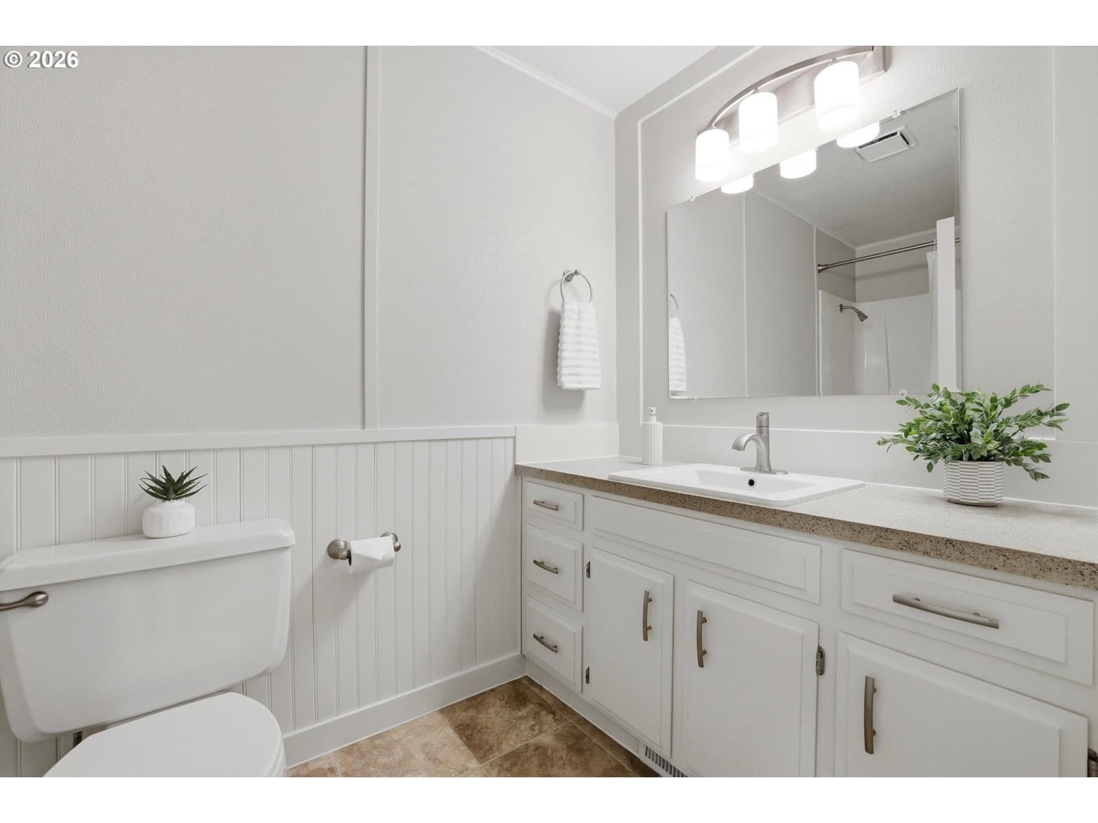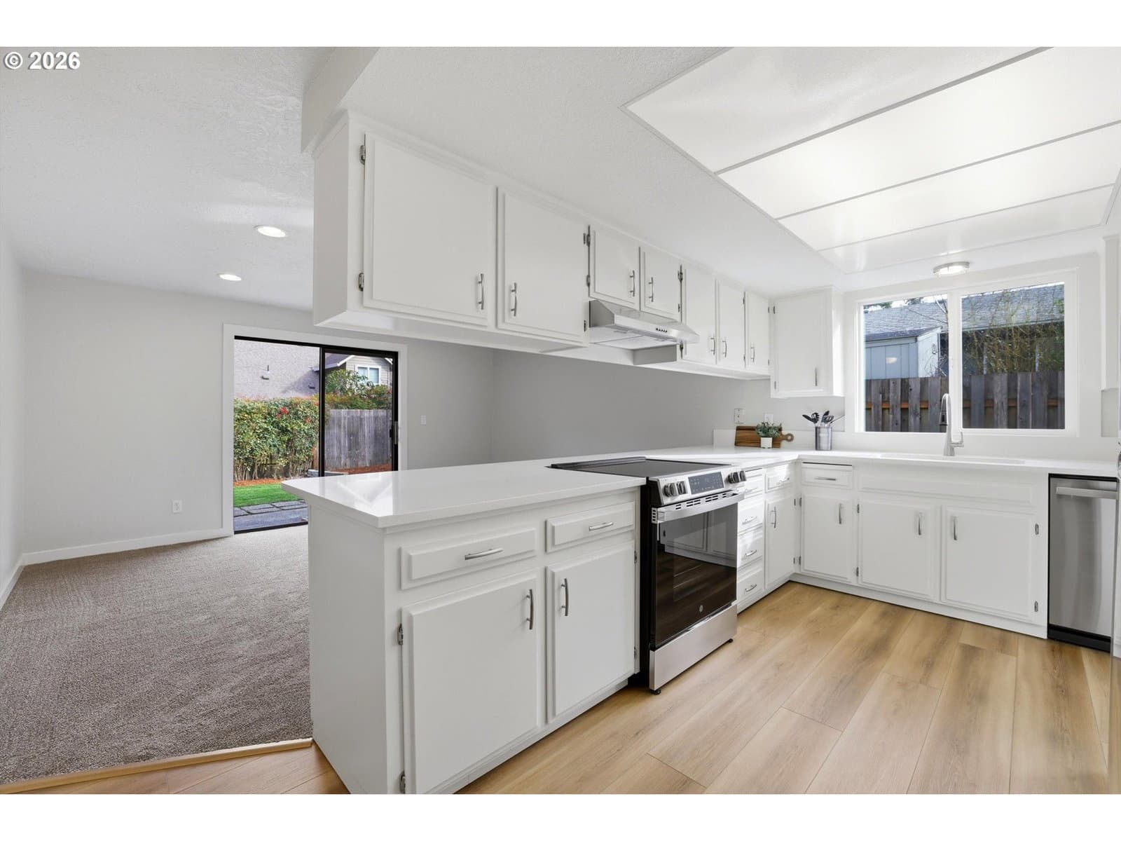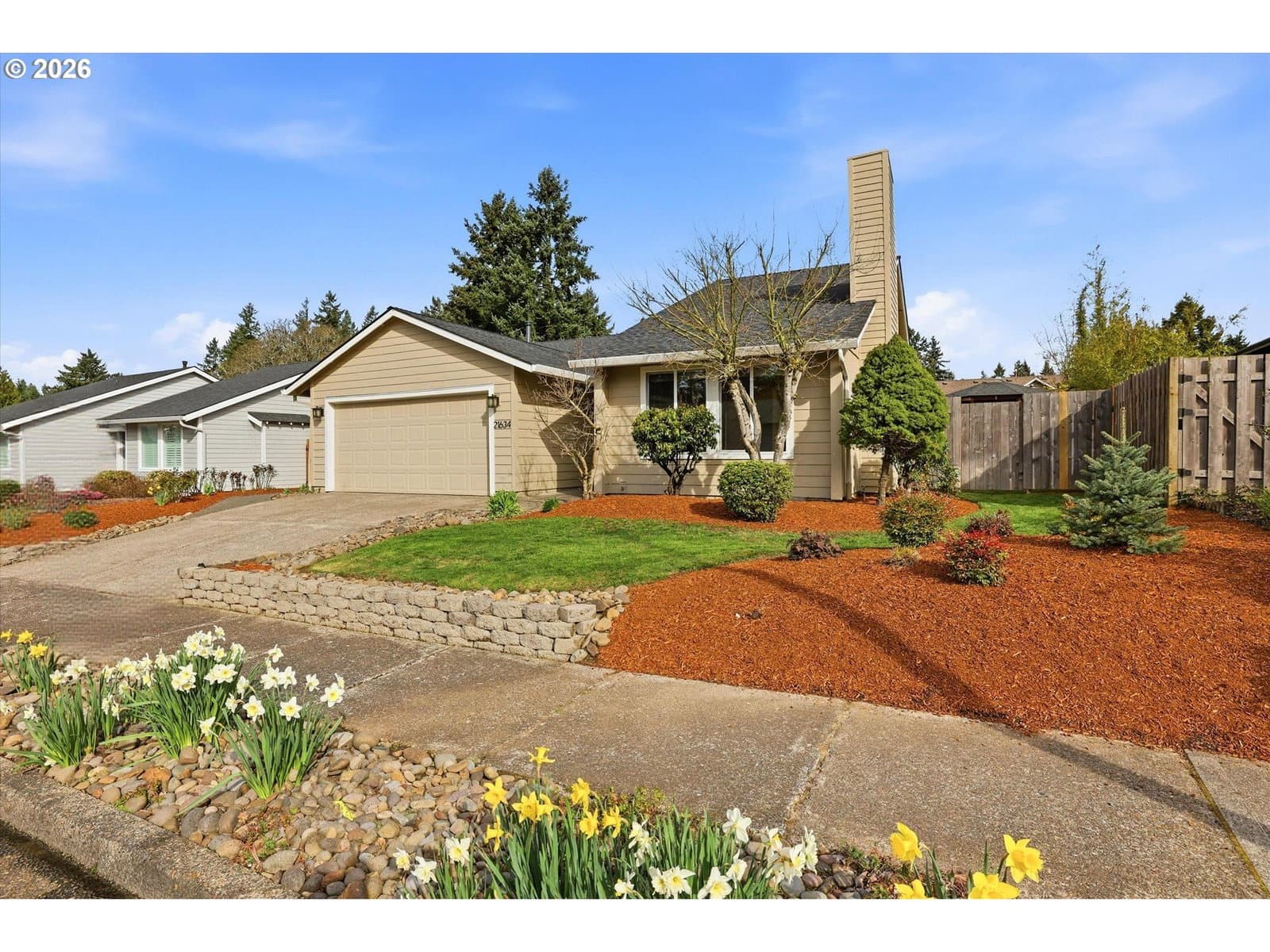 Turn-key one-level living in a desirable Tualatin neighborhood. This thoughtfully improved single-level home offers modern comfort, smart upgrades, and an ideal layout for first-time buyers or those looking to downsize without compromise. Inside, you’ll find a flowing floor plan featuring a welcoming living room and a separate family room that opens directly to the backyard—creating seamless indoor-outdoor living. The kitchen serves as the heart of the home with stunning quartz countertops, a beautiful eating island, new range and dishwasher installed in 2026, and an updated refrigerator in 2023, blending function and style. New luxury vinyl plank flooring and carpet installed in 2026, along with fresh interior paint in 2026 and 2022, enhance the main living areas, while select rooms were freshly recarpeted in 2022, adding comfort and a fresh, modern look throughout. Interior trim, doors, faucets, sinks, and door hardware were tastefully updated in 2022, elevating the home’s cohesive, modern aesthetic. The spacious primary suite offers comfort and privacy, complete with its own ensuite bathroom, while the versatile layout makes everyday living easy and efficient. Recent updates provide both style and peace of mind, including a new roof, vapor barrier, drainage system, and sump pump completed in 2024; new windows in 2022 with the primary bedroom window replaced in 2019; front siding and exterior paint, air conditioning, and water heater replaced in 2022; earlier siding work with exterior paint and chimney updates completed in 2008; and a furnace installed in 2004. Combined with the recently modernized kitchen and flooring, this home is truly move-in ready. Outside, the level backyard features a charming gazebo, raised flower beds, & plenty of space to relax, garden, or entertain. Located in a highly desirable Tualatin neighborhood near parks, shopping, dining, & easy freeway access—with no HOA—this home delivers comfort, convenience, and a seamless living experience.
