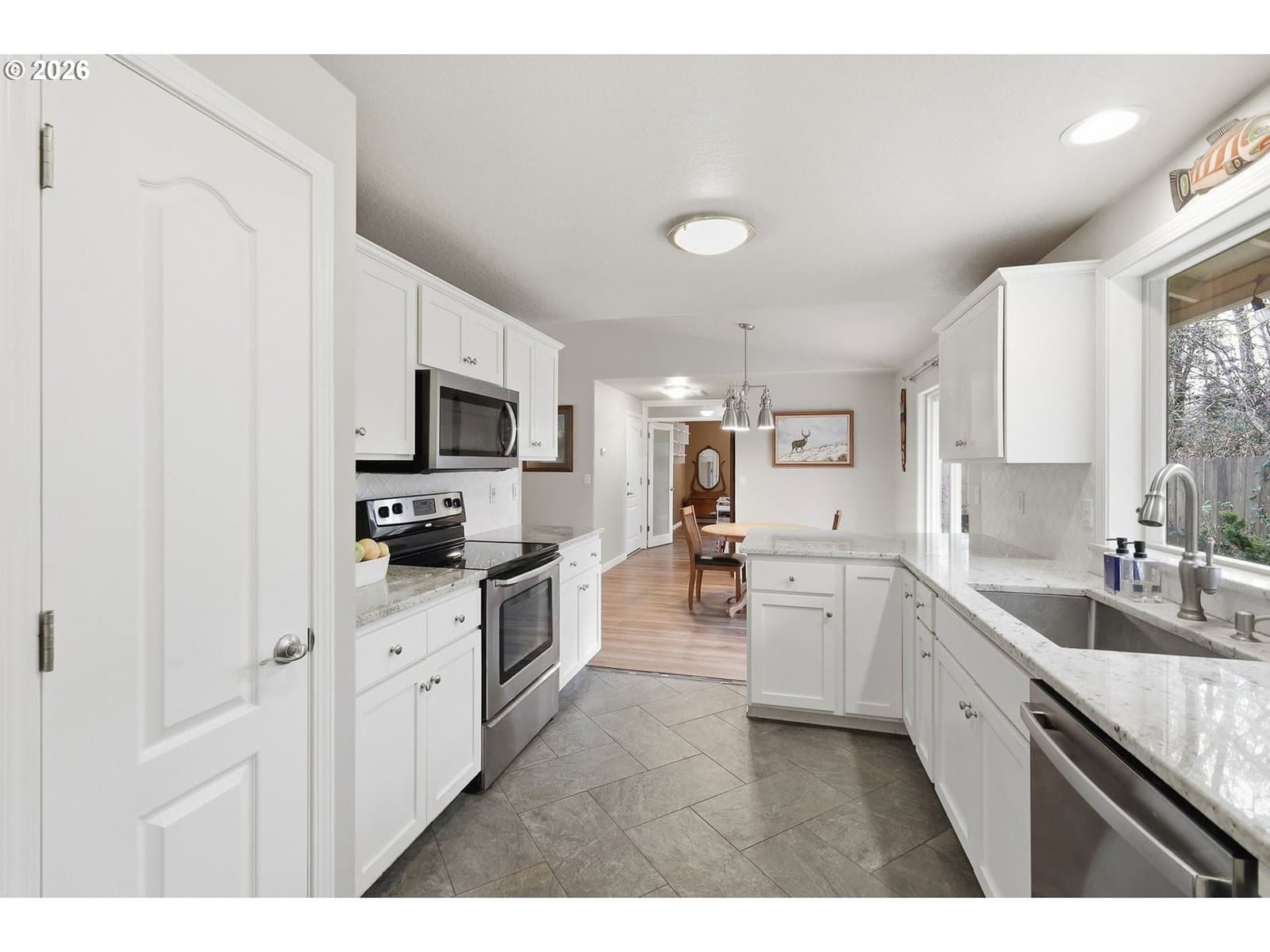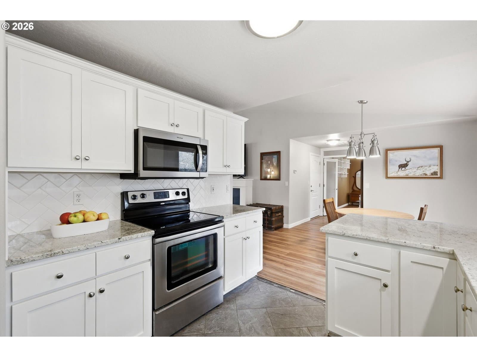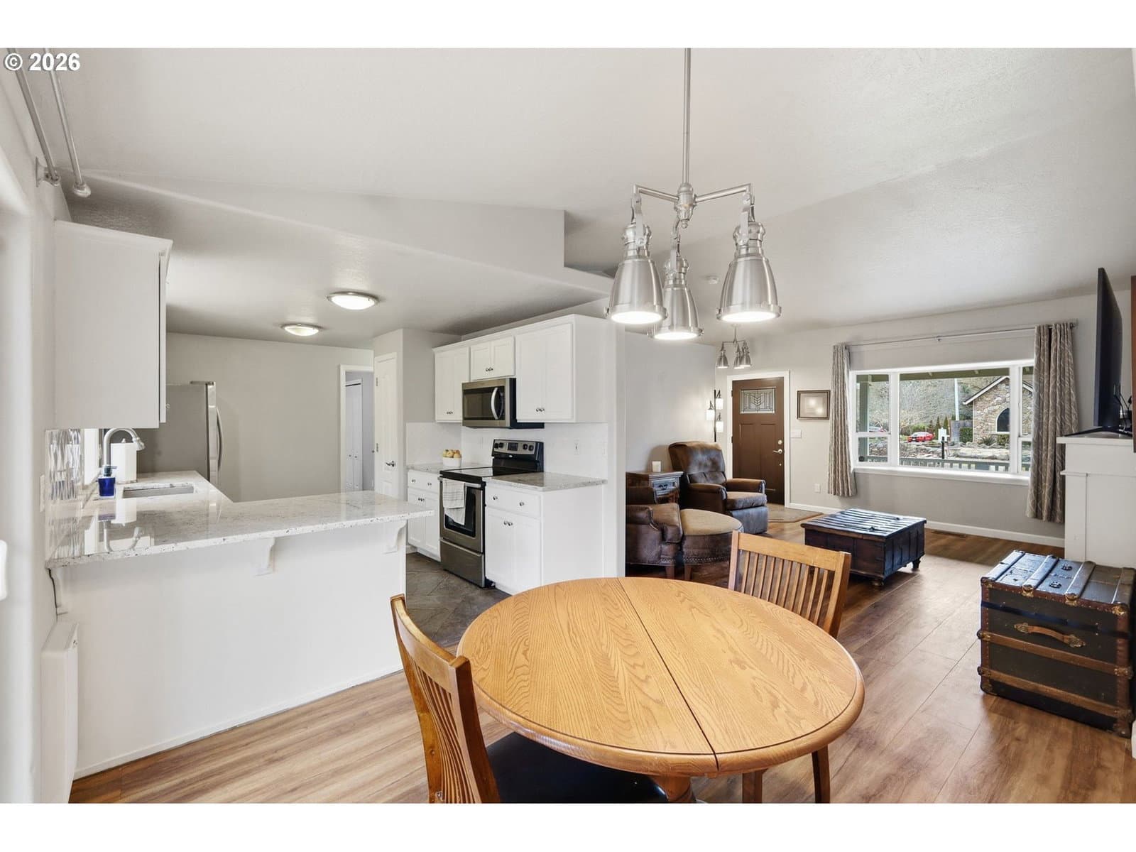 Welcome home to comfort, convenience, and easy Oregon living in the charming community of Veneta! This well-maintained one-level home offers 1,400+ square feet of thoughtfully designed living space with an open floor plan and vaulted ceilings that create a bright, spacious feel throughout. Featuring 3 bedrooms plus a versatile office/bonus room—perfect for working from home, hobbies, or guest space—the smart layout provides excellent separation of space while maintaining seamless flow for everyday living and entertaining. The kitchen features granite countertops, stainless steel appliances, and ample workspace, making it both stylish and functional. Granite countertops continue into the bathrooms for a cohesive, upgraded finish. The primary suite includes a walk-in closet and a private ensuite bath with a walk-in shower. Recent updates bring peace of mind and modern appeal, including new laminate flooring (2024), a new dishwasher and microwave (2025), and a brand-new 30-year composite roof (2025). The sale includes the refrigerator as well as the washer and dryer—making this home truly move-in ready.Step outside to enjoy a fully fenced backyard with RV parking, ideal for outdoor enthusiasts or those needing extra space for toys. Located in a quiet neighborhood just 5 minutes from shopping, restaurants, and the local library, this home also offers quick access to recreation—only 10 minutes to Fern Ridge Reservoir and just 45 minutes to the stunning Oregon Coast.Enjoy small-town charm with convenient access to everything you need—this is the perfect place to call home!