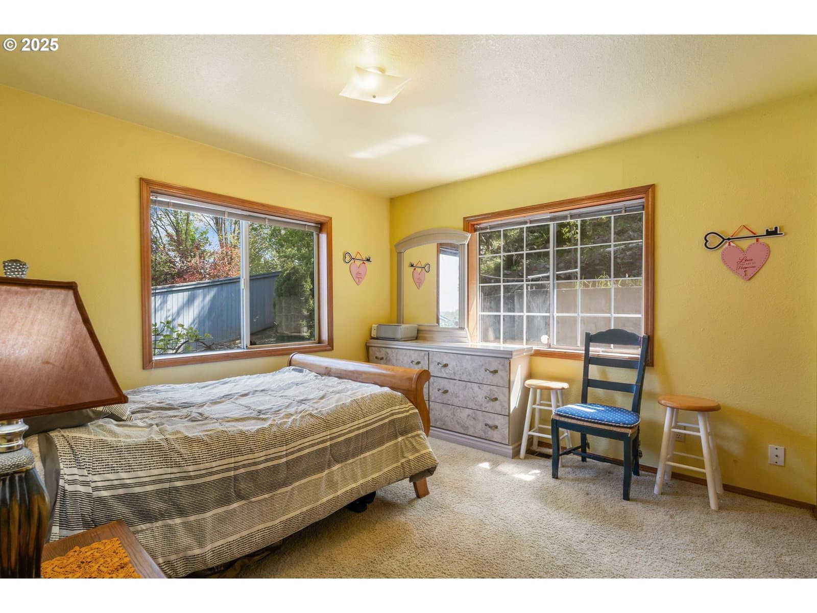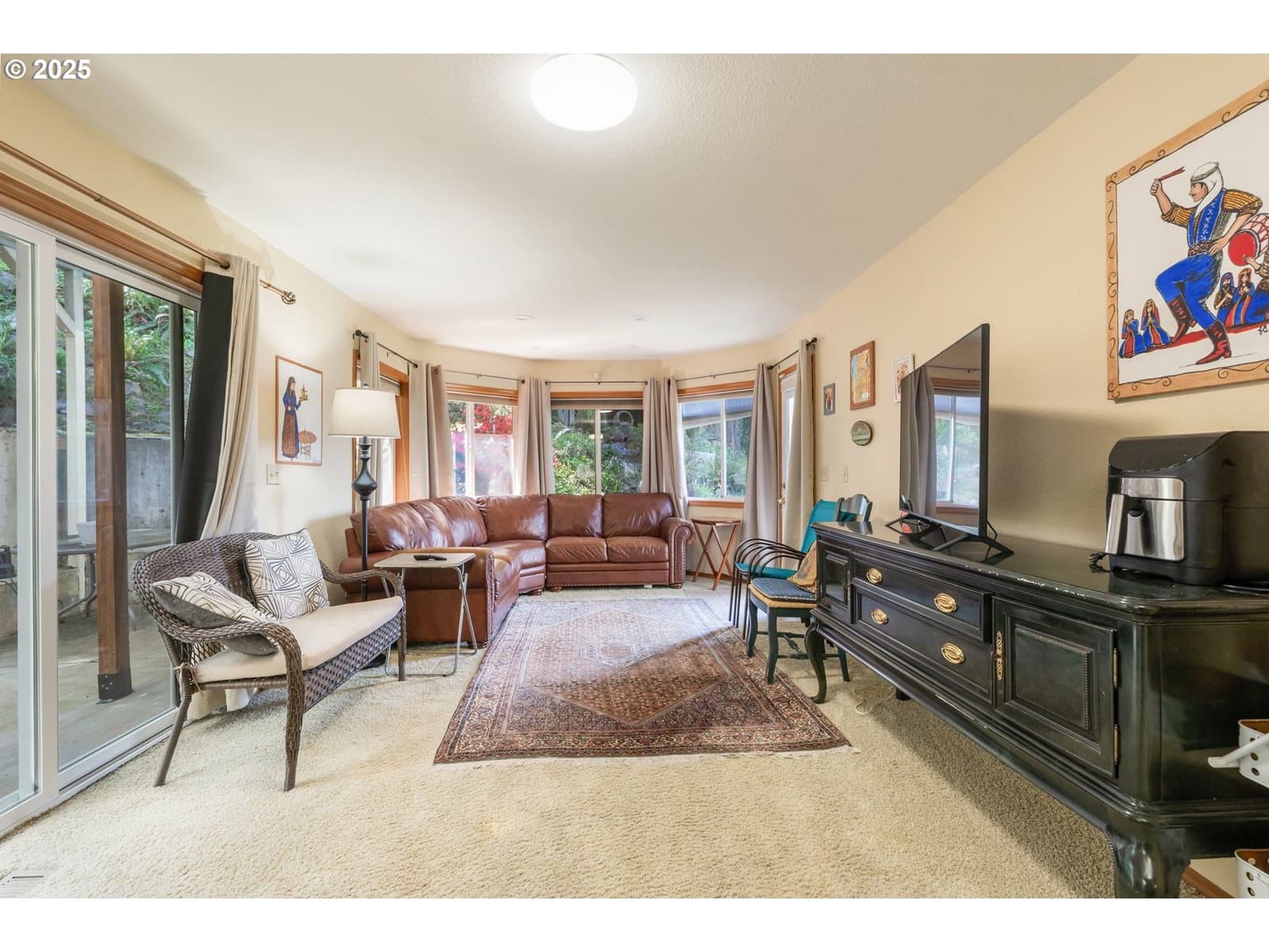 Great home tucked away at the end of a cul-de-sac and sitting up on the hill to allow for incredible light and beautiful 180 degree views. Well-cared-for, one owner home close to shopping and freeway, yet quiet with a feeling of being out of town. Main floor living offers a large living room/dining room combination with windows taking advantage of the views all the way to downtown. Three ample good sized bedrooms, a well laid out and functional kitchen with additional eating area, and separate family room make this a flexible floor plan for the new owner. Outside you'll find a private patio space, a nice yard to relax, garden, or take in the views, as well as some unexpected trails that take advantage of the oversized lot that backs to greenspace. Enjoy the Foster Floodplain Natural Area just minutes away and easy access to shopping, hospital system, and freeways! [Home Energy Score = 5. HES Report at https://rpt.greenbuildingregistry.com/hes/OR10237754]