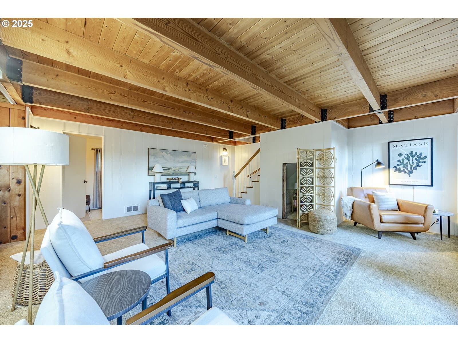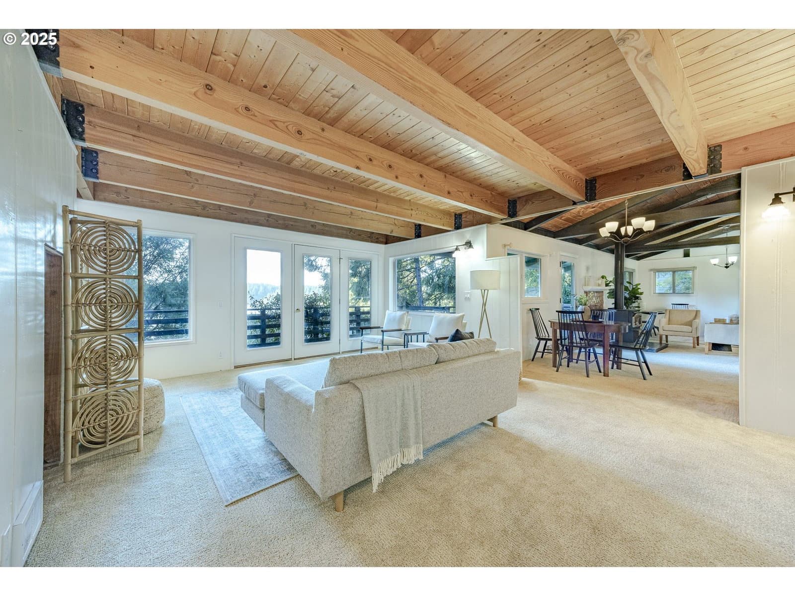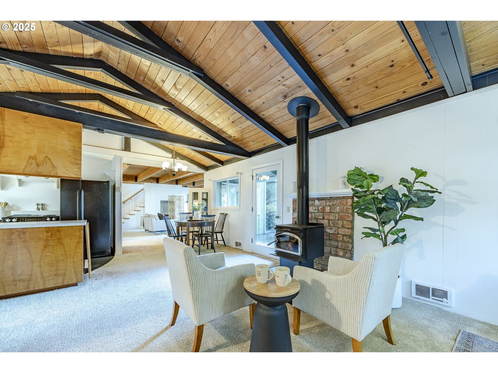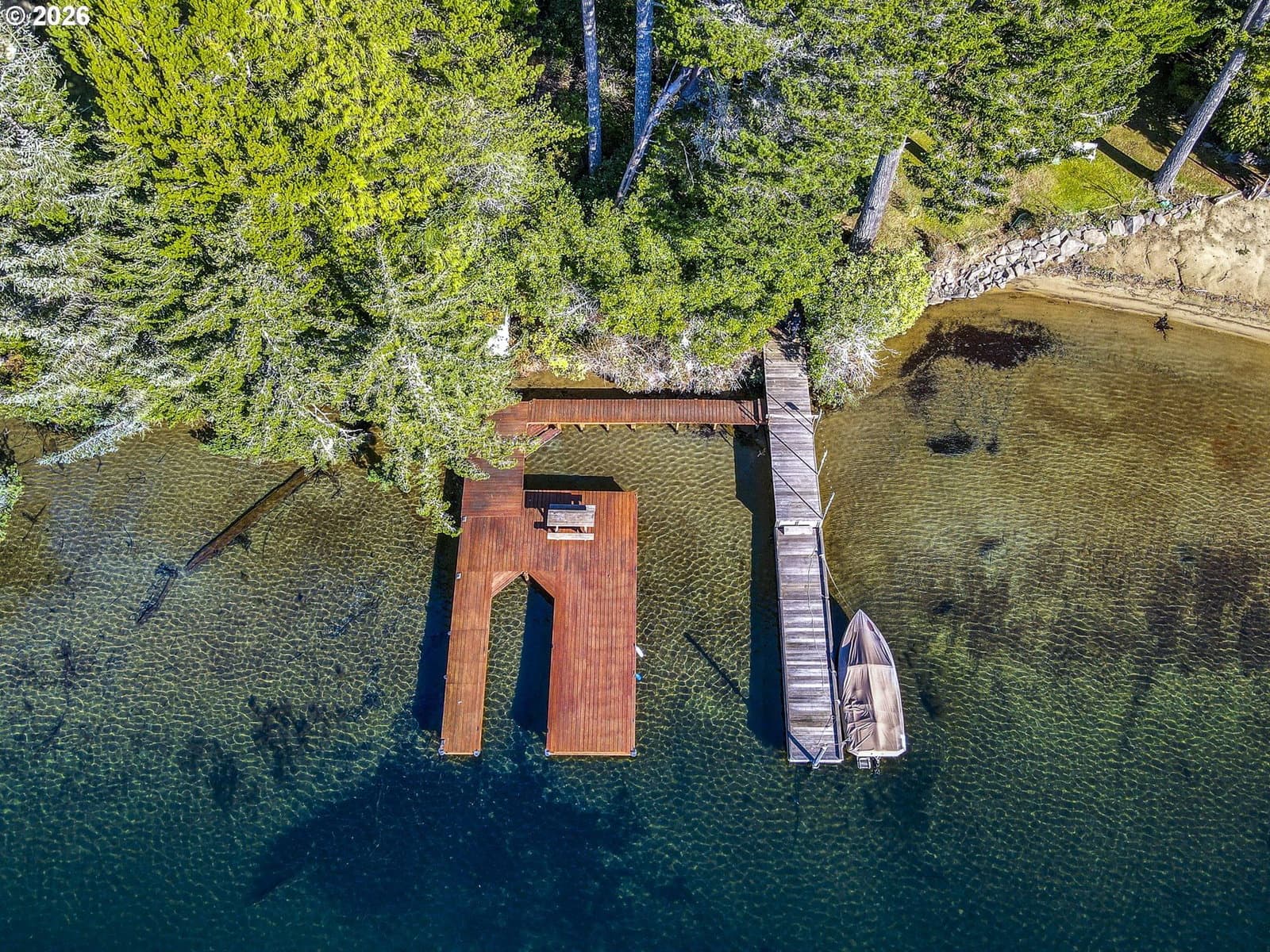 Wake up to lake views and the quiet beauty of this charming lakeside retreat designed for relaxed coastal living on Woahink Lake. Surrounded by trees and offering dock access, this is a place where life naturally slows down and the ocean is just minutes away. You’ll step inside to vaulted, beamed ceilings that create an open and welcoming feel. The living room invites you to curl up with a book, enjoy the views, or gather with friends. Multiple doors open to an expansive deck that stretches along the home, perfect for outdoor dining, entertaining, or simply taking in the beauty of the lake and evening sunsets. The primary suite is a true escape, featuring vaulted ceilings, skylights, peaceful lake views, and a private deck where your morning coffee comes with a view. With two bedrooms and two baths, plus additional space that can easily be converted into a third sleeping area, the home offers flexibility for guests, hobbies, or future needs. Whether you’re looking for a weekend getaway, a full-time lake home, or a vacation rental, this Woahink Lake home offers warmth, character, and a truly peaceful setting. Don’t miss out, opportunities like this are rare so schedule a private showing soon.
