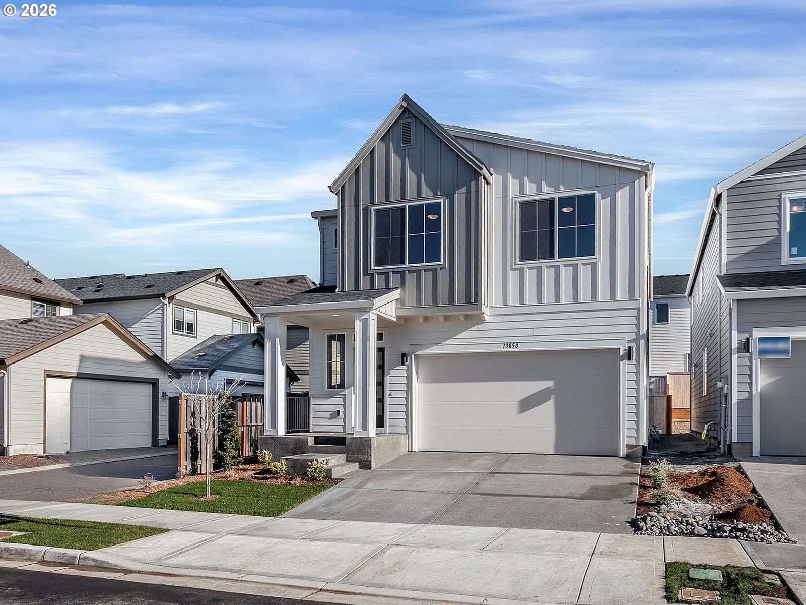 Lot 16 at Scholls Meadow by Riverside Homes is the 2466 plan with 5 bedrooms including a MAIN LEVEL bedroom and full bathroom ideal for guests or multi-generational living. CORNER LOT! Bright, open layout in the living spaces including great room with gas fireplace, dining room with sliding door access to covered patio, and a spacious kitchen with gas range, island, quartz and walk-in pantry. Bonus loft upstairs makes a great media room or workout space. Luxurious primary suite includes tiled shower and soaking tub, double vanity, and huge walk-in closet. Traditional two car front load, attached garage with driveway and on street parking. Fully fenced backyard with gate. Modern exterior. Must see to appreciate the style, beautiful finishes, and functionality of these homes! Photos and video of similar home. Model Open Thurs-Mon 12:00-5:00pm (13877 SW SABRINA AVE)