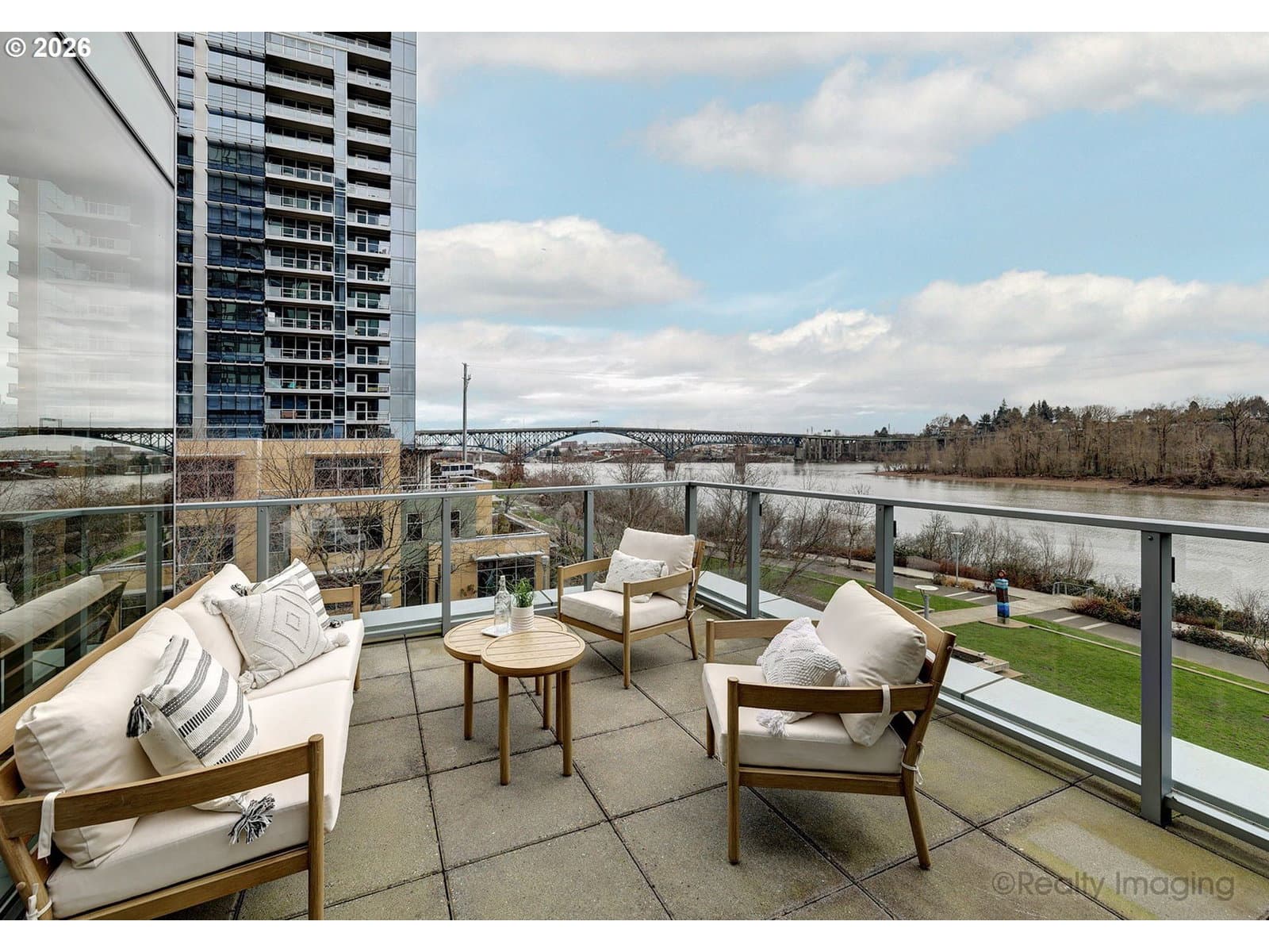 Walk into this premier luxury residence in South Waterfront and be immediately captivated by light-filled, voluminous spaces and stunning, uninterrupted river views. Floor-to-ceiling windows on the east, north, and west bathe the home in natural light from sunrise to sunset—while moonrises over the river add unforgettable evening drama.From the expansive riverfront terrace, enjoy sweeping views of Ross Island and Mt. St. Helens framed by the Ross Island Bridge. Watch birds in flight, children playing in the park, runners and cyclists along the river path, boats and paddlers below—and each dusk, the flocks of crows heading north. This home offers lifestyle moments from every room. The gracious floor plan includes a serene primary suite with a custom walk-in closet, a versatile second bedroom with a wall bed and built-in workspace, and a separate utility room with extensive custom storage.Waterfront amenities enrich daily life: a seasonal Farmers Market, parks, restaurants, riverfront walking and biking paths, and the streetcar with easy connections to MAX. Nearby OHSU facilities include doctors’ offices, a fitness center, and the Tram to the main hospital campus. Atwater Place—Portland’s Gold LEED–certified, highly regarded building—offers exceptional management, 24-hour concierge and security, beautiful grounds with a reflection pool, a Bocce Ball court, bike storage, and a vibrant community with social events and off-campus excursions.I love living here—and you will too.
