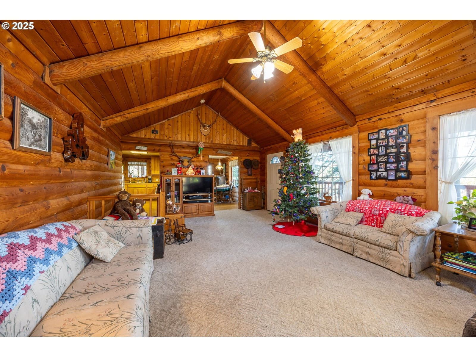 Escape to your own woodland sanctuary with this charming log cabin nestled among beautiful mature trees in the heart of Glide. Warm, inviting, and full of rustic character, this home blends classic cabin charm with modern comfort. Step inside to soaring vaulted ceilings and an open living area that feels both spacious and cozy. An efficient heat pump keeps the home comfortable year-round, while natural wood accents create the perfect mountain-cabin atmosphere. The finished basement offers incredible versatility with its full bath and separate exterior entrance—ideal for a guest suite, private studio, home office, or additional bedroom. Second lot featuring a 2,440 sq. ft. workshop can also be included, see MLS# perfect for hobbies, storage, or business use. With plenty of space to build a second home or create expansive RV parking, the possibilities are endless. Whether you're seeking a peaceful full-time residence, a vacation retreat, or a property with room to grow, this Glide log cabin delivers the perfect blend of comfort, nature, and potential.