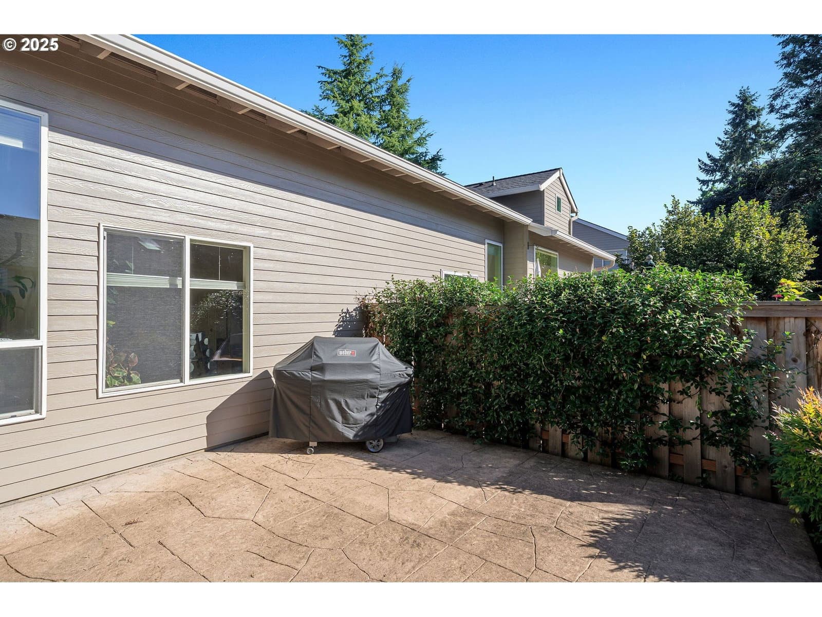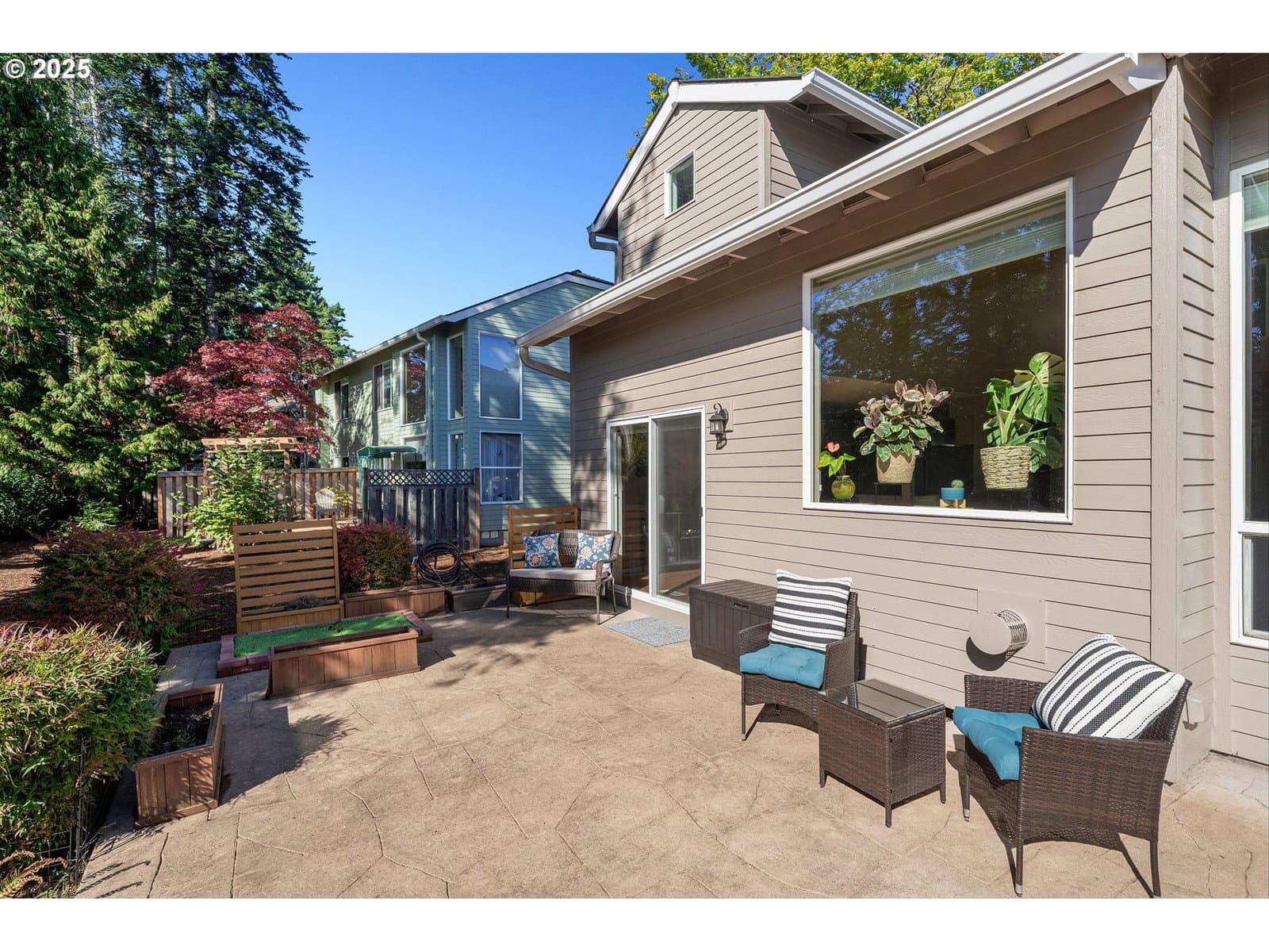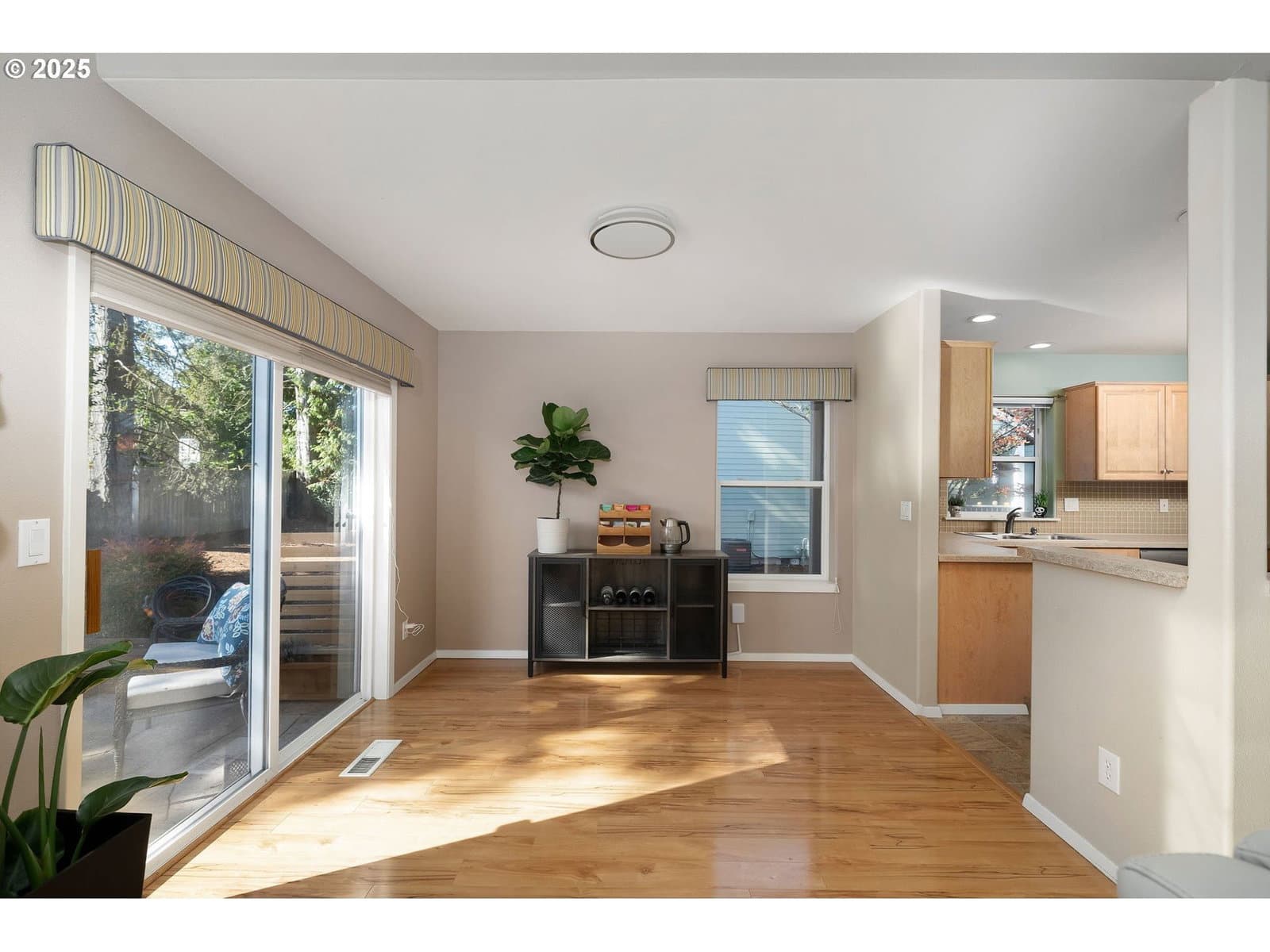 Flooded with natural light and packed with space, this townhome lives like a large detached home without the stress of maintenance. Set in a quiet, well-spaced community next to Orchard Park, it offers 3 bedrooms, 3 full baths, and only one shared wall. The flexible layout includes a full bedroom and bath on the main level, plus two oversized suites upstairs, perfect for guests, multi-gen living, or working from home. Soaring ceilings in the living room create an open, dramatic feel, with a loft above that overlooks the space. This home is a plant lover’s dream thanks to tall windows and skylights. Beautiful laminate wood flooring runs throughout the main level, with plush carpet upstairs for added comfort. The open kitchen with breakfast nook flows into a dining area with access to a large stamped concrete patio for easy outdoor living. A spacious 2-car garage and full driveway provide rare, hassle-free parking. Enjoy year-round comfort with central air conditioning and a new furnace (2023). Additional updates include new gutters (2023), exterior paint (2024), and a roof with skylights (2016). The HOA is just $245/month and covers exterior maintenance plus both front and back landscaping offering true low-maintenance living at a great value. No rental cap. Close to Orchard Park trails, Tanasbourne, Orenco Station, restaurants, and shopping. [Home Energy Score = 7. HES Report at https://rpt.greenbuildingregistry.com/hes/OR10219703]
