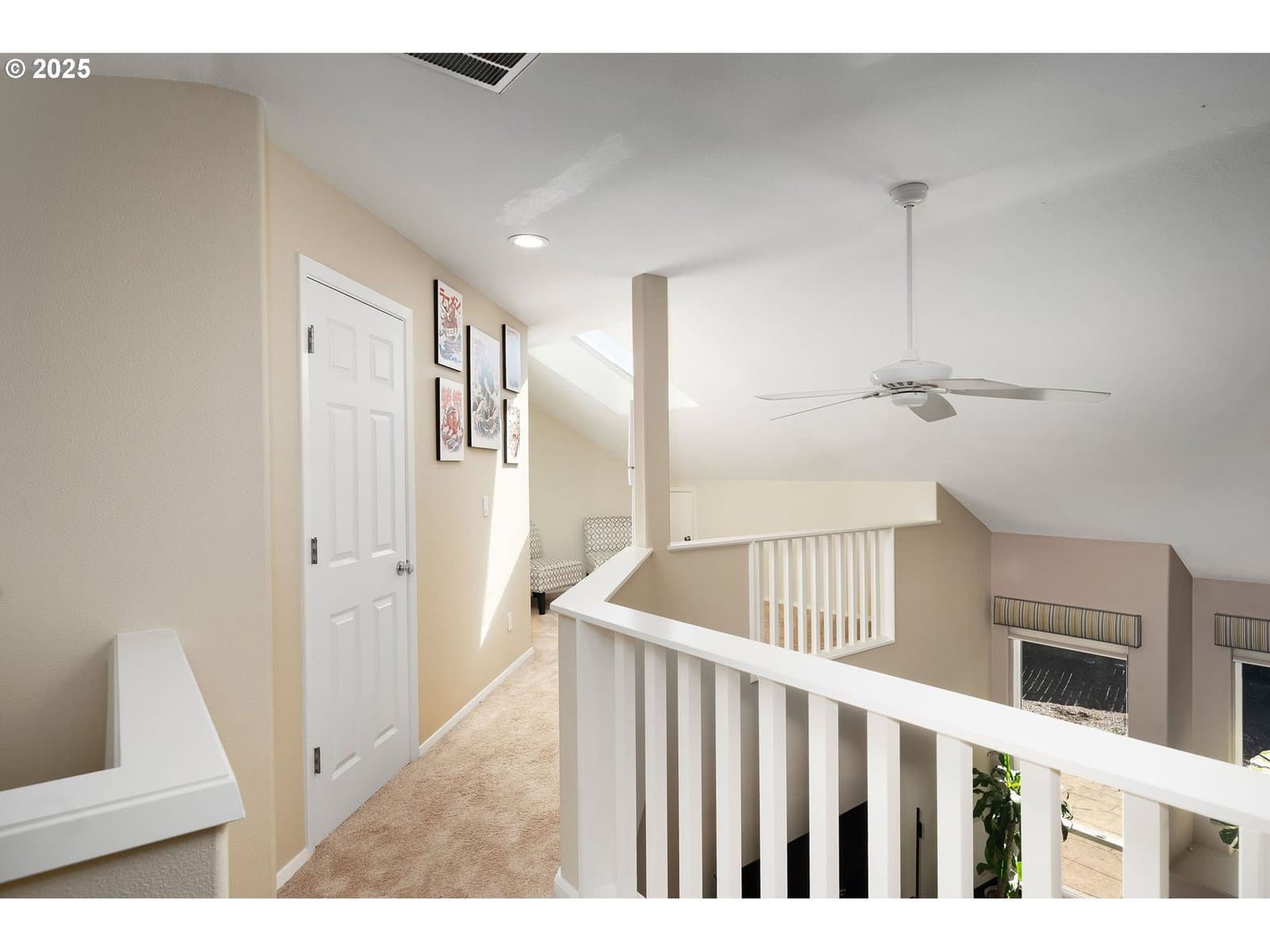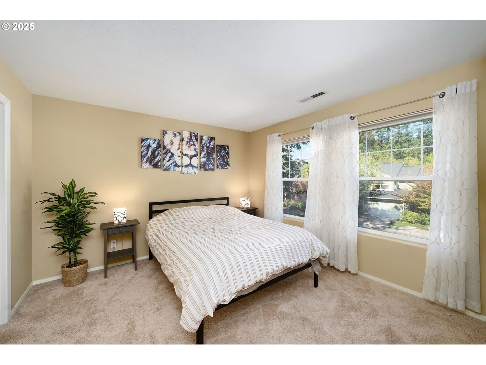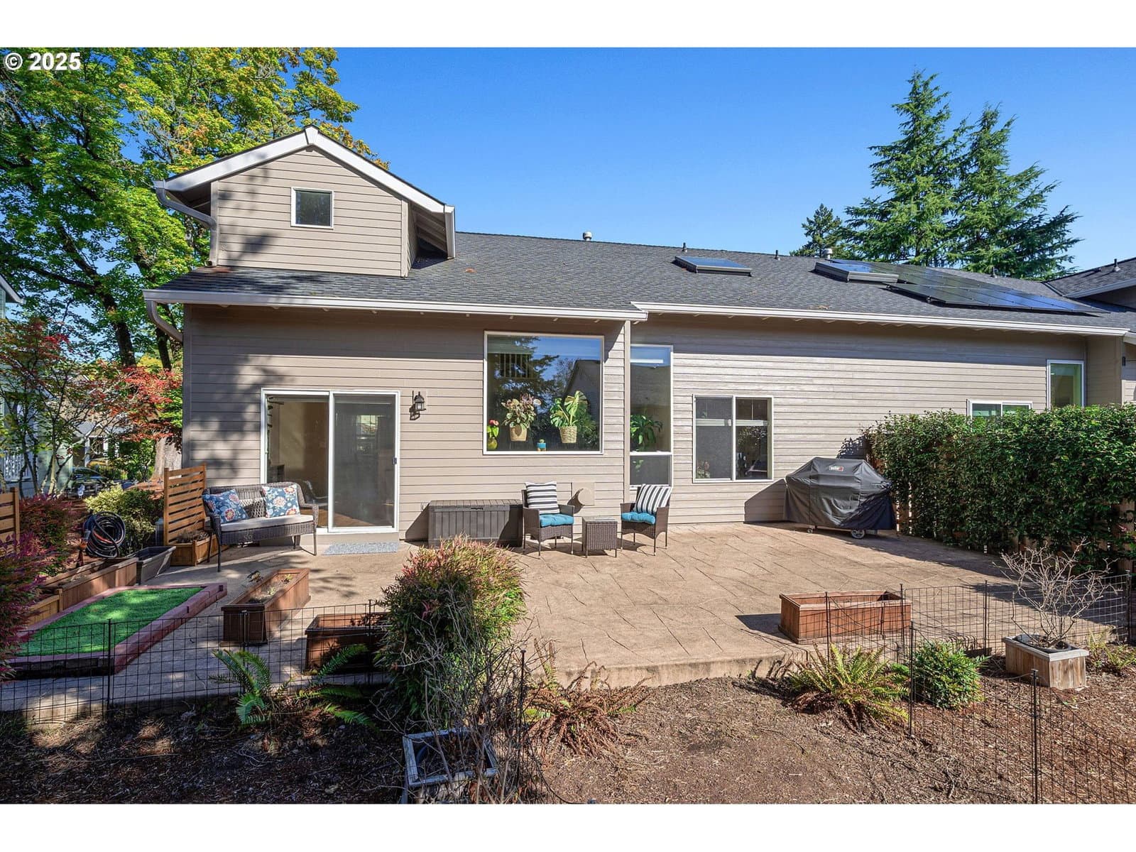 Flooded with natural light and packed with space, this townhome lives like a large detached home without the stress of maintenance. Set in a quiet, well-spaced community next to Orchard Park, it offers 3 bedrooms, 3 full baths, and only one shared wall. The flexible layout includes a full bedroom and bath on the main level, plus two oversized suites upstairs, perfect for guests, multi-gen living, or working from home. Soaring ceilings in the living room create an open, dramatic feel, with a loft above that overlooks the space. This home is a plant lover’s dream thanks to tall windows and skylights. Beautiful laminate wood flooring runs throughout the main level, with plush carpet upstairs for added comfort. The open kitchen with breakfast nook flows into a dining area with access to a large stamped concrete patio for easy outdoor living. A spacious 2-car garage and full driveway provide rare, hassle-free parking. Enjoy year-round comfort with central air conditioning and a new furnace (2023). Additional updates include new gutters (2023), exterior paint (2024), and a roof with skylights (2016). The HOA is just $245/month and covers exterior maintenance plus both front and back landscaping offering true low-maintenance living at a great value. No rental cap. Close to Orchard Park trails, Tanasbourne, Orenco Station, restaurants, and shopping. [Home Energy Score = 7. HES Report at https://rpt.greenbuildingregistry.com/hes/OR10219703]