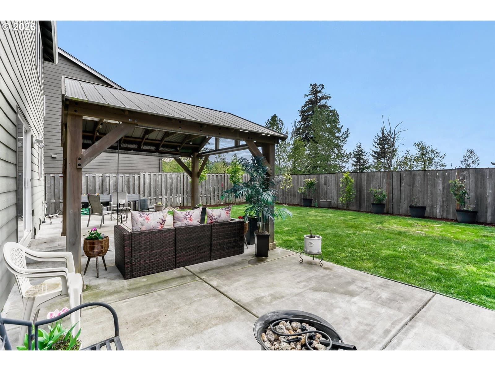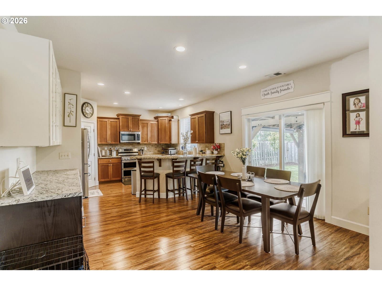 Welcome to this 5-bedroom, 3-bath home in the highly sought-after Windswept Water of Damascus. This 2,279 sq ft residence offers comfortable living with modern touches and excellent energy efficiency. The bright open-concept layout features a spacious kitchen with island and breakfast area, Ideal for meals and entertaining. Adjacent family and living rooms — also known as the great room — provide flexible gathering spaces with natural light. A dedicated laundry room adds convenience. Upstairs you will find a generous primary suite with private en-suite bathroom and walk-in closet, plus four additional bedrooms with ample space for family, guests, or a home office. A convenient tech niche provides a dedicated workspace area. The home includes a welcoming foyer. Lower utility bills are supported by the owned solar panel system with battery back (10.5 KW panels,3 power walls, auto failure in power outage) up installed in 2021 Outside, the property offers strong curb appeal with a fully fenced backyard, charming gazebo, and patio-perfect for relaxing or entertaining. Enjoy peaceful views toward the Clackamas River. The neighborhood provides excellent amenities including a views of Clackamas River, approximately 200 feet from Rock Creek with a path that connects to the Clackamas river, common space playground, basketball court, fenced dog park, scenic walking trails, and community paths. Easy access to parks, outdoor recreation, and commuting routes. This home combines modern comfort, energy efficiency, and family-friendly outdoor living. Schedule your private showing today!