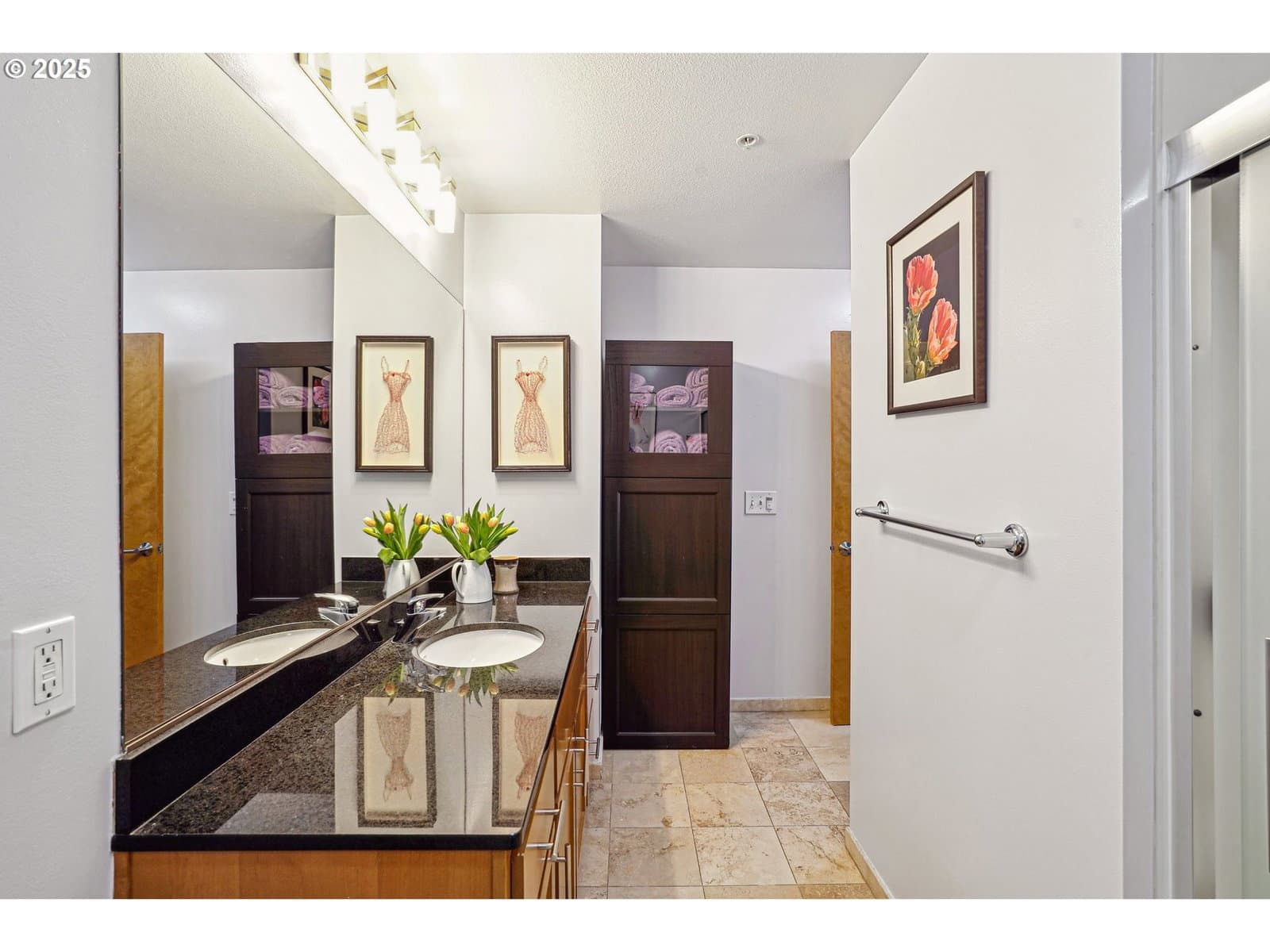This bright and welcoming one-bedroom condo at The Vaux offers the perfect blend of charm and convenience. Enjoy your own private walk-up entrance with a street-level patio—ideal for morning coffee or greeting guests—as well as interior hallway access through the main lobby. Inside, you’ll find sun-filled spaces with large double-hung windows, beautiful Caribbean Rosewood floors, granite countertops, and a custom walk-in closet. The bathroom features a walk-in shower for a spa-like touch. Additional perks include a deeded storage unit just down the hall and deeded parking in the gated garage. Nestled in one of NW Portland’s most vibrant neighborhoods, you're just a stone's throw from Wallace Park, Forest Park trails, New Seasons Market, Dragonfly Coffee, Good Samaritan Hospital, and great local shops and restaurants.