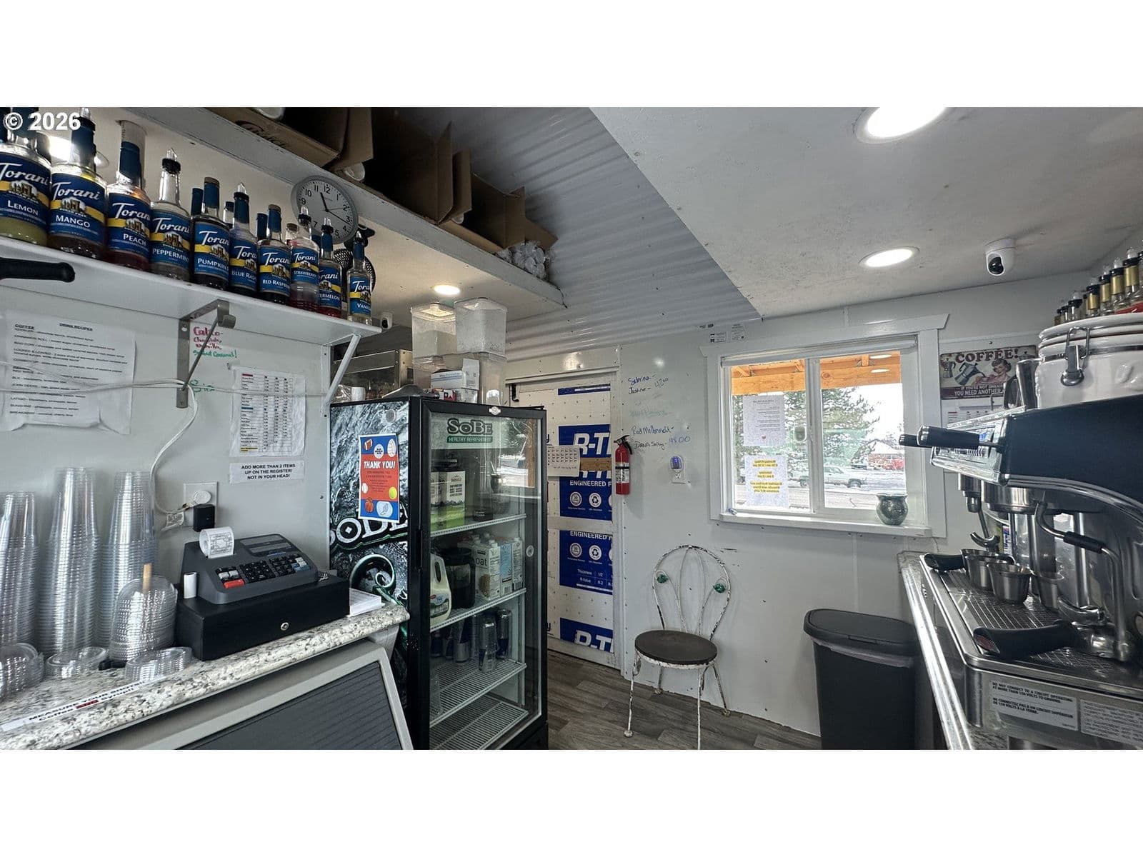 Turnkey drive-thru coffee stand with highway frontage in Condon! Built in 2024, this fully equipped commercial property sits on a 0.33-acre lot with city utilities, dedicated parking, and professional landscaping. The 282 sq ft structure is designed for efficient operation and includes equipment and inventory, offering a ready-to-operate opportunity for an owner-operator or entrepreneur. Currently operating limited hours (6am–2pm), providing potential for expanded revenue with extended hours or menu offerings. Fee simple ownership – land and building included. Rare small-town commercial opportunity with high visibility and established customer base.