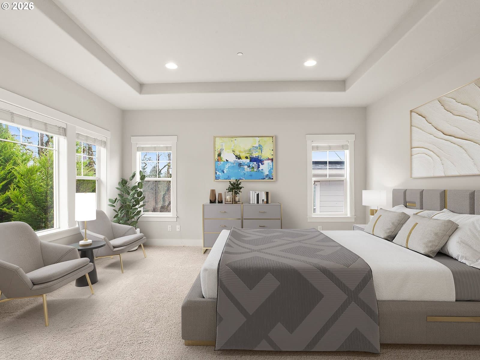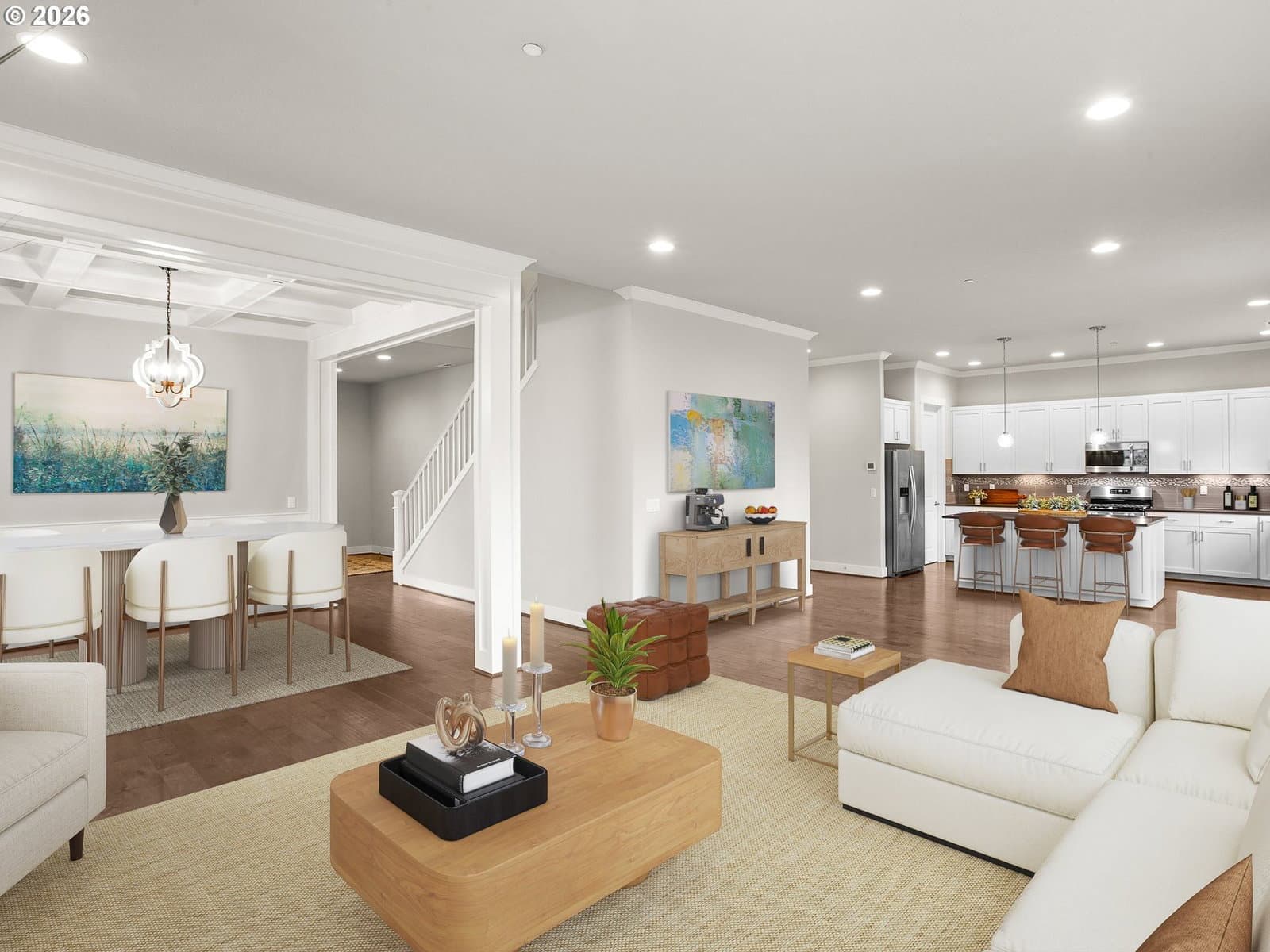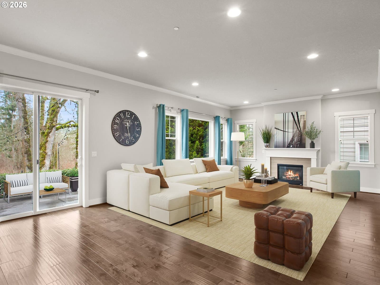 Welcome to the quiet, serene, southern end of Villebois. This beautiful home is nestled against the Graham Oaks Nature Park and has access to many trails, parks, summer-time farmers market and various pickleball courts. Large deck with built in seating around a firepit, overlooks forested area and creates an ideal setting for backyard entertaining. On the main level you'll find a formal dining space, large kitchen with oversized quartz island for entertaining, dedicated office space and half bath. Upstairs, there is a primary suite offering sweeping views of the forest behind the home, dual walk-in closets and large soaking tub. There are an additional three bedrooms, full bath, and bonus room upstairs. The upstairs is newly carpeted and hosts an upstairs laundry room with closet. Ample storage is available throughout the home. This gorgeous home is a must see!!
