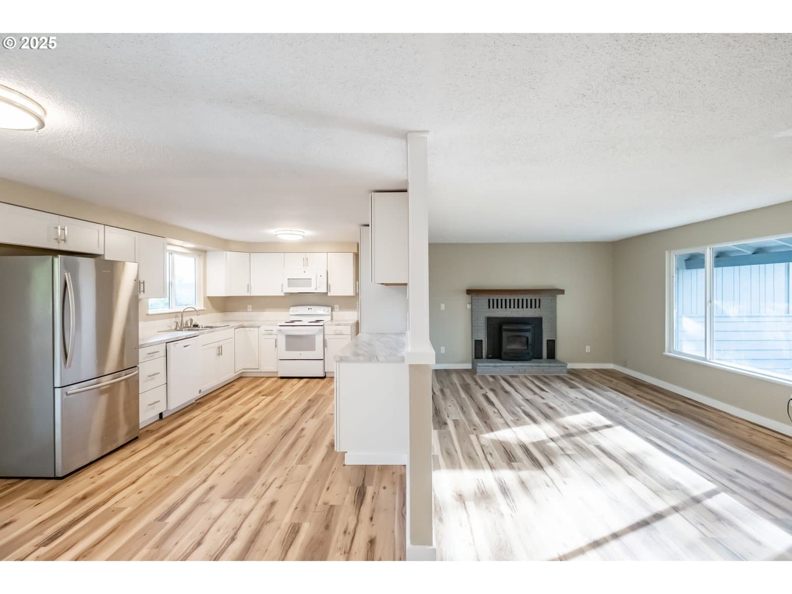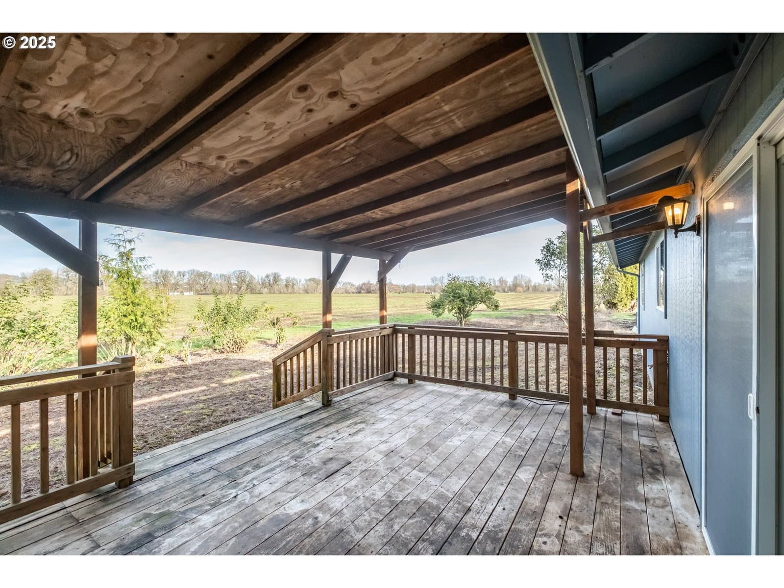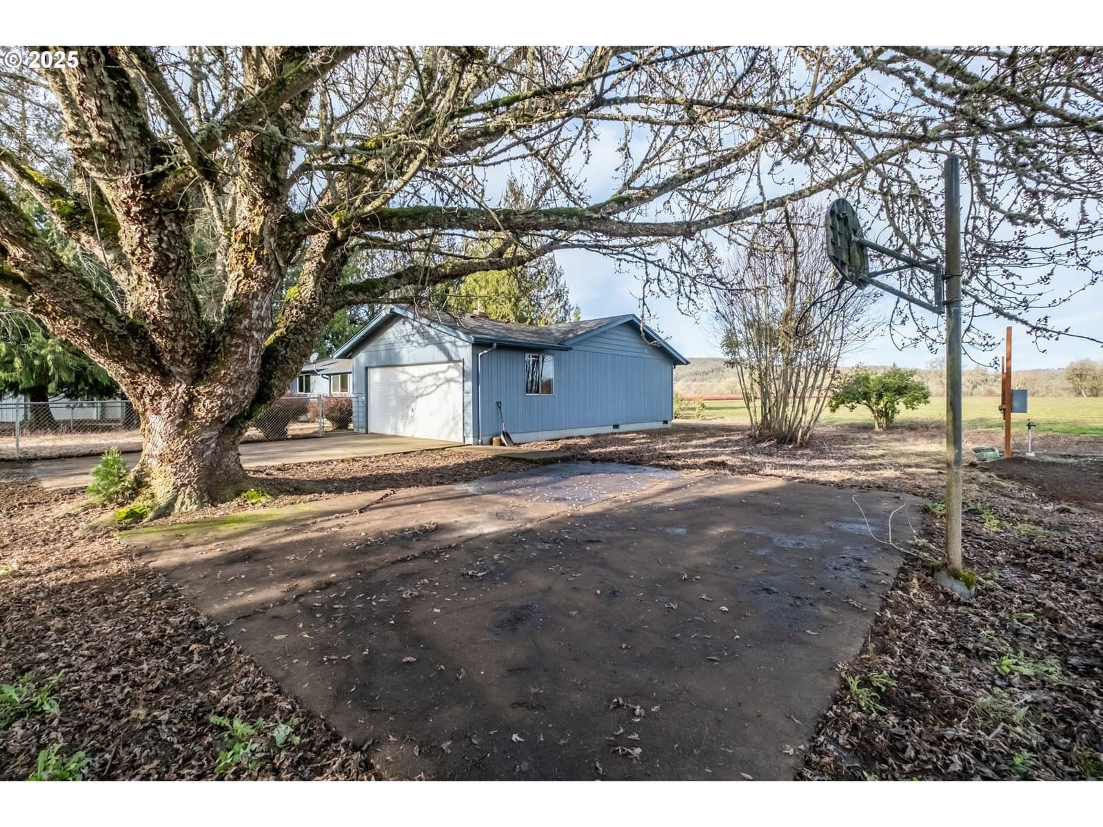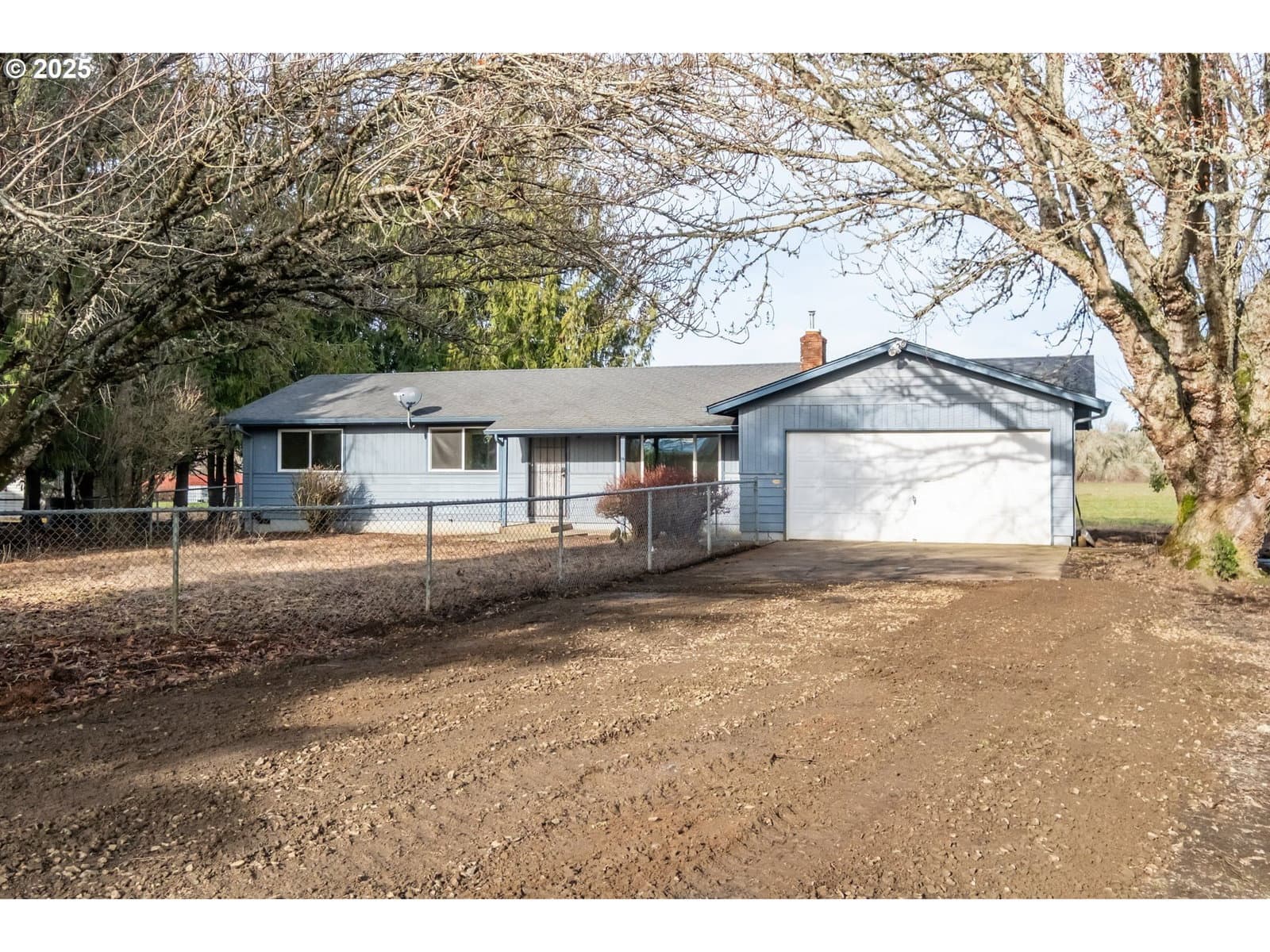 Set on one level acre surrounded by picturesque blueberry fields and working farmland, this single-story property offers peaceful rural living with excellent versatility. Enjoy open views and a quiet country atmosphere while still having the space and infrastructure for hobbies and storage.The 4-bedroom, 2-bath home was built in 1975 and features new LVP flooring extensively throughout along with a recently updated kitchen complete with new cabinets and countertops. The layout is functional and easily accessible, including a single-level design and a walk-in shower in the primary bathroom. The home has a fenced front yard, and a covered back deck, perfect for enjoying the surrounding farmland and territorial views. The property is served by Perrydale Water, with an additional well that services farm activities and the shop. Standard septic system in place.A standout feature is the large approximate 32’ x 45’ oversized shop, equipped with its own 220 power, three bays, and an insulated roof. Two additional storage units are located on the property and may be removed if not needed, offering flexibility for future use.This property offers a rare combination of rural setting, usable acreage, accessibility, and extensive shop space, making it an excellent opportunity for those seeking privacy, comfort and functionality in a country environment.