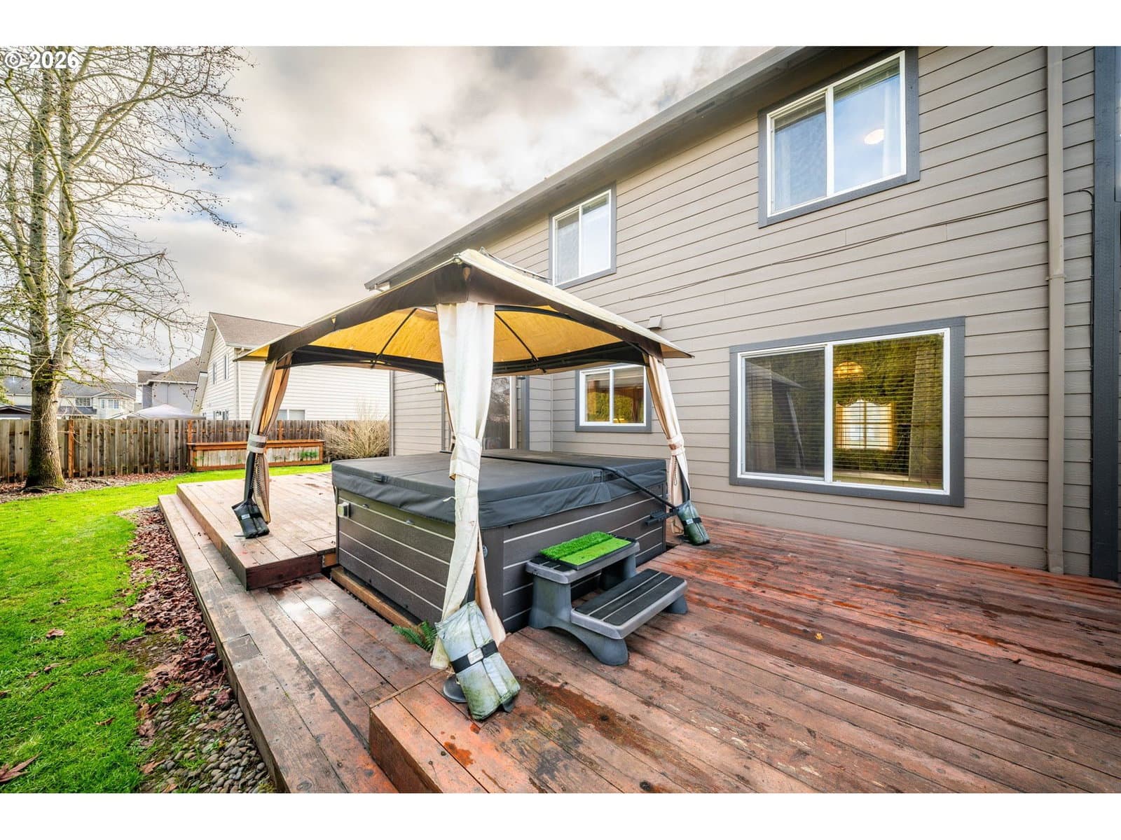 Lovely Canby area home, priced to sell. Charming 2-story with 4 bedrooms, 2.5 baths, and 1,813 sq ft of well-appointed living space. Enjoy newer countertops throughout home. The main level features a convenient built-in desk in the kitchen. Primary suite with vaulted ceilings and remodeled en suite. Upstairs nook provides ideal workspace or study area. Enjoy outdoor living with a relaxing hot tub and practical shed for extra storage. This home combines functional updates with comfortable living spaces. Shelves in Garage included. Washer/Dryer Not Included. Personal Representative, disclosures exempt. Agent related to personal representative.