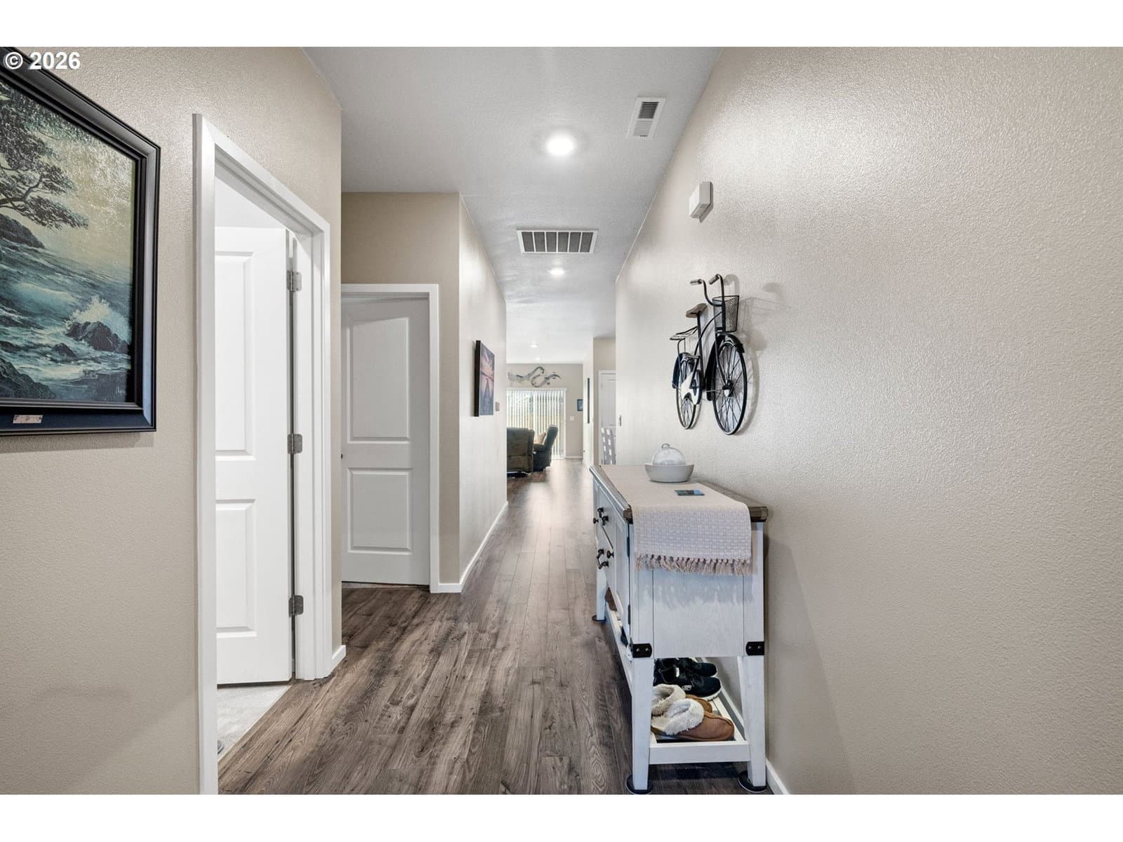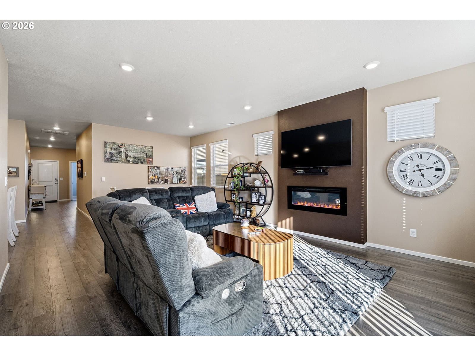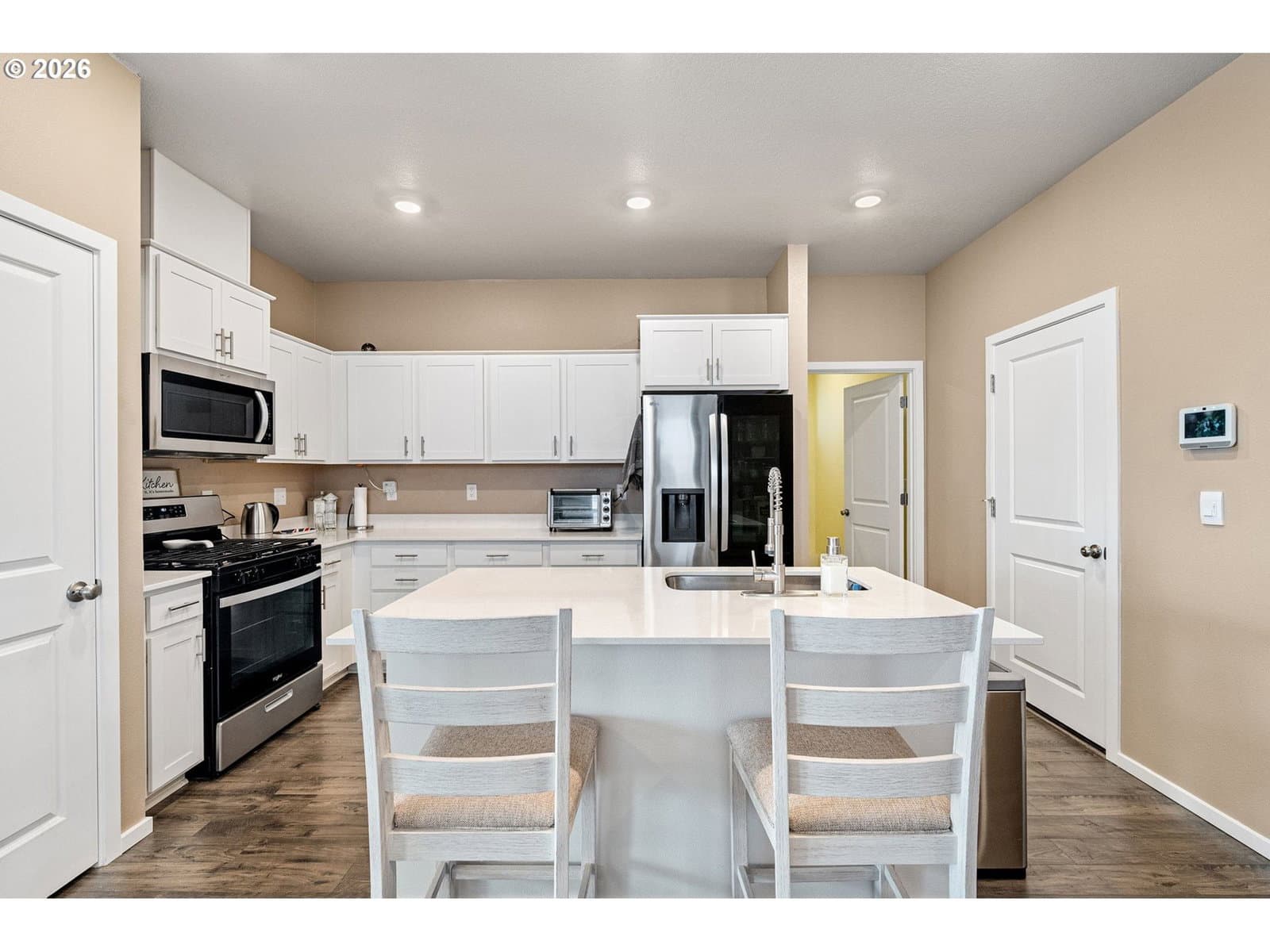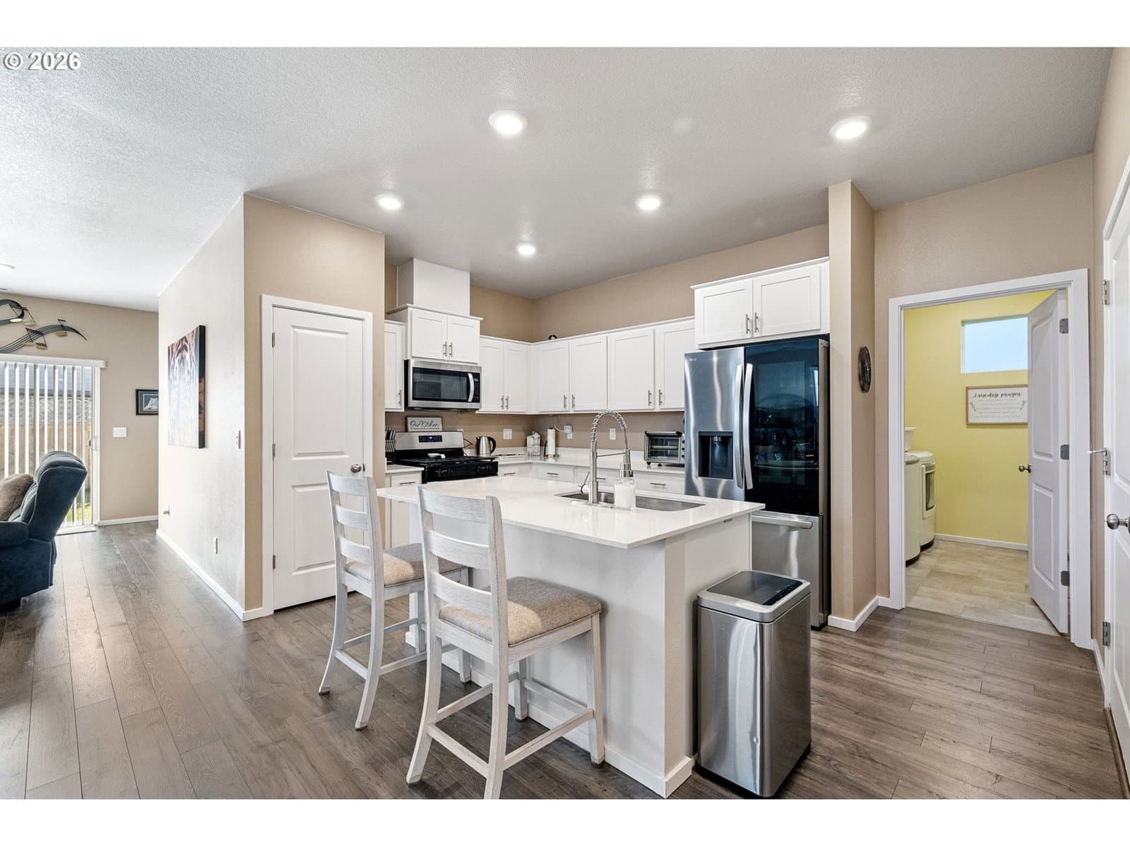Better-than-new, highly desirable single-level home in Marcola Meadows. This popular Spruce floor plan features an open-concept design with the kitchen seamlessly connected to the living space, perfect for everyday living and entertaining. Enjoy high ceilings, a stunning electric fireplace, custom fit blinds and fresh interior paint throughout. Stylish laminate flooring flows through the main living areas, complemented by luxury vinyl tile in the bathrooms and laundry room. The chef’s kitchen offers a large quartz island, solid-surface countertops, pantry, and gas range, making it both beautiful and functional. Upgraded faucets enhance both the kitchen and bathrooms, adding a touch of elegance. Energy-efficient features include a high-efficiency furnace, hybrid heat pump water heater, and a Smart Home package for modern convenience. Outside, sit on the charming front porch or enjoy the patio and fully fenced yard with sprinklers in both the front and back. Ideally located near shopping, bus lines, and with easy freeway access, plus just a short walk to the neighborhood park, this home truly has it all. Call to see this fantastic home today!