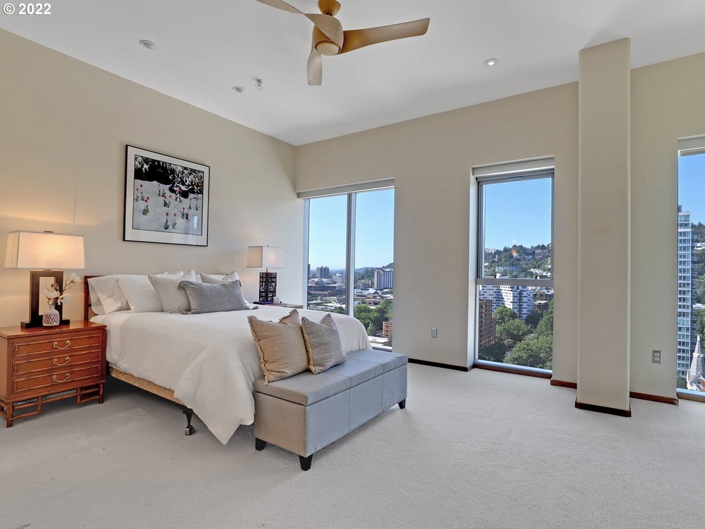 Welcome to the pinnacle of modern living at the Eliot Tower penthouse! Located in the heart of downtown Portland, this sleek contemporary residence offers a lifestyle of luxury and convenience. Situated near the renowned Portland Art Museum and the bustling farmers market, immerse yourself in the city's vibrant arts and culinary scenes. Designed with the highest standards of sophistication and comfort, the penthouse boasts a range of luxuries to elevate your living experience. Stepping into this sprawling 3000 ft.² penthouse, you will be greeted by an abundance of natural light with floor-to-ceiling windows that frame breathtaking 300°+ views of the Willamette River, majestic West Hills, the Fremont Bridge and Portland's cityscape. Enjoy the ever-changing scenery and the beauty of nature from the comfort of your new home. This spacious condo features multiple living areas, an expansive living room, large custom kitchen, two fireplaces, two balconies, custom built-ins and more. Offering numerous building amenities; a full time concierge is readily available, ensuring that your needs are effortlessly met. Retreat to the stylish library for a quiet reading session or host memorable gatherings in the reserved party room. Or unwind and connect with friends and family around the outdoor fireplace against the backdrop of the city skyline. Prioritize your well-being at the state-of-the-art gym, equipped with top-of-the-line fitness equipment. Don't miss this rare 3 bedroom top floor penthouse perched above the horizon. This is contemporary living at its finest!