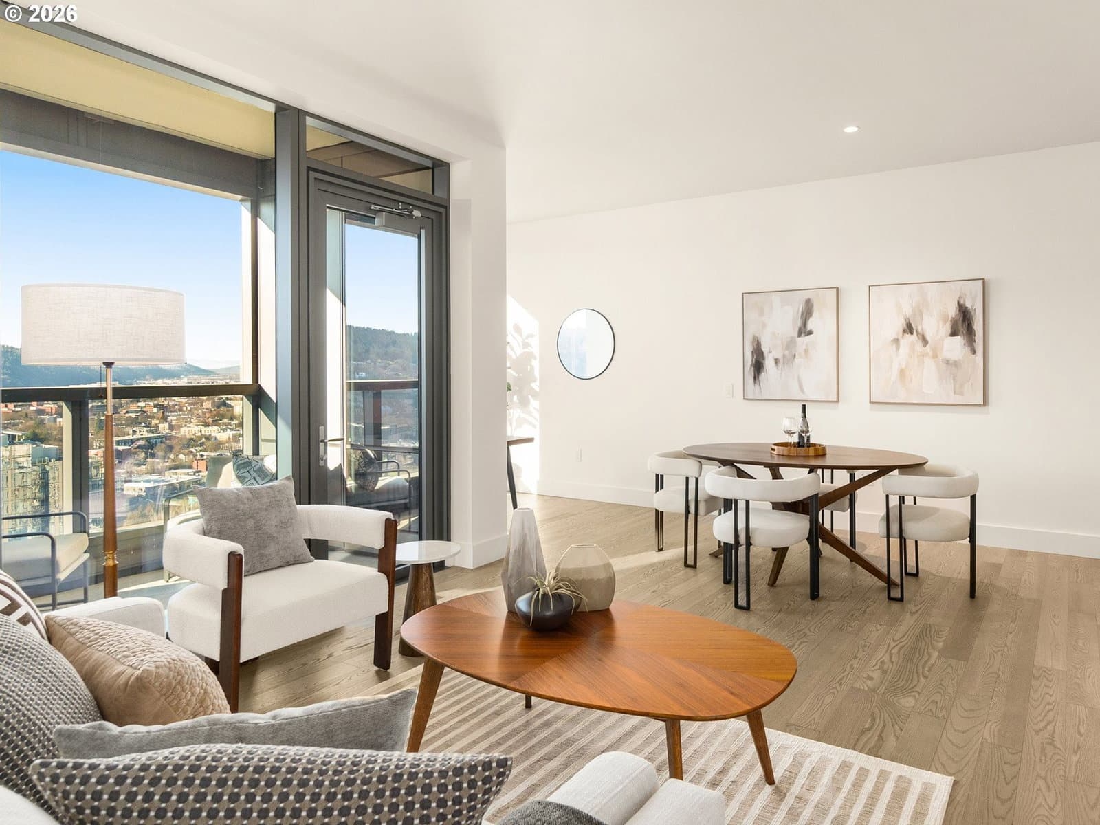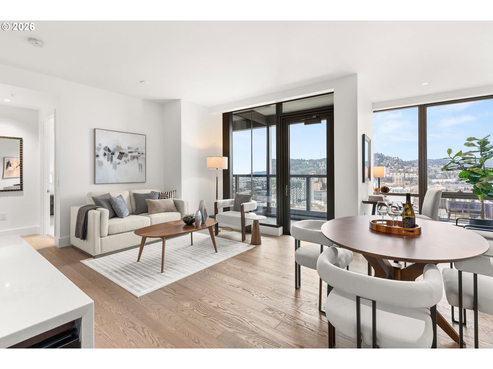 Welcome to The Ritz-Carlton Residences—where modern design meets legendary service, high above downtown Portland.This west-facing one-bedroom residence features a well-planned layout flooded with natural light, elegant engineered hardwood floors, and a gourmet kitchen equipped with premium Wolf, Miele, and Sub-Zero appliances plus custom Pedini cabinetry. The primary suite offers a serene retreat with a spacious walk-in closet and a luxurious spa bathroom complete with a marble vanity, tiled surfaces, and a wet room including both a shower and bathtub. Step out onto your private balcony to take in sweeping views of the city and the West Hills. Residents enjoy exclusive access to top-tier amenities such as an infinity pool, fitness center, and the private Owners’ Lounge, along with 24-hour concierge service in the exclusive Residence lobby. Secure parking is included, delivering exceptional urban living in the city’s vibrant core. CCB #191405