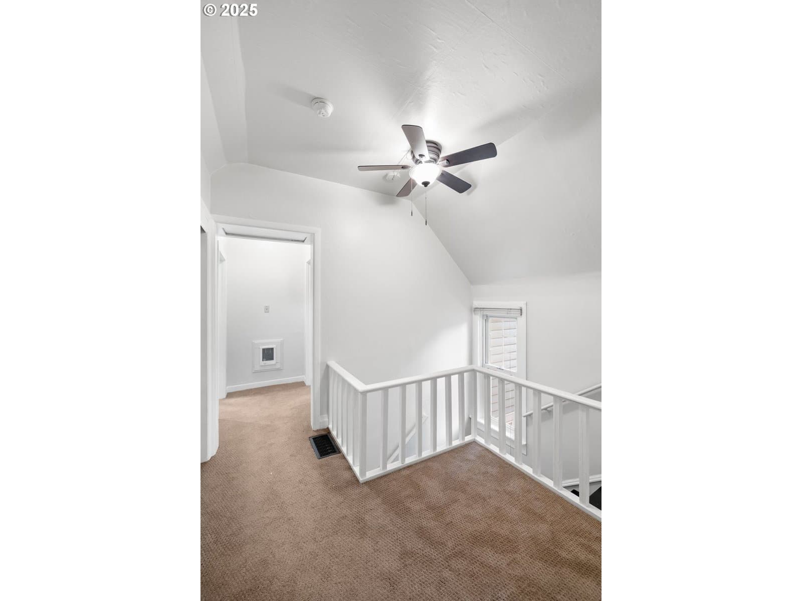 Charming four bedroom home featuring a covered front porch and a welcoming parquet wood entry that opens to spacious living and dining areas. The living room offers a cozy fireplace insert and built-in bookcase. The kitchen includes painted wood cabinetry and appliances, including refrigerator, range, and dishwasher. One bedroom, a full bathroom, and a utility room are located on the main level, with convenient access to the backyard. Upstairs features three additional bedrooms and a second full bathroom. The partially fenced backyard includes a paved walkway. Ideally located near Bagley Park, Lincoln Street Elementary, shopping, and restaurants. [Home Energy Score = 1. HES Report at https://rpt.greenbuildingregistry.com/hes/OR10243340]