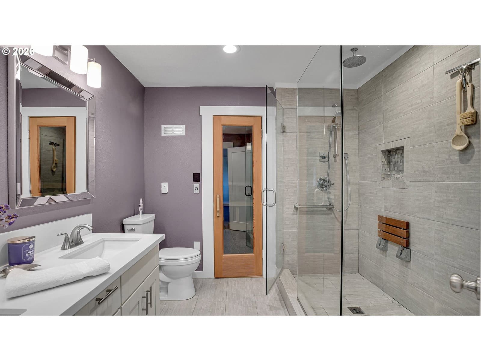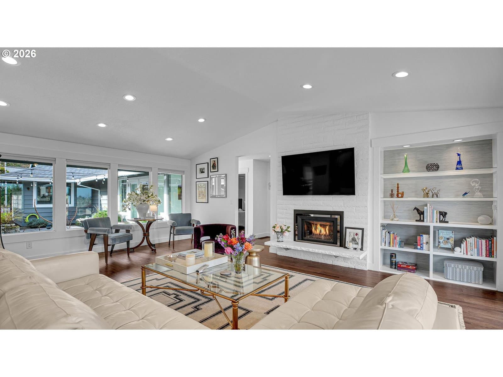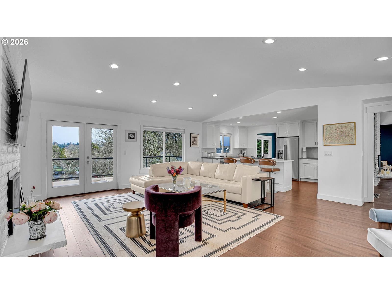 Truly unique and beautifully reimagined, this chic single-level home in Lake Oswego’s coveted Palisades neighborhood offers refined living centered around an enchanting gated courtyard that sets the tone for both privacy and effortless entertaining. Completely remodeled down to the studs in 2016, this residence blends modern design with warmth and flow, featuring open-loop living, kitchen, dining, and bonus spaces ideal for gatherings large or small. Sunlight pours through walls of windows, highlighting bamboo floors, two Ember Glow gas fireplaces, custom built-ins, and French doors that open to a sunny courtyard in front and a Trex deck with lovely easterly views toward Rosemont Summit at the back. The island kitchen impresses with gas cooking, quartz countertops, and built-in appliances, while the formal dining area offers seamless indoor-outdoor connection and flexible entertaining space. Enjoy the private retreat feel of the primary suite, complete with a spa-inspired bath, Finnish sauna, and a showstopping custom walk-in closet designed with display cabinetry, drawers, and valet rods. Two additional bedrooms provide comfort and versatility, complemented by beautifully updated bathrooms and a well-appointed laundry room with built-ins and exterior access. Set on a generous 10,000-square-foot fenced lot with oversized garage (600sf), EV charger, ample parking, newly installed sidewalk, and exceptional full-height crawl space storage. This truly unique home is ideally located within half a mile of parks, pool, golf course, high school, scenic trails, and Luscher Farm’s beloved CSA — offering a rare blend of luxury living and everyday lifestyle convenience. This home is eligible for a Lake Easement at Palisades Easement.
